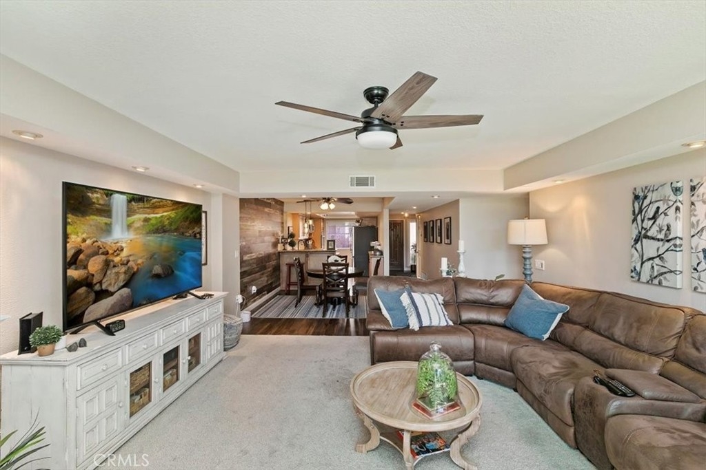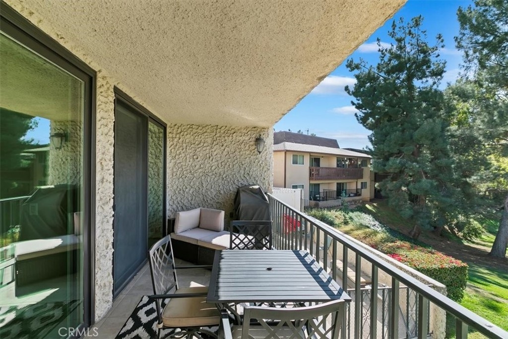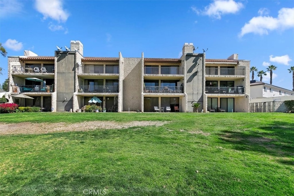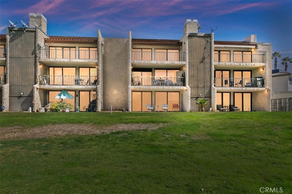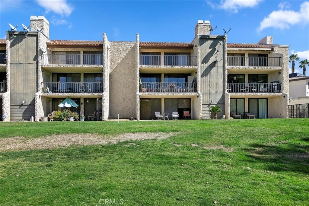 Stunning canyon crest country club condo situated on the 5th green. Offering breathtaking views and a serene atmosphere. Nestled within a private, gated 12-unit complex, this peaceful two-bedroom, two-bathroom home is a rare find. The single-level layout ensures ease of access, with no stairs needed when using the building’s elevator.The updated kitchen is nice and bright, featuring a double oven, a convenient coffee bar, and pull-out drawers in all cabinets for optimal storage. Newer flooring adds a modern touch, while the spacious primary suite boasts a large walk-in closet. Dual-pane windows and floor-to-ceiling sliders in both the primary bedroom and family room provide seamless access to a private balcony, perfect for enjoying the picturesque surroundings. Additional conveniences include an indoor laundry room and a two-car garage with loft storage, secured behind a gated entrance. The HOA covers essential amenities such as water, trash, gas, pool maintenance, pest control, and groundskeeping, ensuring a low-maintenance lifestyle. With security gates providing added peace of mind, this beautiful condo is the perfect retreat for those seeking comfort, privacy, and stunning golf course views.