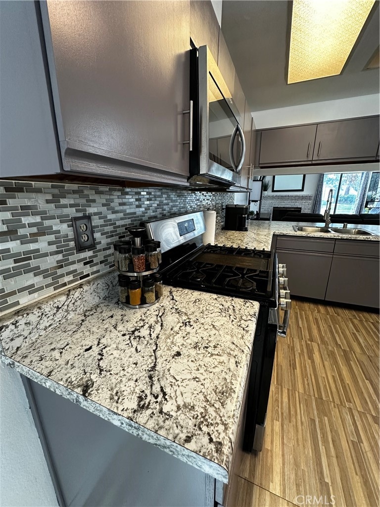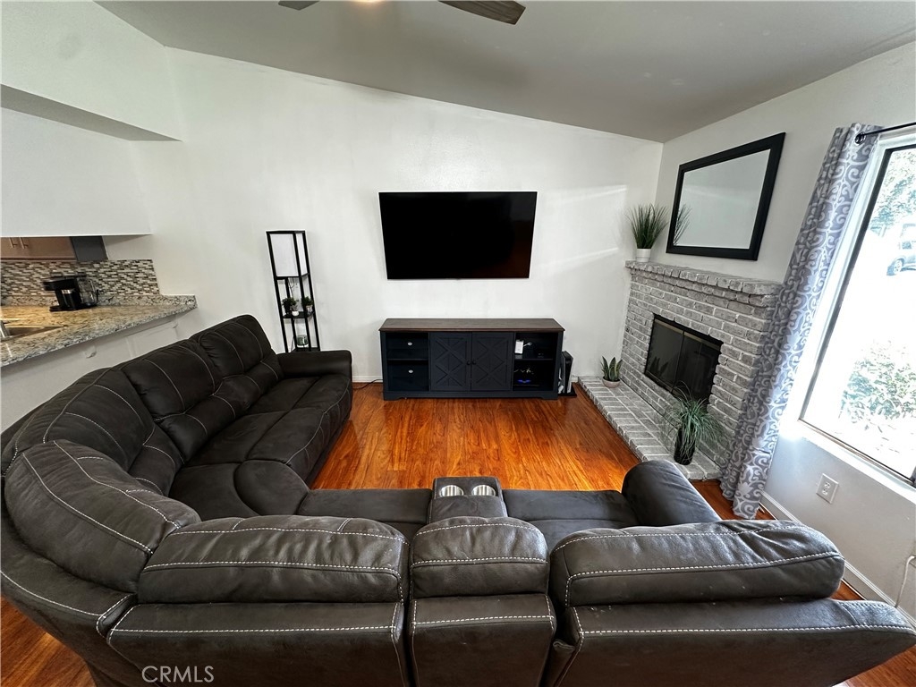 BACK ON THE MARKET! Presenting a single-story, 2 bedroom, 2 bathroom condo with an attached two-car garage, situated in the desirable Barclay Square community. This residence is conveniently located within walking distance to the community pool and spa, offering an exceptional level of privacy that is uncommon for condos. Experience a unique lifestyle that transcends typical condo living in this gated community, ideal for commuters with its central location just minutes from the 91 Freeway, between the 15 and 215 freeways. Highlights of this home include private backyard, a cozy fireplace, and an open-concept layout, central heating and AC, extra plus that it is on a culdesac!