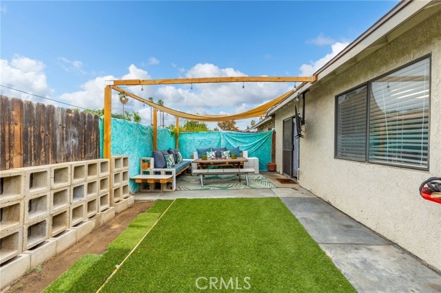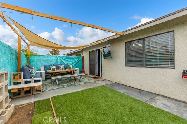 Come check out this move in ready end-unit condominium located in the Arlington area of Riverside. This home has 3 bedrooms, 2 bathrooms with direct garage access. Upon entering the home you'll see the living room has hardwood laminate with a gas powered fireplace. The kitchen includes granite countertops, plenty of cabinets, bay windows and an island with added storage. Each bedroom has updated flooring and custom closet organizers. The master bedroom has new laminate flooring, plenty of closet space and an updated bathroom with new dual vanities. The backyard can be accessed through the master bedroom or the side entry for privacy. Enjoy the evenings in the backyard under newly installed shade covers and string lights. The backyard is low maintenance and includes cemented areas and artificial grass. There is a small shed in the backyard for added storage. The condo includes a 2 car garage with direct access into the home. There are storage shelves throughout the garage to help keep the garage organized. This community offers a salt water swimming pool, spa, RV parking, gated security, and a grassy area to walk your dogs. This home is close to the 91 freeway, California Baptist University, shopping centers, and the Tyler mall. HOA includes water.