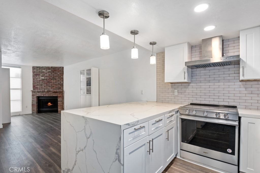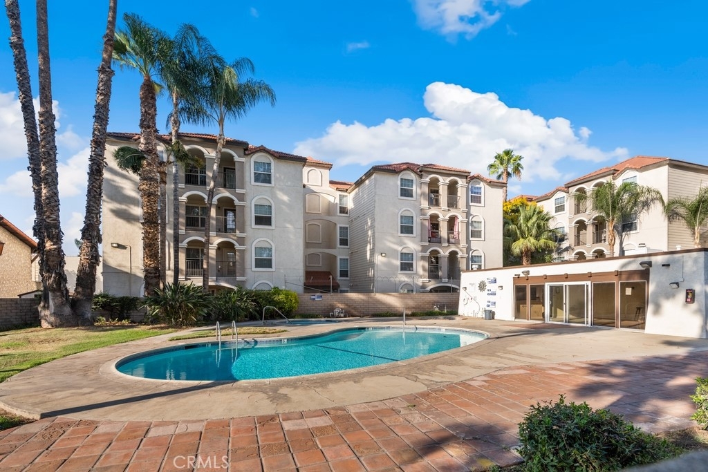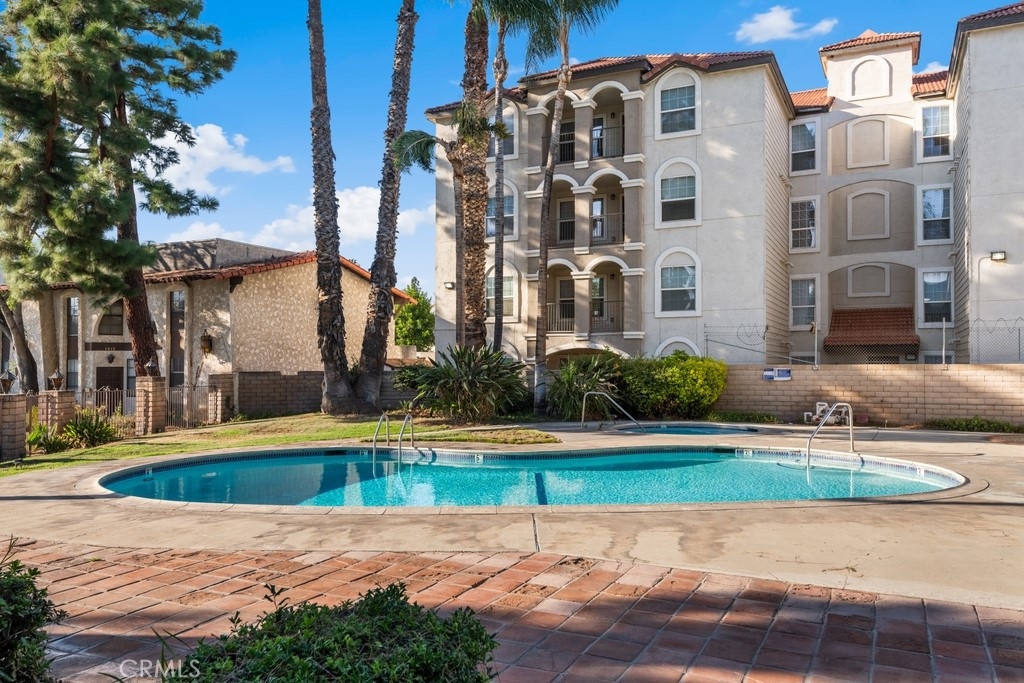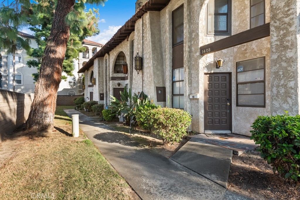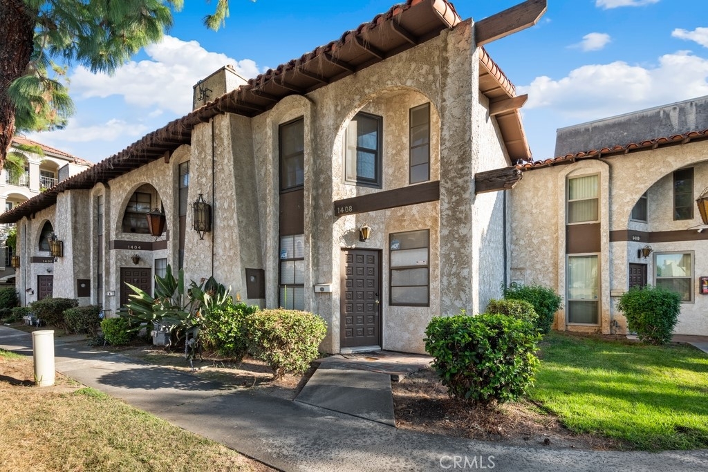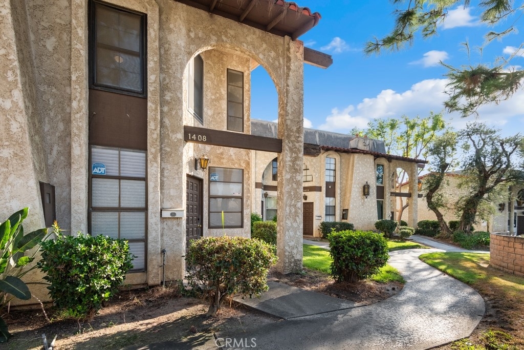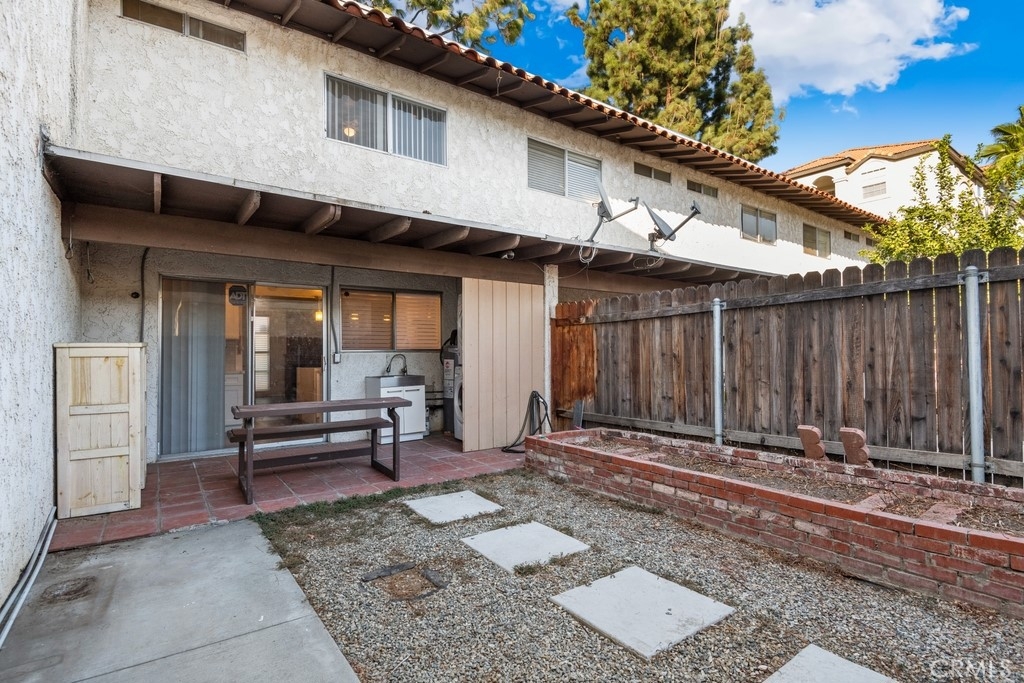 Welcome to this completely renovated condo in the highly desirable Buena Vida community, offering a fantastic investment opportunity just within a mile of UCR, local schools, restaurants, and shopping. This beautiful condo features laminate flooring throughout and an open living and dining area with a cozy brick-framed fireplace. The renovated kitchen is a showstopper, boasting quartz countertops, a waterfall peninsula with bar seating, brand-new stainless steel appliances, a sleek sink, white shaker-style cabinetry, and a stylish subway tile backsplash. Go outside to your private fenced backyard, which includes a covered tiled patio with a stackable washer and dryer, and a yard space with a brick planter—perfect for your personal touch. The backyard also offers convenient access to a one-car garage. Upstairs, you'll find two spacious bedrooms and a full bathroom with a tiled tub surround and modern vanity. A unique kitchenette, complete with a sink, cabinets, and a microwave, adds versatility. LOW HOA fees include water, trash, access to a community pool, spa, and recreation room. This condo is truly turn-key and ready for its new owner!