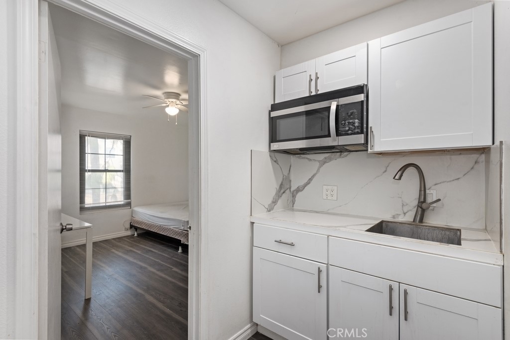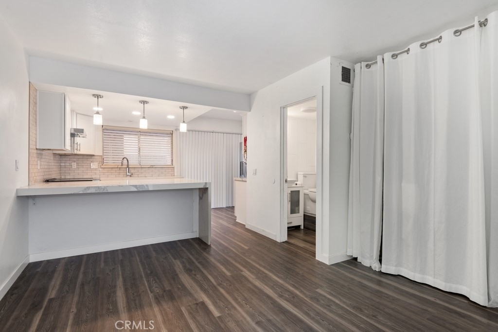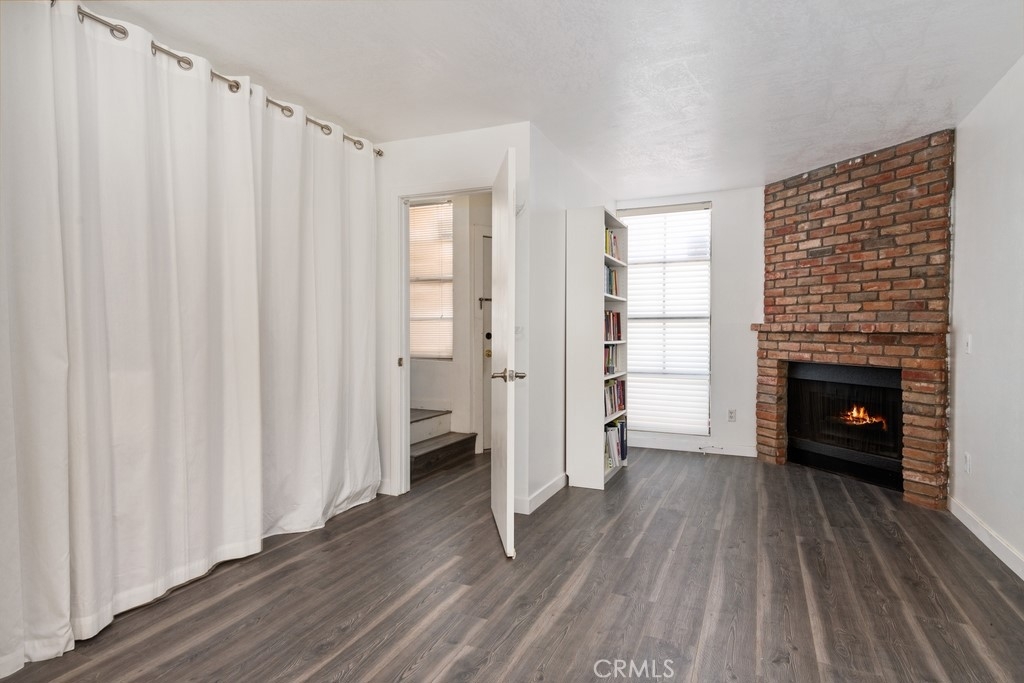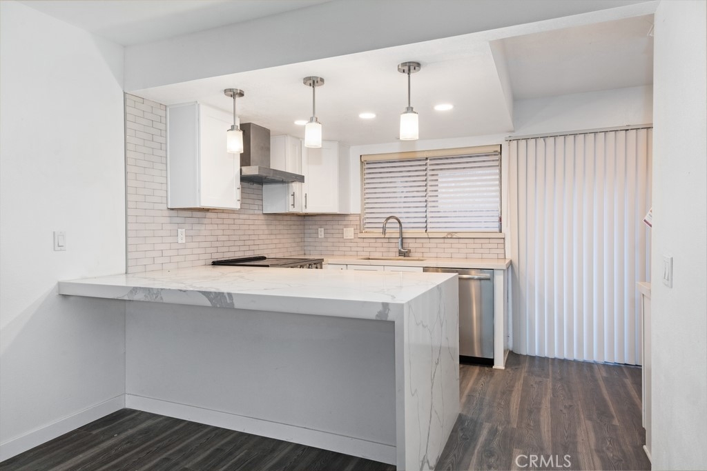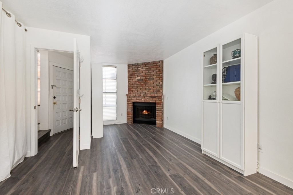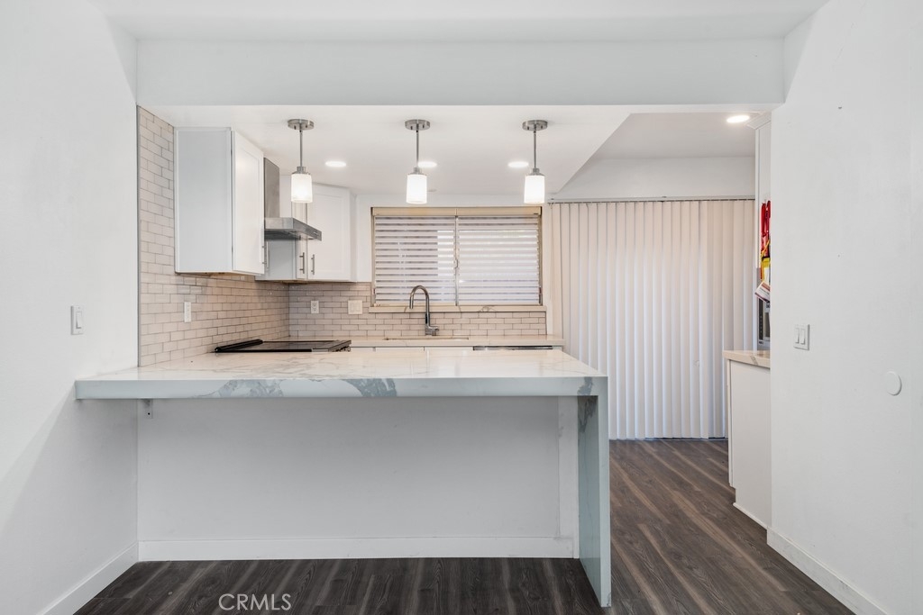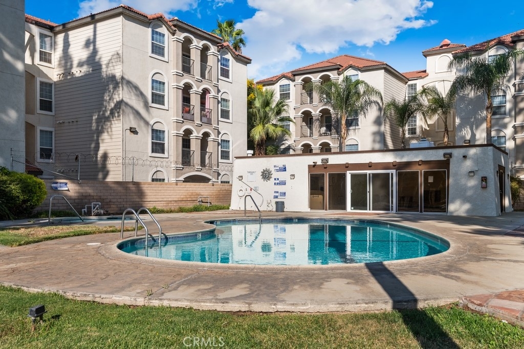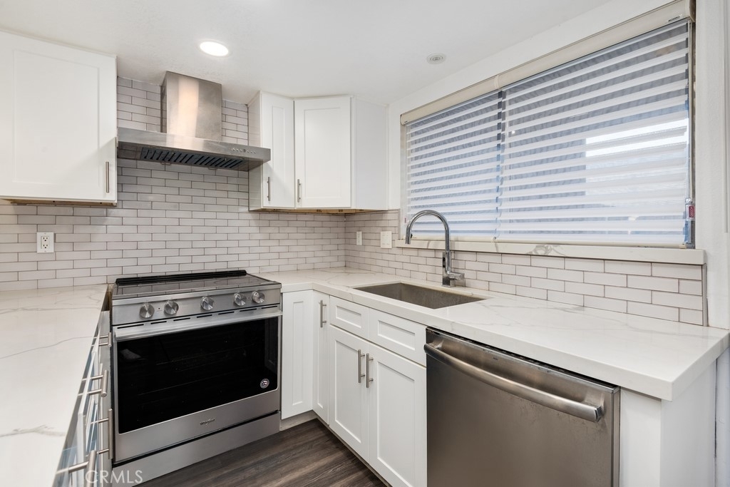 Welcome to this completely renovated condo in the highly desirable Buena Vida community, offering a fantastic investment opportunity just within a mile of UCR, local schools, restaurants, and shopping. This beautiful condo features laminate flooring throughout and an open living and dining area with a cozy brick-framed fireplace. The renovated kitchen is a showstopper, boasting quartz countertops, a waterfall peninsula with bar seating, brand-new stainless steel appliances, a sleek sink, white shaker-style cabinetry, and a stylish subway tile backsplash. Go outside to your private fenced backyard, which includes a covered tiled patio with a stackable washer and dryer, and a yard space with a brick planter—perfect for your personal touch. The backyard also offers convenient access to a one-car garage. Upstairs, you'll find two spacious bedrooms and a full bathroom with a tiled tub surround and modern vanity. A unique kitchenette, complete with a sink, cabinets, and a microwave, adds versatility. LOW HOA fees include water, trash, access to a community pool, spa, and recreation room. This condo is truly turn-key and ready for its new owner!