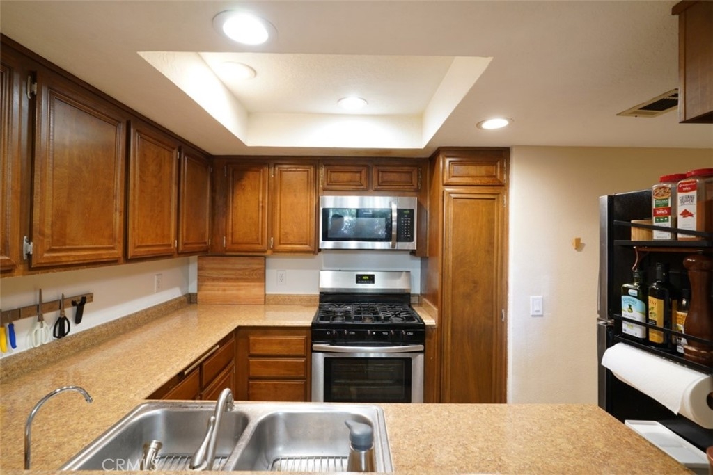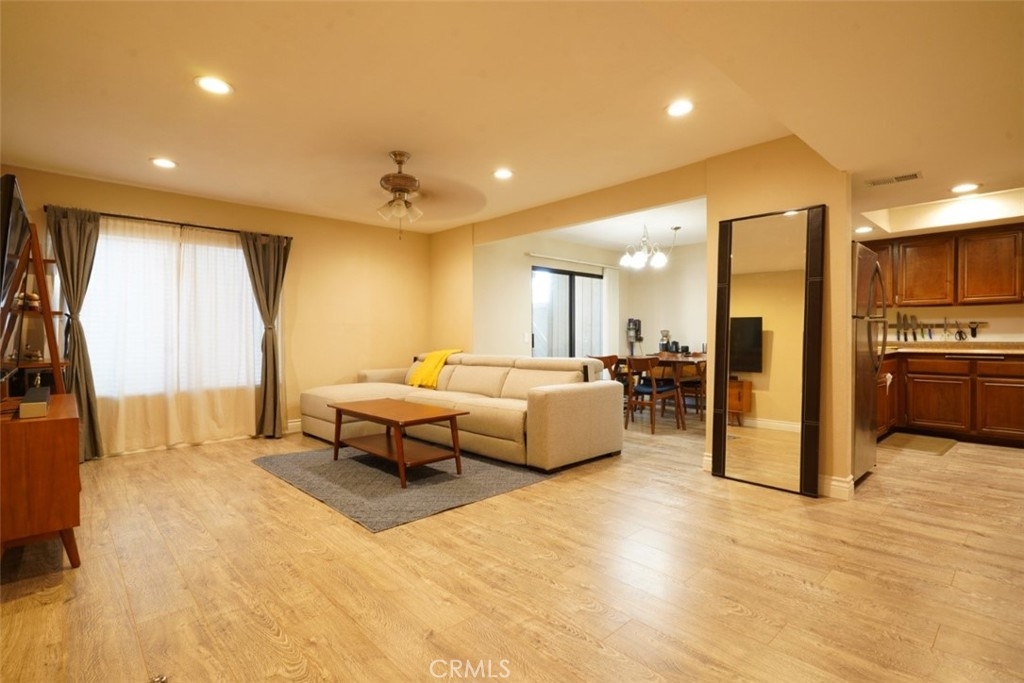 The single-story ground-floor home is in a semi-private eight unit condo in Sycamore Canyons. Located in one of the most sought-after areas of Riverside, the renovated home features an opened living room, engineered laminate floors and recessed lighting throughout the house, new interior doors, a smart thermostat, and a reverse osmosis water filtration system. The kitchen welcomes you with stainless steel appliances and a breakfast bar. Relax in the large master suite with a walk-in closet and a modern double vanity bathroom; the second bedroom is perfect as a bedroom or office. A private outdoor patio nestled among the mature trees, a detached one car garage, and plenty of guest parking make this desirable home a must see. Just steps away from the community pool, spa, barbeque, and laundry, this home is waiting for you. You will love the proximity to UCR, groceries, shopping, parks, hiking trails, golf courses, and local eateries as well as the easy access to the 60, 91, and 215 freeways!
