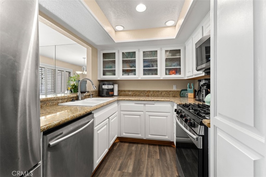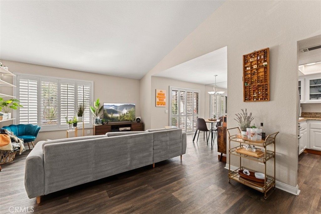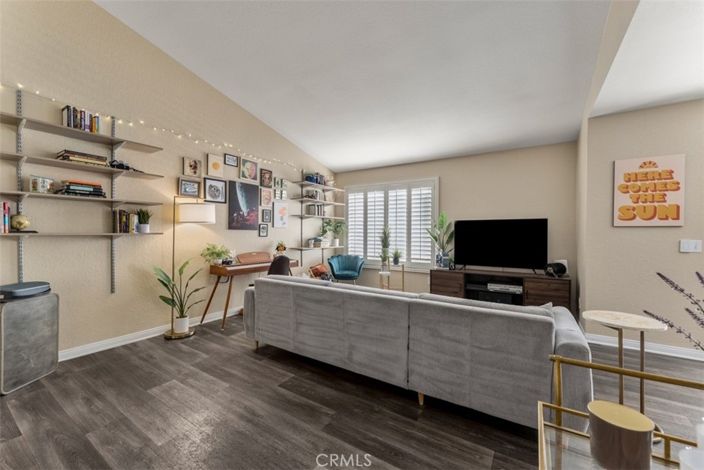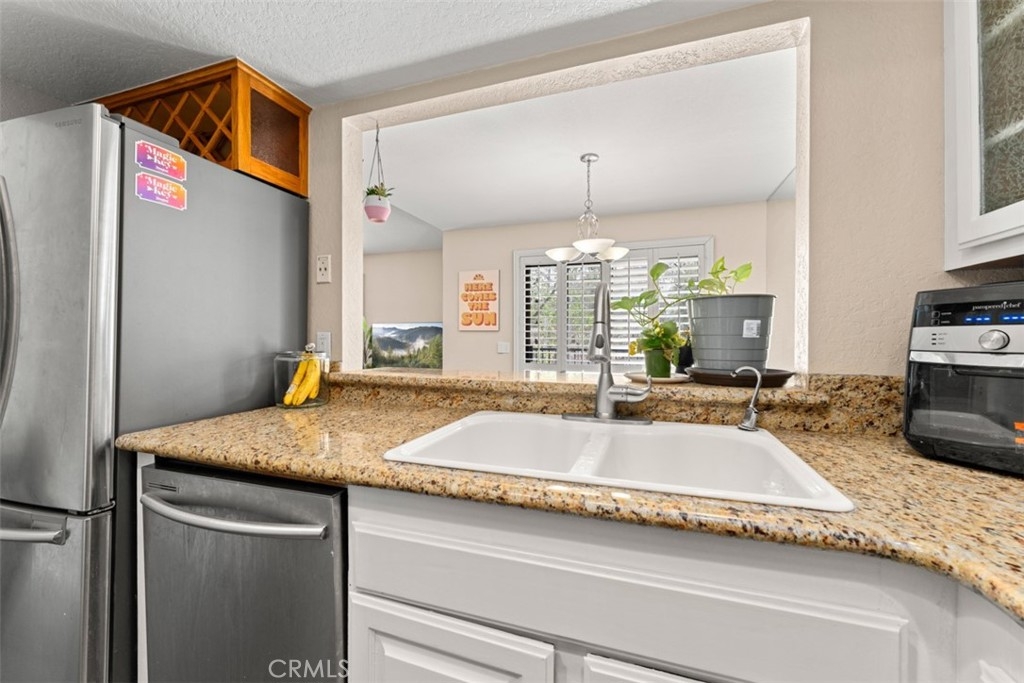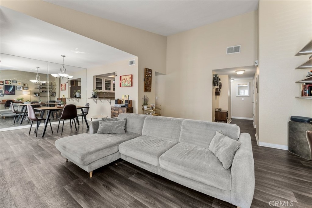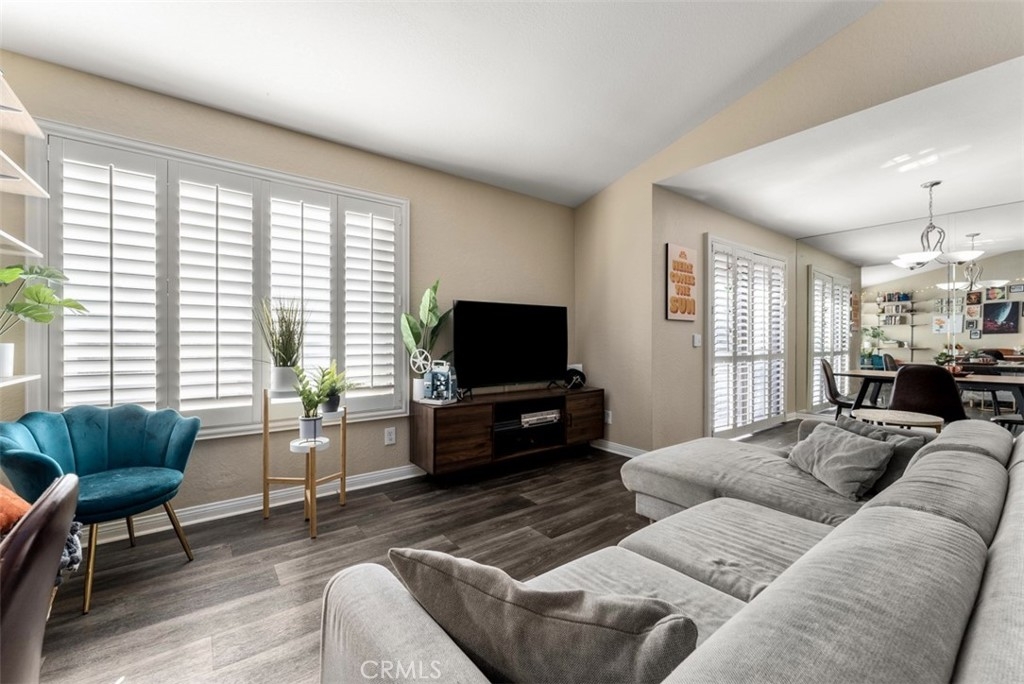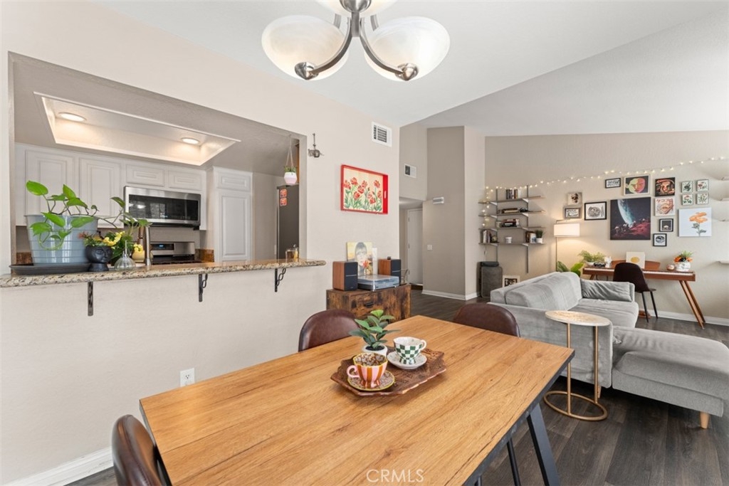 Welcome to this impeccably updated condo. Boasting 2 bedrooms and 2 bathrooms, this home unveils an open floor plan where the living room impresses with vaulted ceilings and an abundance of natural light. The kitchen showcases stainless steel appliances, featuring a gas range, dishwasher, and microwave, complemented by custom cabinets and a spacious pantry. Enjoy meals in the generously sized dining area that opens up to a balcony offering views of the neighborhood and mature trees. Further enhancing the experience, residents have access to delightful amenities, including a beautiful pool and spa. Conveniently situated, this home is in close proximity to Canyon Crest Towne Centre, offering a plethora of shopping and dining options. Additionally, its location near Interstate 215 adds to the overall convenience of this charming abode. Welcome to your new home!