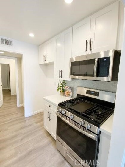 Gorgeous Canyon Crest Dream Condo!!! This is a stunning ground floor end unit which has been completely remodeled. You'll get that happy vibe as soon as you open the front door. The kitchen is... chef's kiss!...white shaker cabinets with quartz countertops and octagon marble backsplash, stainless steel appliances, large single basin sink, breakfast bar, open to living room so the cook doesn't miss the action, plumbed for icemaker unlike other units, recessed lighting, and ceiling was raised (the ceiling height in the kitchen is normally extremely low in these units). Luxury Vinyl Plank flooring installed throughout. The ceilings were scraped and textured so no more of that dated popcorn ceiling. The designer bathroom is clean and bright. Large vanity with quartz countertop and an additional tall storage cabinet. Beautiful shower with custom tile and quartz ledge...and frameless shower door. You'll find plenty of storage throughout...including 2 large master closets. Master bedroom is huge so plenty of room for a desk or two if you work from home. Faux wood blinds, new interior paneled doors, large baseboards. This unit comes with a 1 car garage too which is a big plus and hard to find. You also get a cute patio with 2 storage sheds. (Some people have added laundry in shed area but buyer to investigate and satisfy.) You'll love the serene setting with tons of beautiful trees. This unit is on the end next to a lush green hill so it feels very private. The grounds are beautifully maintained and there are community pools, spas, and laundry on-site. Enjoy the hiking trails nearby and you can even walk to the Canyon Crest town center which has a Ralphs, Rite Aid, several banks, hair and nails, and lots of restaurants. Easy access to freeways and UCR is close by. You'll have to hurry on this one...GOING, GOING, GONE!