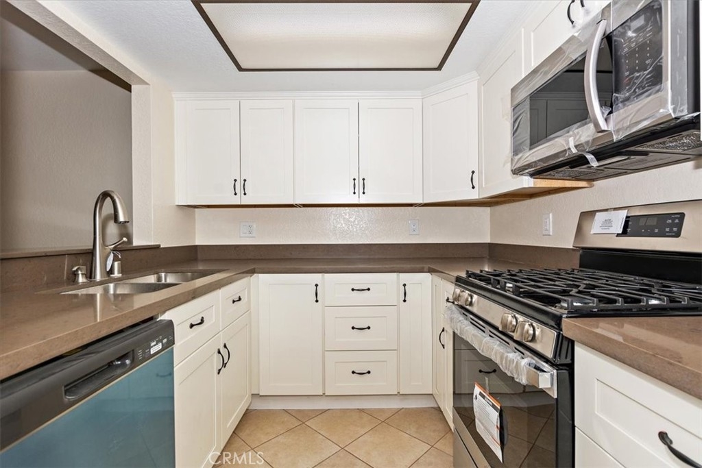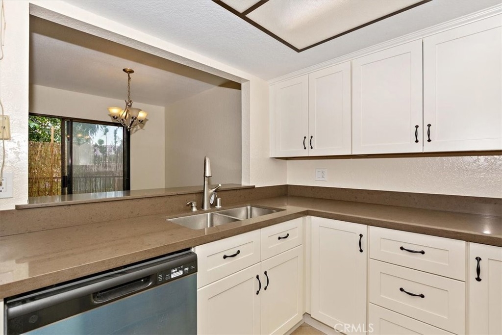 Wow, Wow, Wow. This newly upgraded condo has all the new features you can ask for. New Flooring thoroughout. Freshly painted. New kitchen and bathrooms. Walk into to the open and bright living room that flows to the dining room. The living room has vaulted ceilings really gives the spacious feeling and a nice view from the large window. Formal dining room that opens to your private patio/balcony nestled amoung mature trees, with an extra storage closet. The gorgeous kitchen has quartz counters and a breakfast bar pass thru with custom made quartz supports. Kitchen features, new stainless steel sink and faucet, new garbage disposal, new stainless steel range and microwave, new cabinets and new tile flooring. Bath 2 has new quartz top vanity, mirror cabinet. Bdrm 2 has new mirrored closet doors. Primary bdrm has a large walk in closet, new bathroom quartz vanity double sink and new mirror w/cabinet, also in the shower area a nice skylight. Move in ready. This Sycamore Canyon Condo is just right for you.