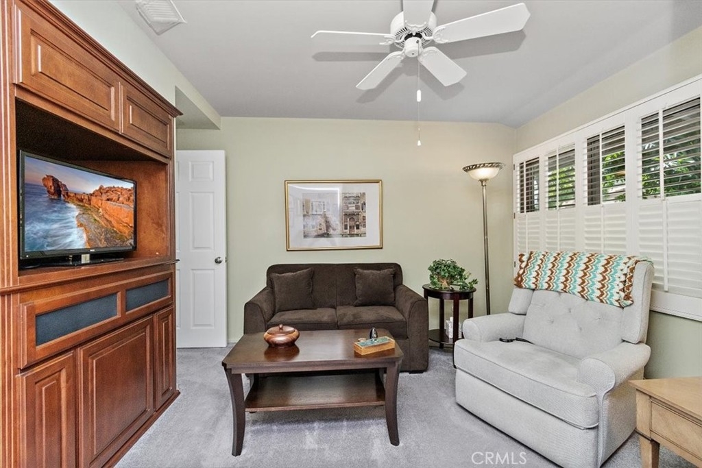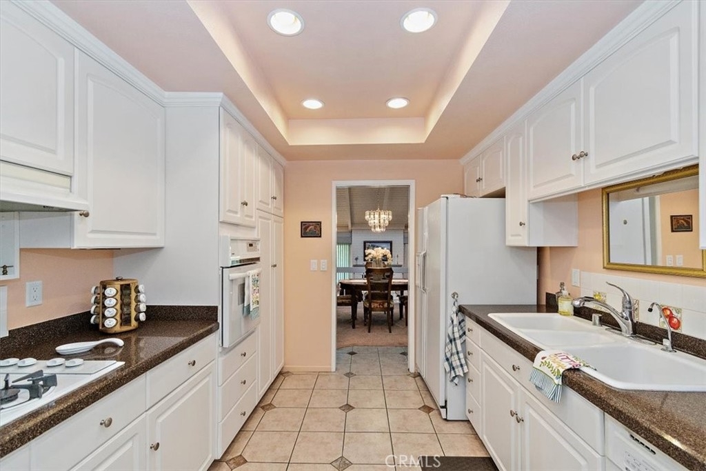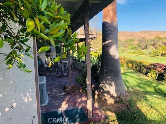 Breaking News! stunning single-story end unit with amazing View of the Golf course and park like scenery. Upon entering the community you immediately sense the serenity of this well - manicured tree-lined neighborhood. This 1,764 3 bedroom (one used as open den floor plan) Boasts elegance and natural lighting in addition to updated kitchen with tile flooring, Corian counter, cabinetry, ample counter prep space and private eating area. Large laundry room is off the kitchen with ample storage area with built-ins for home office with access to two car garage. Step down to living room off dining with open high vaulted beams with views of golf course. Master suite has slider door to patio area with view of golf course. But there is more, generous master bedroom offers step down to custom tile walk in tiled shower. Hall bathroom offers a custom tile walk in shower. Patio offers great setting with golf course for entertaining or evening dining. Property is a short walk to the pool/club house. Location is convenient to shopping, schools and close to UCR, fine dining! You won't want to miss!