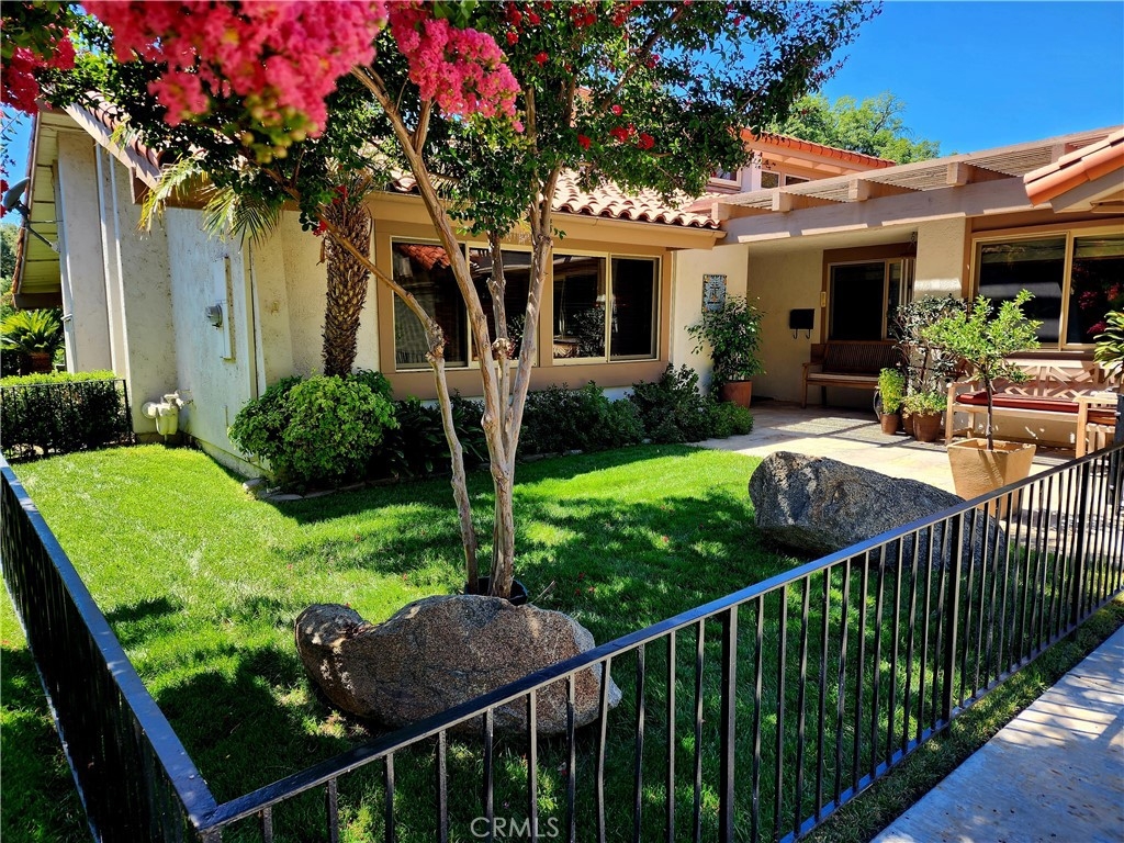 Welcome to the epitome of luxury living at the Crown Jewel of Canyon Crest Villas. Nestled beside the picturesque green #2 of the Canyon Crest Country Club, this single-story condo offers an unparalleled fusion of elegance and modern comfort. Every inch of its interior has been meticulously remodeled to create a haven of sophistication. Step inside to discover a seamless blend of design elements, including gorgeous wood flooring that lends a touch of warmth to the space. The timeless beauty of button and board plaster graces the walls, setting the stage for an atmosphere of refined tranquility. Hallways have been thoughtfully widened, ushering you into a sense of openness and fluidity. The condo's rejuvenation extends to the details, with new windows framing breathtaking vistas of rolling hills, verdant trees, and the sprawling golf course. The essence of modern living is exemplified through comprehensive upgrades in electrical and plumbing systems, ensuring seamless functionality and peace of mind. Walls were artfully removed to unveil an expanded kitchen and office area, a symphony of space and utility. Custom cabinets grace the heart of the home, providing ample storage while exuding artisanal charm. The master bathroom transforms into a private oasis, boasting a steam shower sauna for moments of relaxation and rejuvenation. However, the true pièce de résistance lies in the captivating view that unfurls before you. Positioned to capture the best view in the neighborhood, the condo's windows frame the natural beauty of the hills, trees, and the golf course's lush expanse. An enclosed patio becomes a year-round sanctuary, artfully designed with skylights that usher in natural light. Ceiling fans gently stir the air, while pull-down shades offer shade and privacy when desired. Radiant heaters complete the picture, allowing you to enjoy the space even in cooler months. This condo, poised beside the greens of the golf course, stands as the crowning achievement of Canyon Crest Villas. With its thoughtful remodeling, exquisite finishes, and captivating surroundings, it offers a lifestyle that balances luxury, comfort and the tranquility of a premier location. Welcome home to the pinnacle of gracious living.