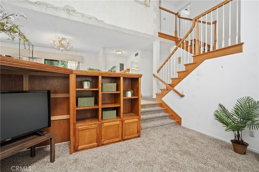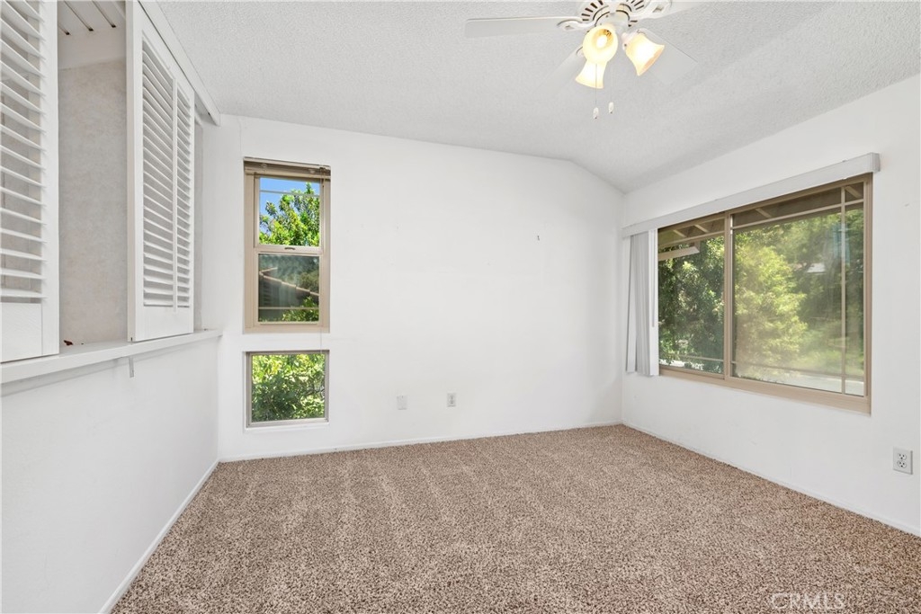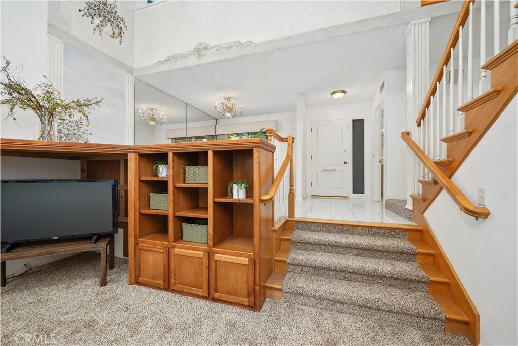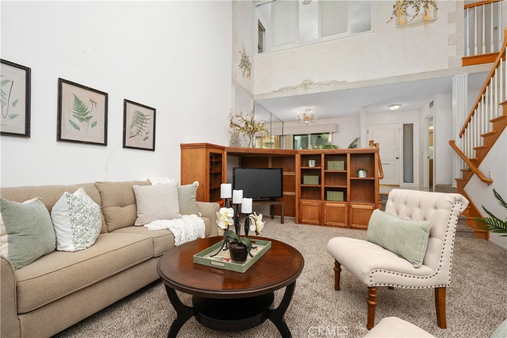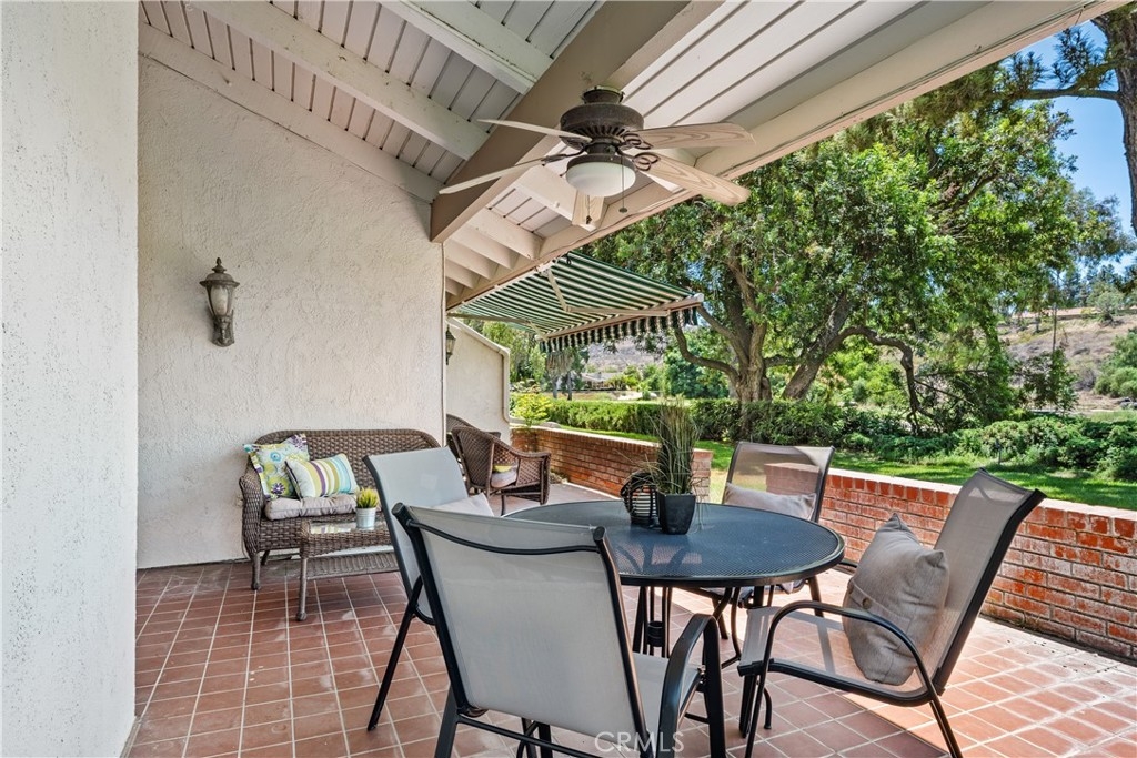 Welcome to Canyon Crest Villas—a tranquil neighborhood situated adjacent to the Canyon Crest Country Club golf course. This residence sits next to the 3rd tee and features a rear patio that provides stunning views of both the golf course and surrounding hills. The home’s inviting tri-level layout creates an open atmosphere, enhanced by vaulted ceilings and skylights that allow natural light to fill the space. Entry is on the middle level, where you will find the dining room, kitchen, laundry area, and garage access. Ceramic tile flooring extends throughout these main living areas, while new carpeting has been installed in the remaining rooms. The kitchen includes a comfortable eating area and ample counter space, ideal for preparing gourmet meals. A sunken living room below the entry terrace features a built-in storage and entertainment unit, multiple seating options, and a gas fireplace with a marble surround. Sliding doors provide easy access to the back patio. Adjacent to the living room, the primary bedroom suite boasts hardwood floors, a sliding door to the patio with picturesque golf course views. The primary bath space features a dual sink vanity, a spacious shower, and multiple closets—including a unique under-stair storage space. Upstairs are two additional bedrooms, one equipped with built-in office cabinetry overlooking the living area. The serene setting along the golf course offers the perfect environment to relax and enjoy the outdoors from the back patio. Residents benefit from exceptional community amenities, including an HOA clubhouse, pool, and spa—offering a resort-style experience just minutes from shopping, UCR, and all the attractions Riverside has to offer.