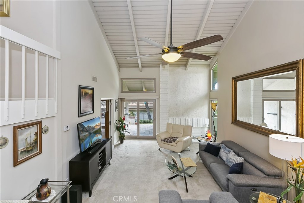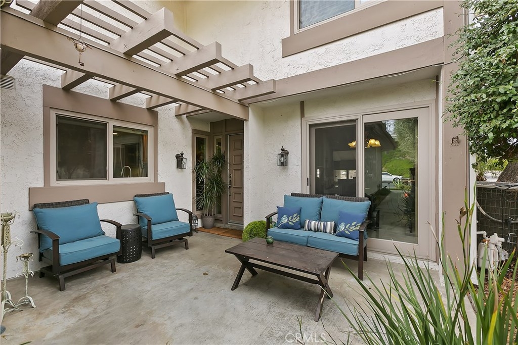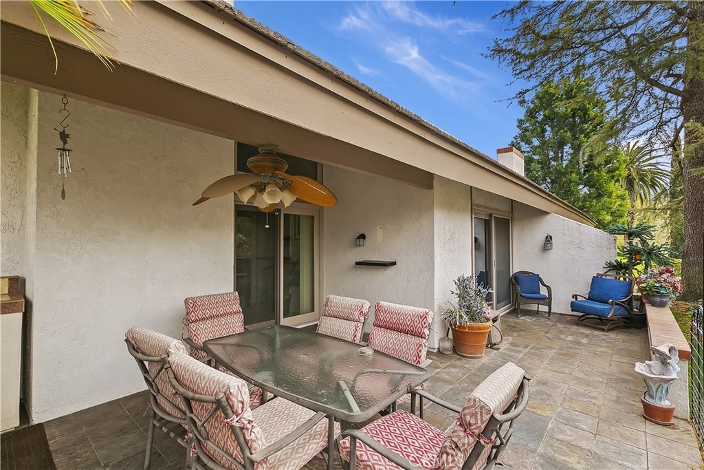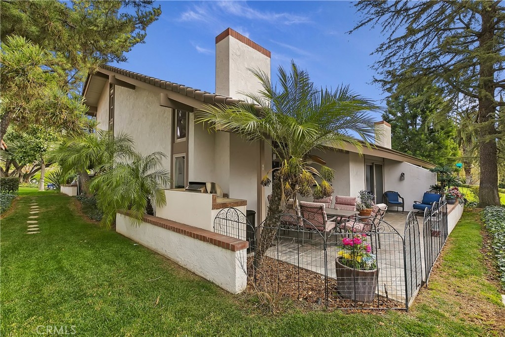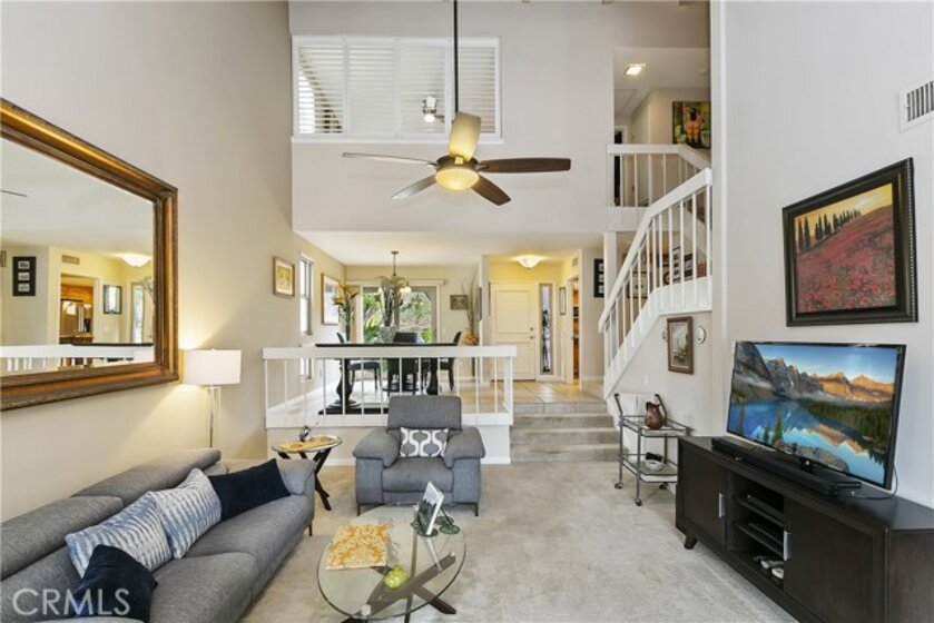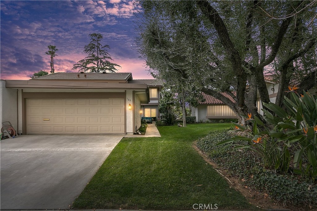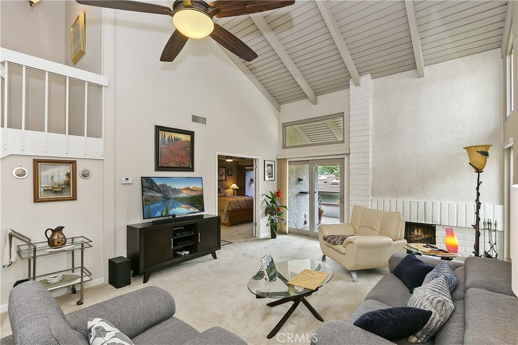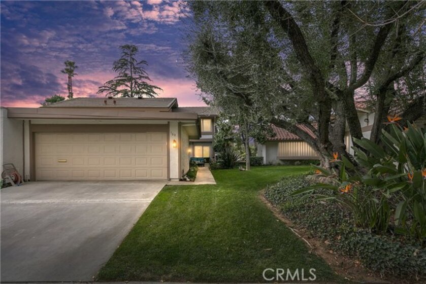 Take advantage and lock in the lowest interest rates of a lifetime on this beautiful home. As you enter this home you will surely notice the cathedral vaulted ceilings with beautiful wood beams. The entryway meets up with the nice sized dining room with a sliding glass door that leads to the front courtyard. The kitchen which is situated next to the dining room has been updated with granite countertops, custom cabinetry, stainless steel appliances, newer windows, window coverings, plumbing, and fixtures. There is also space for countertop eating or possibly a small dinette set. Just off the kitchen, you will find a spacious office with built-in custom cabinetry and laundry room area. The spacious sunken living room has a brick fireplace and a sliding glass door that leads to the back patio with built-in bbq. One of the best features of this home is that the master bedroom suite is on the main level and also has a sliding glass door to the back patio. There is an en-suite with an updated zero-entry fully tiled shower. Upstairs there are two good sized bedrooms and a full bathroom. This condo is close to the association clubhouse and swimming pool. Canyon Crest Villas offers carefree living situated on the Canyon Crest Golf Course and close proximity to the Canyon Crest Towne Center.