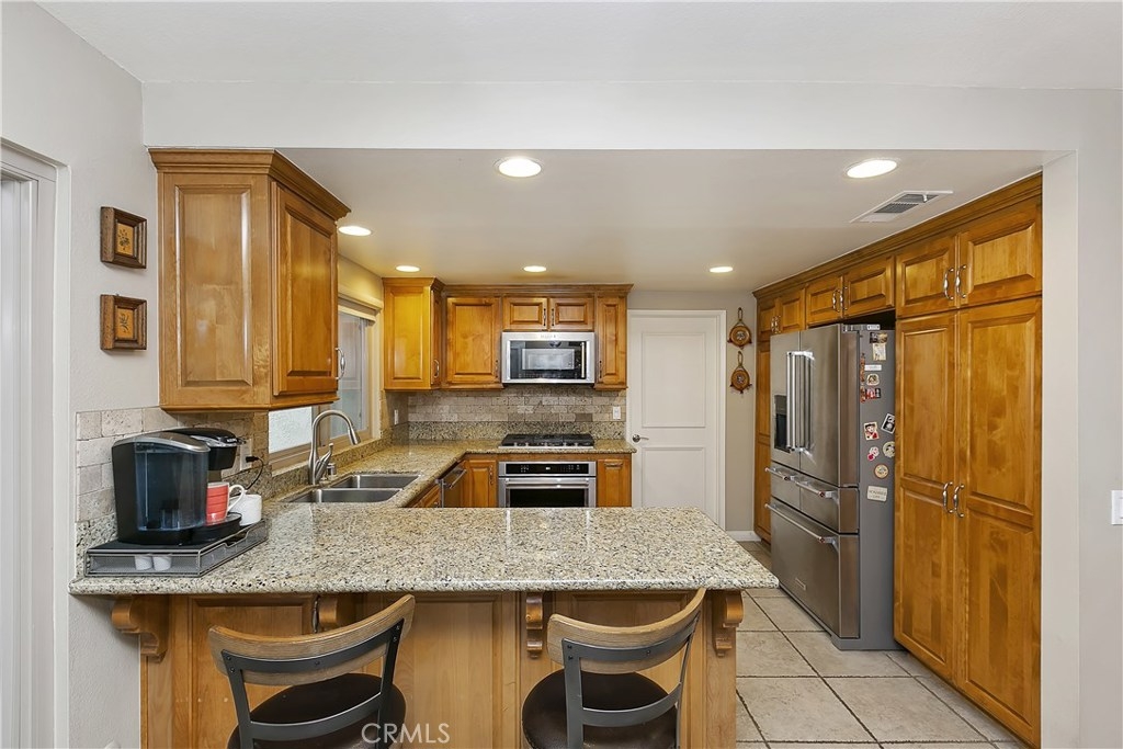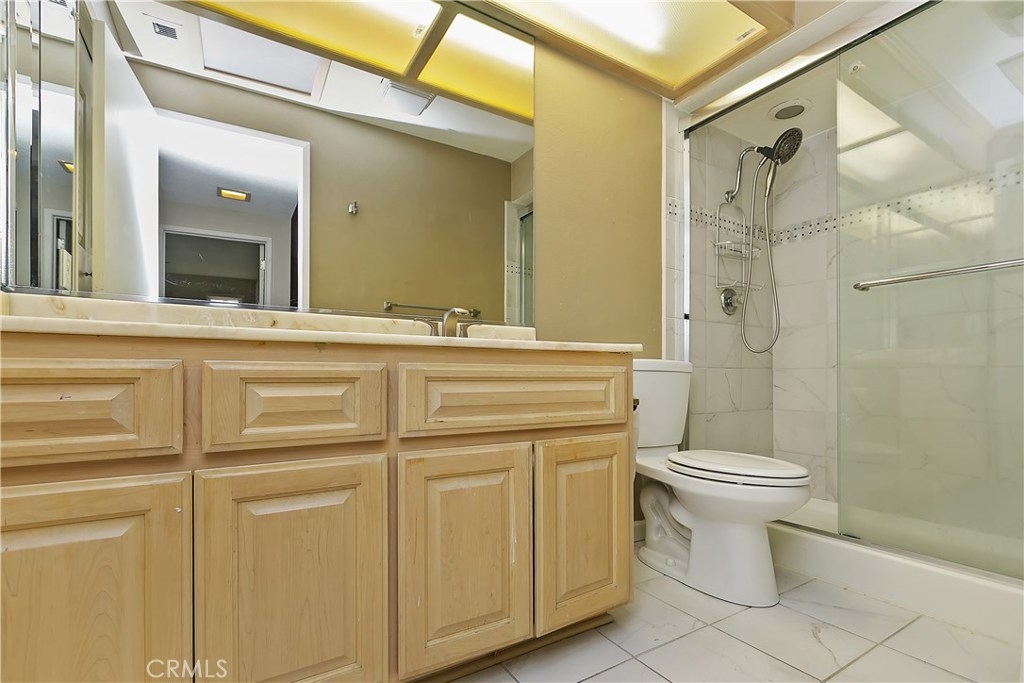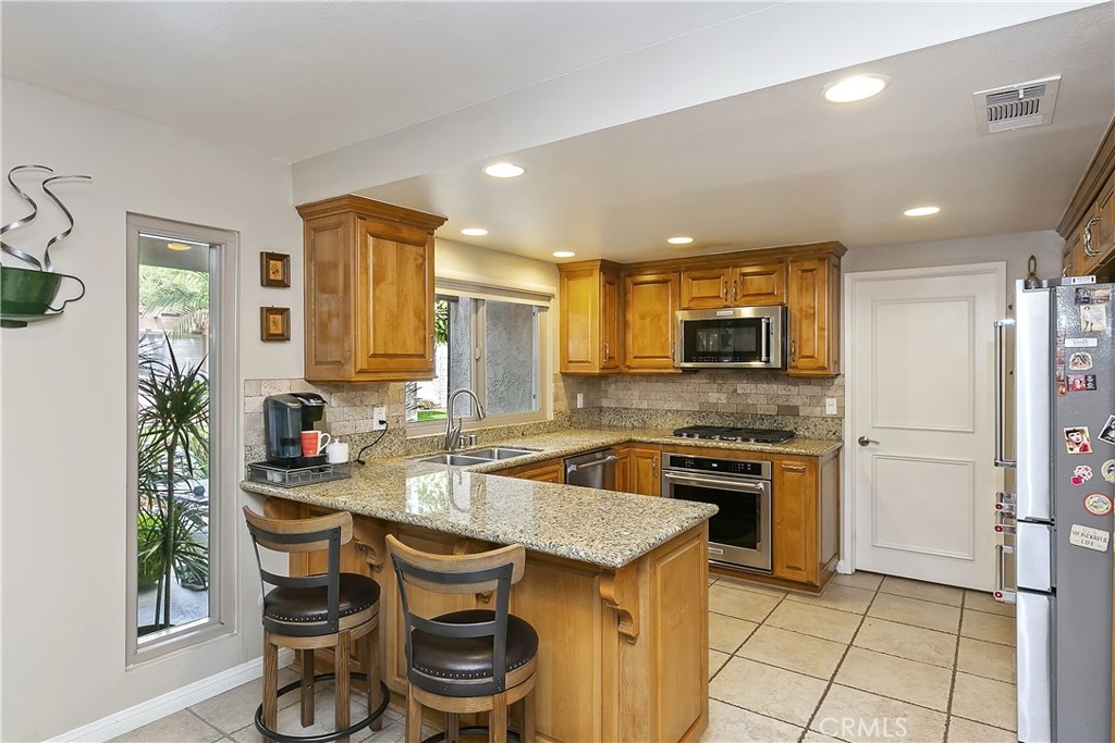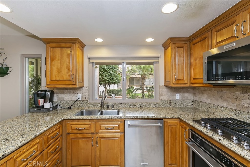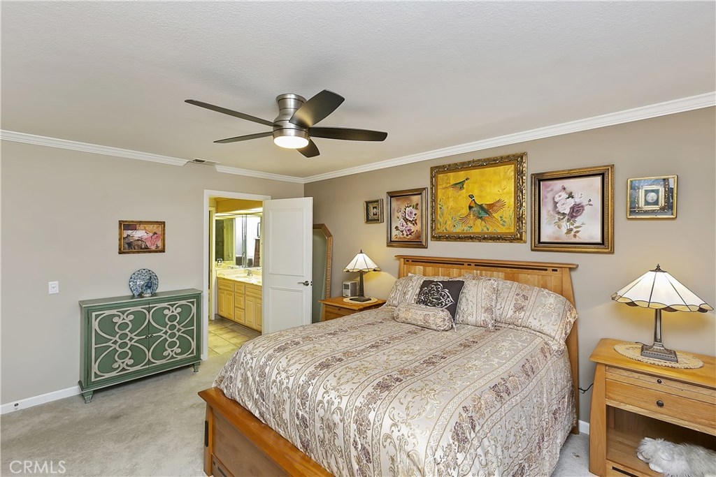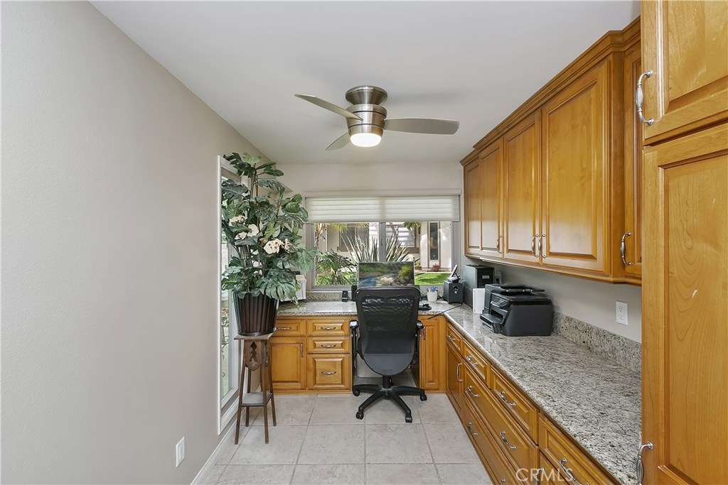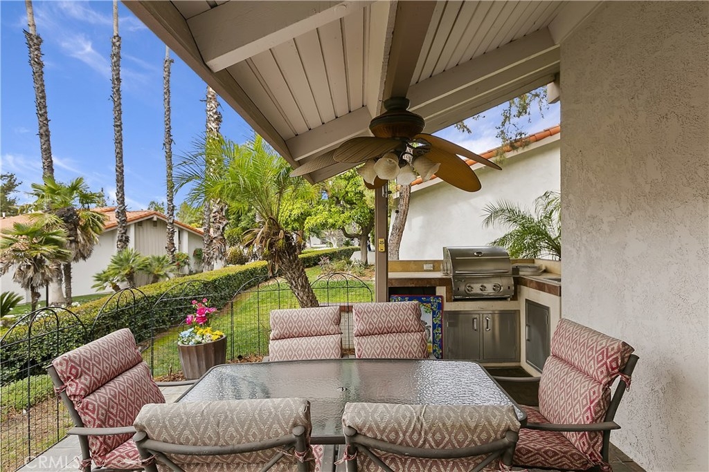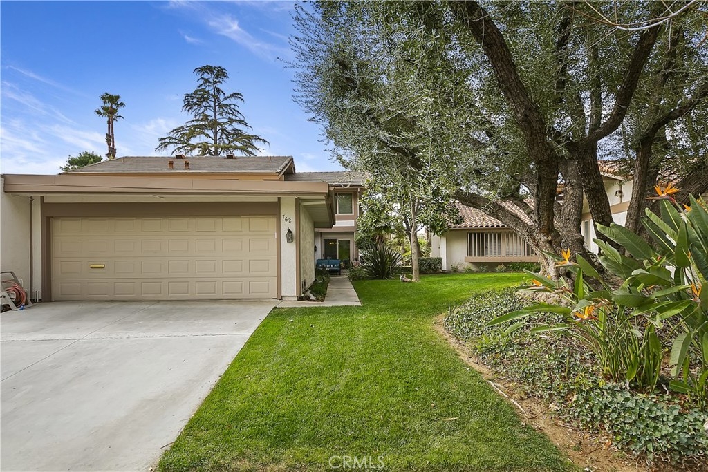 Take advantage and lock in the lowest interest rates of a lifetime on this beautiful home. As you enter this home you will surely notice the cathedral vaulted ceilings with beautiful wood beams. The entryway meets up with the nice sized dining room with a sliding glass door that leads to the front courtyard. The kitchen which is situated next to the dining room has been updated with granite countertops, custom cabinetry, stainless steel appliances, newer windows, window coverings, plumbing, and fixtures. There is also space for countertop eating or possibly a small dinette set. Just off the kitchen, you will find a spacious office with built-in custom cabinetry and laundry room area. The spacious sunken living room has a brick fireplace and a sliding glass door that leads to the back patio with built-in bbq. One of the best features of this home is that the master bedroom suite is on the main level and also has a sliding glass door to the back patio. There is an en-suite with an updated zero-entry fully tiled shower. Upstairs there are two good sized bedrooms and a full bathroom. This condo is close to the association clubhouse and swimming pool. Canyon Crest Villas offers carefree living situated on the Canyon Crest Golf Course and close proximity to the Canyon Crest Towne Center.