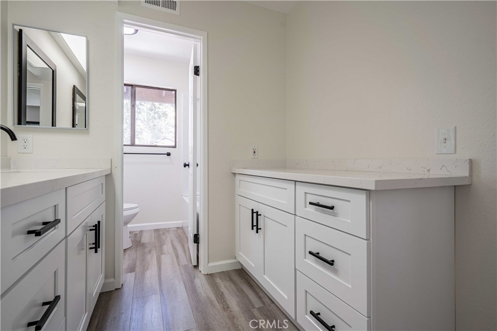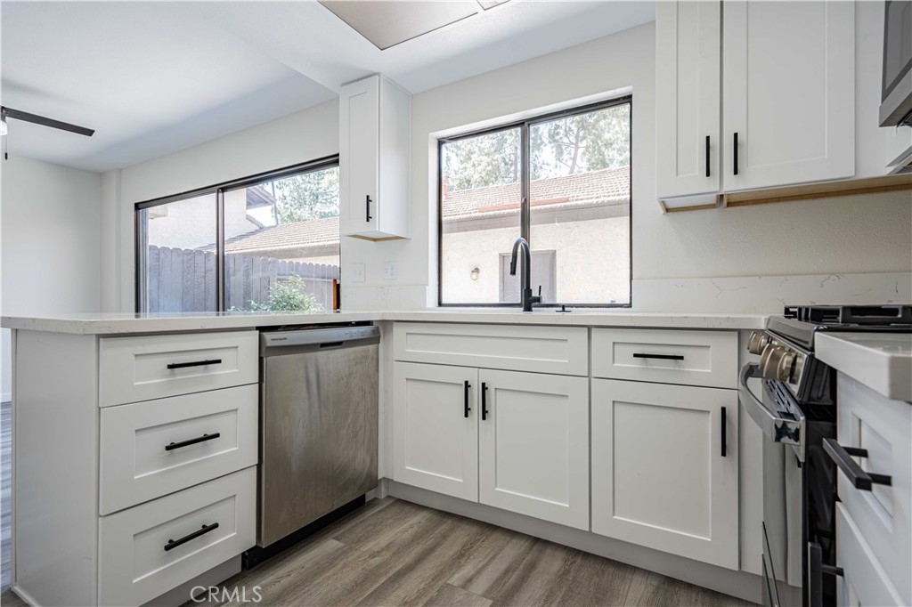 Fully renovated!!! Turnkey, Move in ready two story, two bedroom 1.5 Bath Condo. This beautiful condo features brand new kitchen cabinets, new quartz counters, both bathrooms are also remodeled with new vanity's, light fixtures and toilets. The interior is freshly painted, new flooring and carpet in both of the bedrooms. Master bedroom has access to a balcony, boasts beautiful views of the water stream and shaded with lots of trees. Located in the beautiful Canyon Tree community, close to the 215, 60 & the 91 FREEWAYS!!!
