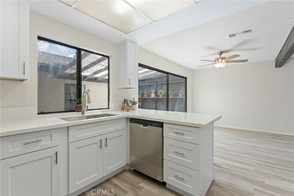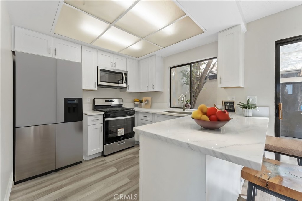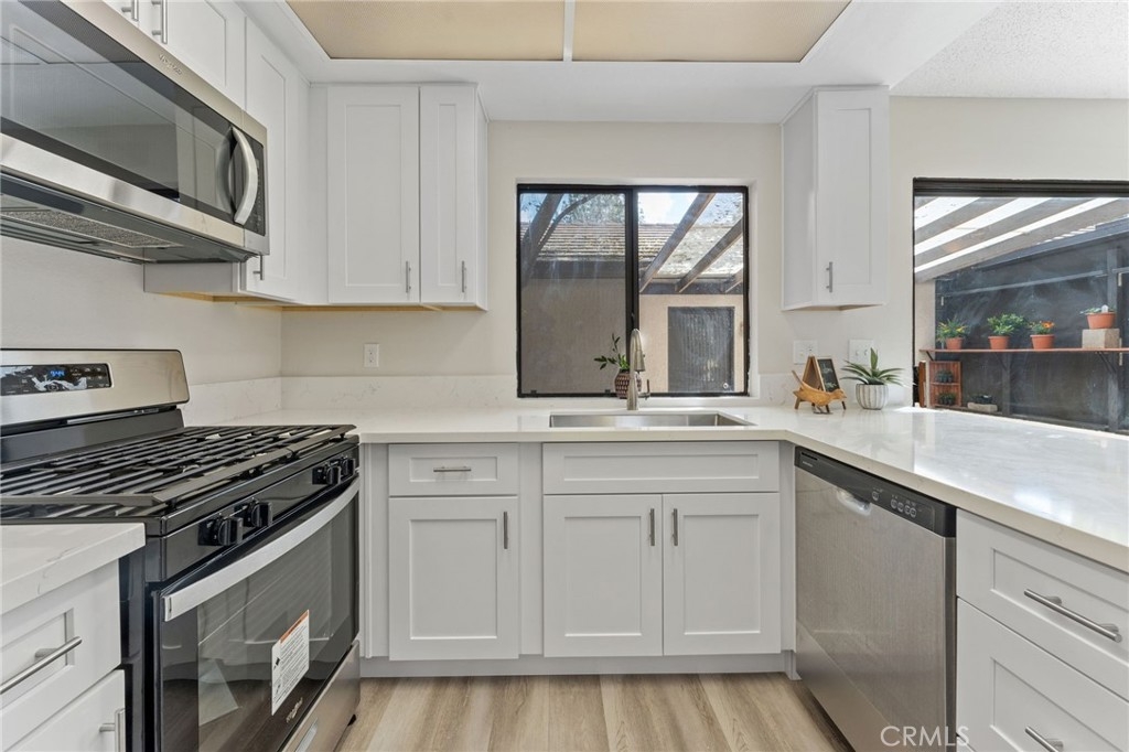 Nestled in the serene Canyon Trees community within the prestigious Canyon Crest neighborhood, this exquisite condominium offers an unparalleled lifestyle directly opposite the vibrant Canyon Crest Town Center. Experience the convenience of having an array of shopping, gourmet dining, grocery options, and a modern gym just a stone's throw away. Proudly presenting a meticulously renovated 2-bedroom, 1.25-bathroom sanctuary that seamlessly blends comfort with modern elegance. As you step inside, you'll be greeted by a sun-drenched living space that opens onto a tranquil covered patio, creating a perfect indoor-outdoor flow for relaxation or entertaining. The unique positioning of the patio between the condo and the detached 2-car garage ensures privacy and serenity. The heart of this home is undoubtedly its stunning new kitchen, adorned with crisp white shaker cabinets that are complemented by gleaming new quartz countertops, setting the stage for culinary adventures. Both bathrooms have been thoughtfully redesigned with contemporary fixtures and finishes, adding a touch of luxury to your daily routine. Every detail has been carefully selected, from the brand-new flooring that sweeps throughout the residence to the fresh coat of paint that gives the space a modern and inviting ambiance. This home is more than just a living space; it's a retreat that offers a blend of convenience, style, and comfort. Don't miss the opportunity to make this Canyon Crest gem your own.