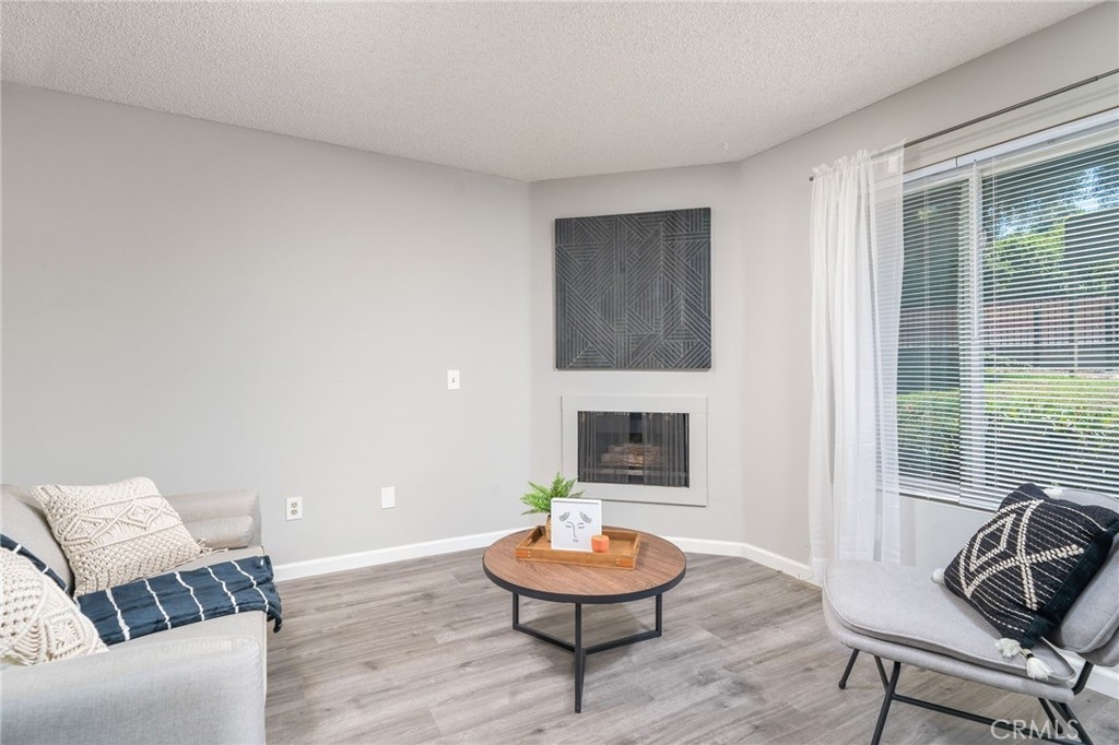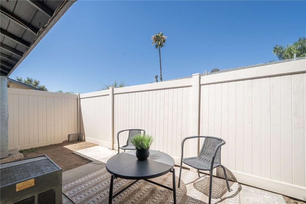 Turnkey two bedroom two bath single level condo in the gated community of Casa De Oro! Walking distance to UC Riverside, and University Village. This home has been completely remodeled with beautiful vinyl plank flooring throughout. The open kitchen has modern white shaker cabinets, and gray quartz countertops, with a stainless steel stove, and stainless steel vent hood. There is a quaint dining area near the kitchen that looks over towards the living room. There is a fireplace in the living room area. Each of the bedrooms are ample sized, with the master bedroom having a sliding door that leads out to private back patio area. Each of the bedroom has been remodeled with elegant vanities, and new tub/shower units. There is are two assigned parking spaces for this unit, and additional guest parking spots available as well. HOA amenities include a community pool and BBQ area on site, as well as laundry room. HOA fees include water and trash. Make this great home yours today!