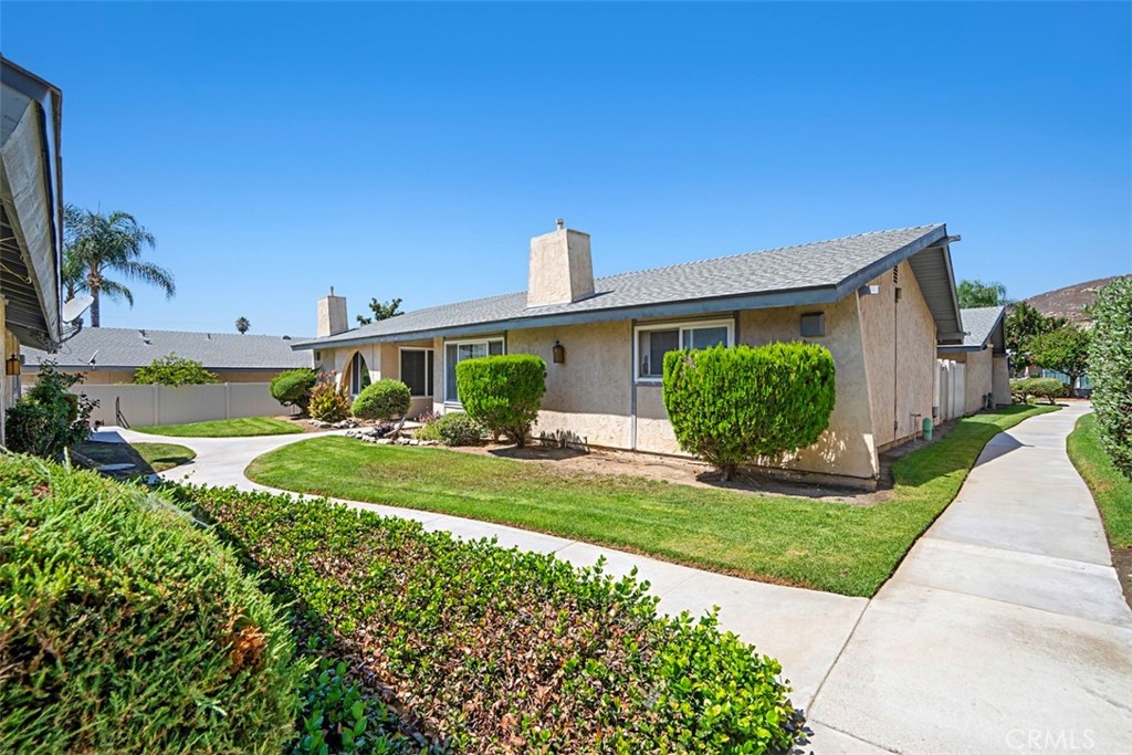 Single story condo near UCR. Remodeled and ready to move in. This is an end unit. The large living room is open to the dining area and kitchen and has a gas log fireplace. The kitchen has been remodeled and includes quartz counters and self-close drawers and cabinet doors and venting above the stove is vented to the outside. The unit has waterproof vinyl flooring, tile flooring in the kitchen and bathroom, large windows to let in lots of natural light, newer vinyl windows and slider in the bedroom, two closets in the bedroom including one walk-in. The unit has one assigned carport parking space. HOA dues include trash, gas, water, common area maintenance. Nicely landscaped gated community with a pool, hot tub, clubhouse, barbecues and picnic areas, on-site laundry. The unit is close to the pool and laundry. Complex is not FHA approved.
