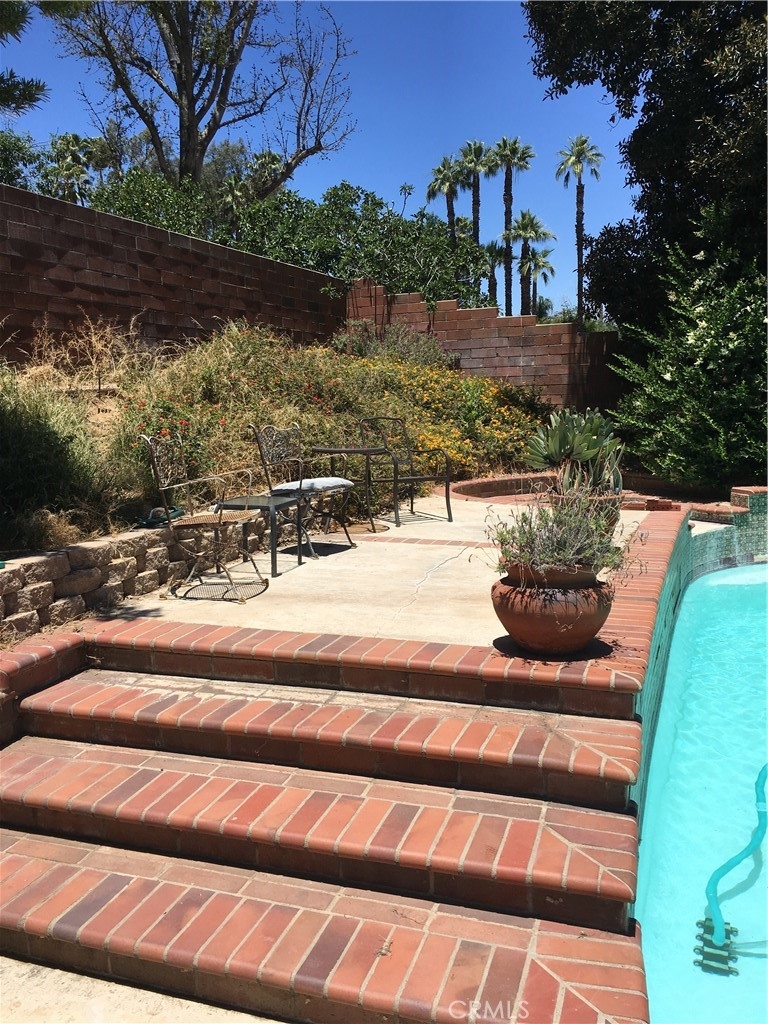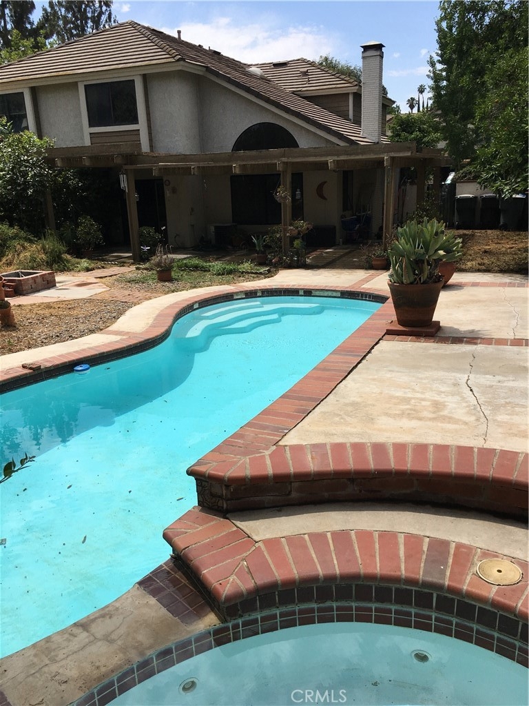 A great opportunity awaits the new buyer to put the finishing touches on this Crawford Country Estates home- one of only 2 homes in the gated community with a private pool. The large lot has several variations of citrus trees on the side yard and plenty of room for avocado trees if desired. Inside is an open floor plan with built in cabinetry flanking the family room fireplace. The kitchen has an eat in area with backyard views. 3 spacious bedrooms and 2 baths upstairs. The potential and possibilities with this home are endless. Sale “As Is”
