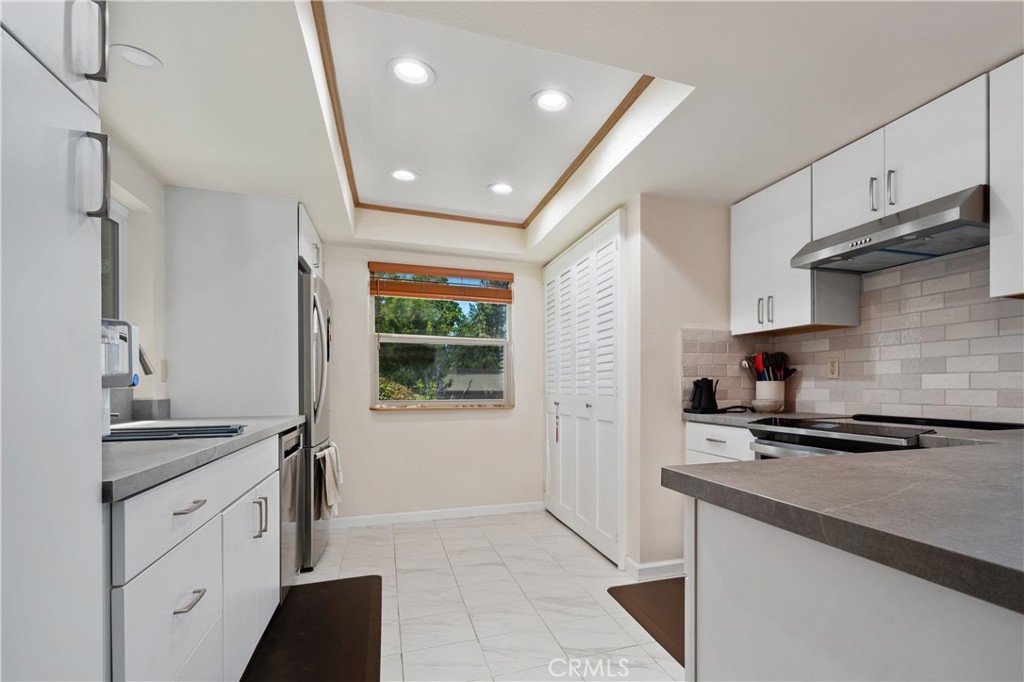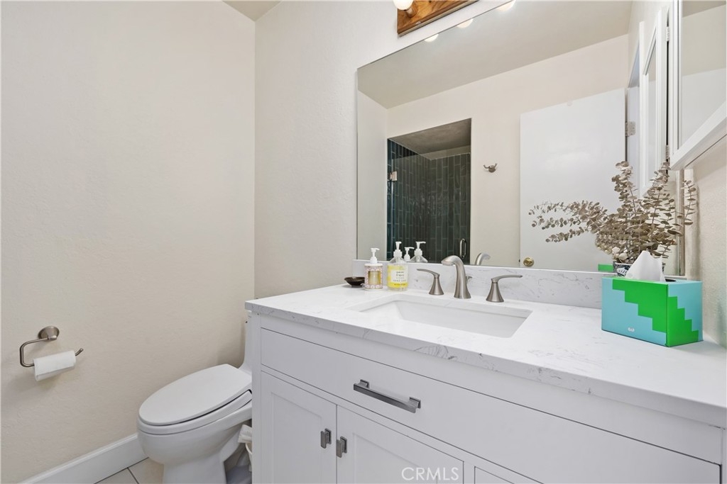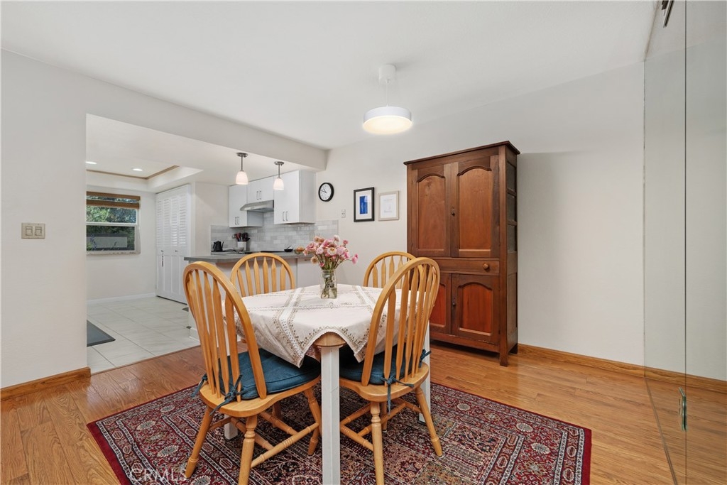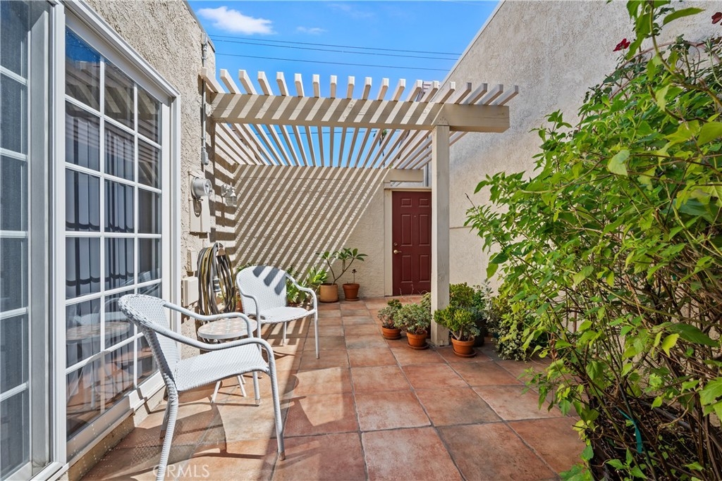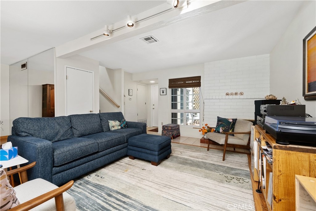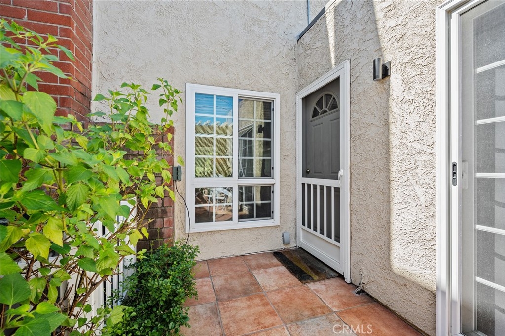 This turnkey Crestview Estates condominium is located in the desirable Canyon Crest area, conveniently situated just minutes from UCR, Canyon Crest Towne Center, and local transportation. Positioned at the rear of the community, this unit is near the pool and clubhouse area. The secured courtyard entry features electrical outlets and drip irrigation, offering an ideal space for creating a private retreat. Direct access from the garage leads into this exclusive area. Inside, laminate flooring complements the open-concept floor plan. The main level includes a large window overlooking the courtyard and a gas fireplace in the living room, adjacent to a dining area connected to the kitchen. The kitchen, updated in 2020 with further enhancements in 2024, features custom “soft close” cabinetry, Dekton countertops suitable for baking, a recently installed GE Induction range (2023), and a custom tile backsplash. A stackable washer and dryer are discreetly housed in a closet with ample storage shelving. The living area opens via sliding door to an enclosed patio with new tile flooring and double-pane windows, providing abundant natural light. Downstairs, a bedroom suite with an updated bathroom and sliding door to the front patio offers convenience and privacy. Upstairs, there are two additional bedrooms and a full bath. Bedroom two provides scenic views of the community and Sycamore Canyon hills, while the primary bedroom features generous lighting, a spacious walk-in corner closet, and direct access to the newly renovated bathroom with a walk-in shower and double vanity. Additional upgrades include double-pane retrofit windows throughout, a new solar tube above the stairwell, a new HVAC system (2018), and a water heater less than seven years old. The finished one-car garage offers custom lighting and storage cabinetry, complemented by a covered parking space adjacent to the courtyard. Community amenities include a pool, spa, and clubhouse.