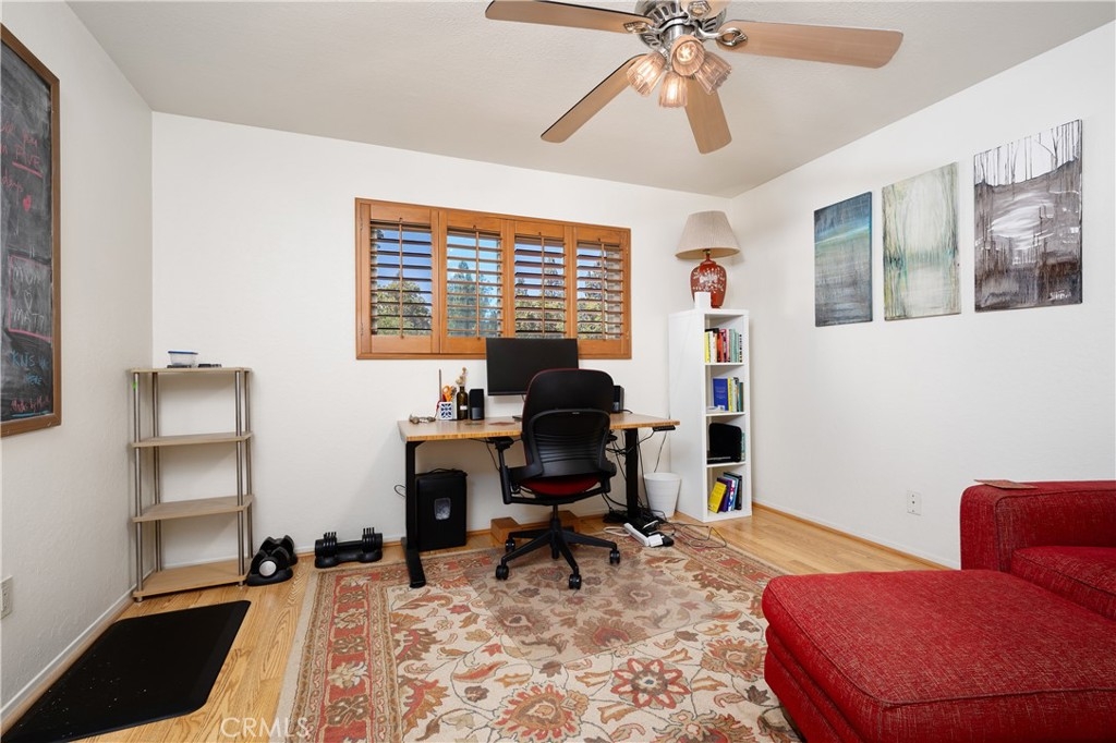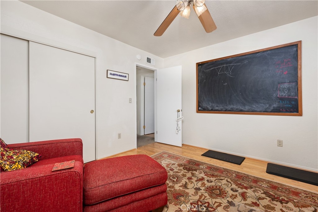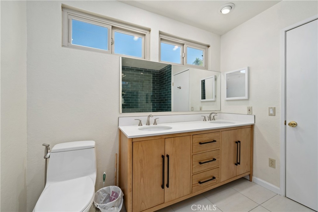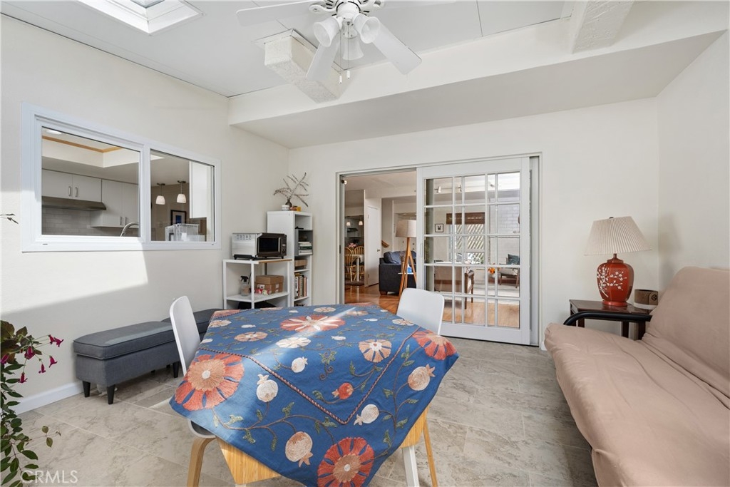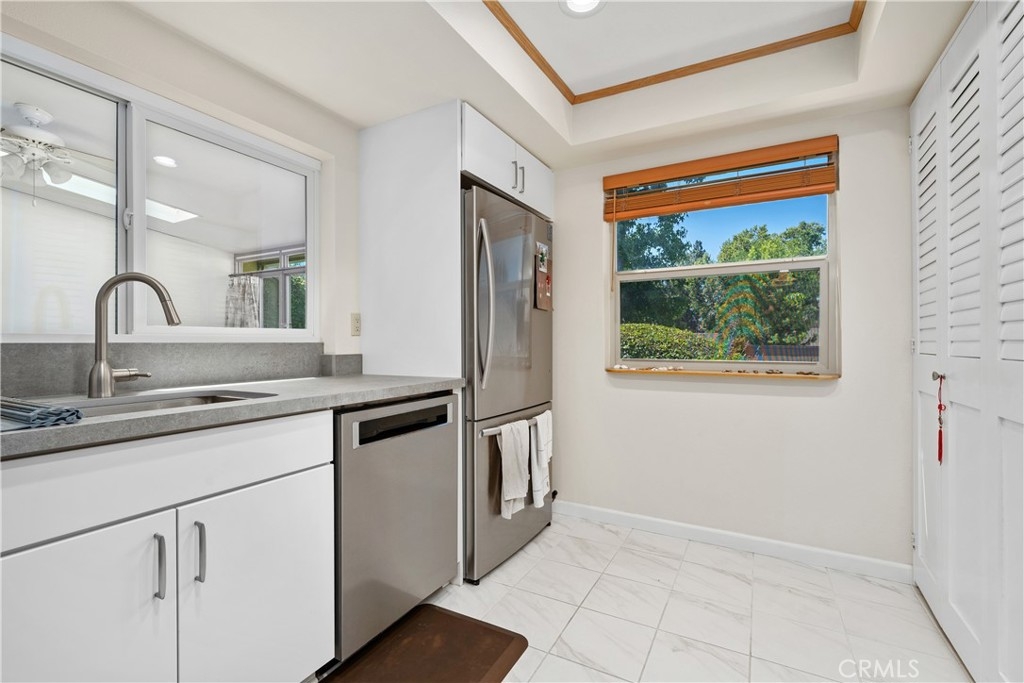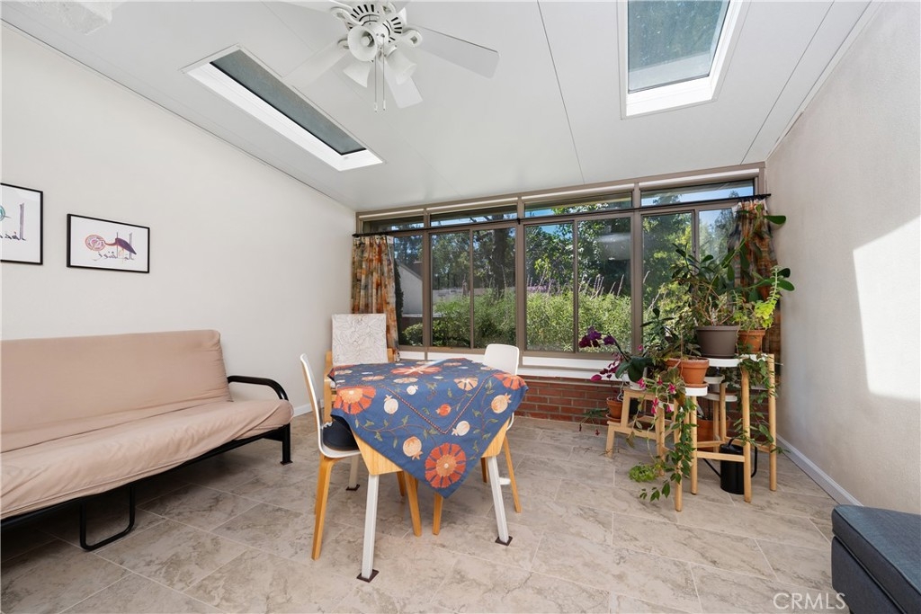 This turnkey Crestview Estates condominium is located in the desirable Canyon Crest area, conveniently situated just minutes from UCR, Canyon Crest Towne Center, and local transportation. Positioned at the rear of the community, this unit is near the pool and clubhouse area. The secured courtyard entry features electrical outlets and drip irrigation, offering an ideal space for creating a private retreat. Direct access from the garage leads into this exclusive area. Inside, laminate flooring complements the open-concept floor plan. The main level includes a large window overlooking the courtyard and a gas fireplace in the living room, adjacent to a dining area connected to the kitchen. The kitchen, updated in 2020 with further enhancements in 2024, features custom “soft close” cabinetry, Dekton countertops suitable for baking, a recently installed GE Induction range (2023), and a custom tile backsplash. A stackable washer and dryer are discreetly housed in a closet with ample storage shelving. The living area opens via sliding door to an enclosed patio with new tile flooring and double-pane windows, providing abundant natural light. Downstairs, a bedroom suite with an updated bathroom and sliding door to the front patio offers convenience and privacy. Upstairs, there are two additional bedrooms and a full bath. Bedroom two provides scenic views of the community and Sycamore Canyon hills, while the primary bedroom features generous lighting, a spacious walk-in corner closet, and direct access to the newly renovated bathroom with a walk-in shower and double vanity. Additional upgrades include double-pane retrofit windows throughout, a new solar tube above the stairwell, a new HVAC system (2018), and a water heater less than seven years old. The finished one-car garage offers custom lighting and storage cabinetry, complemented by a covered parking space adjacent to the courtyard. Community amenities include a pool, spa, and clubhouse.