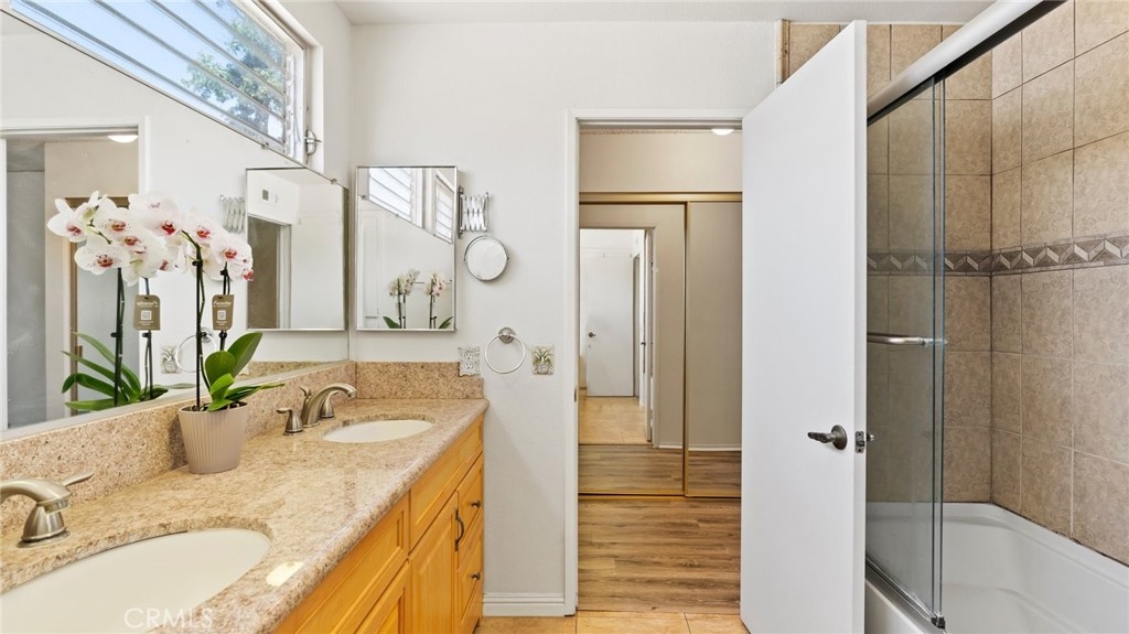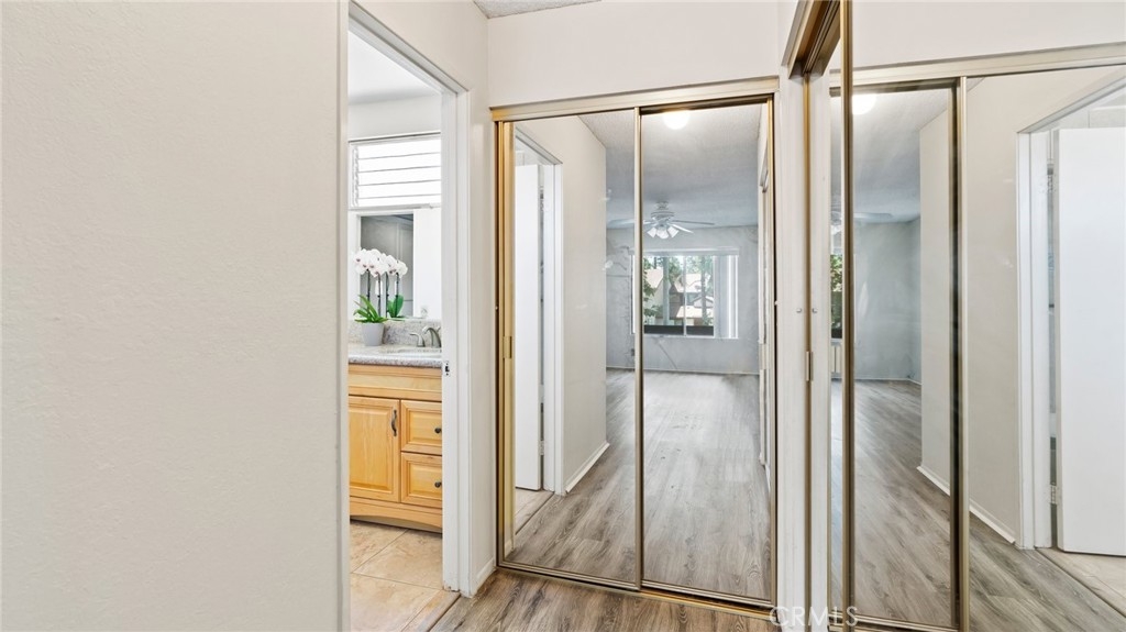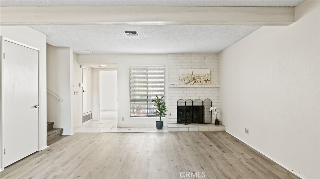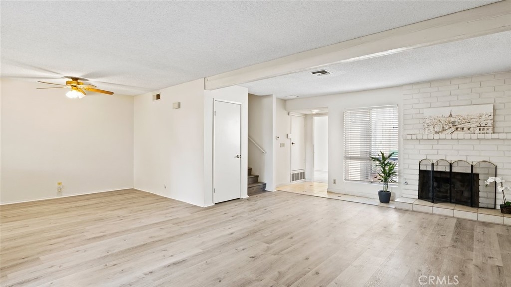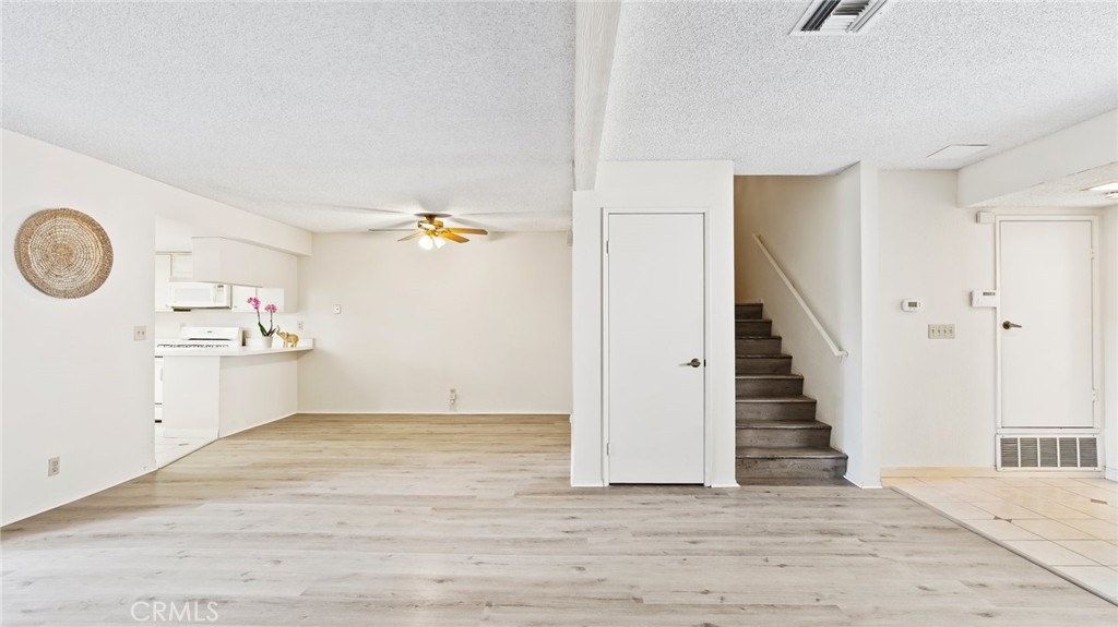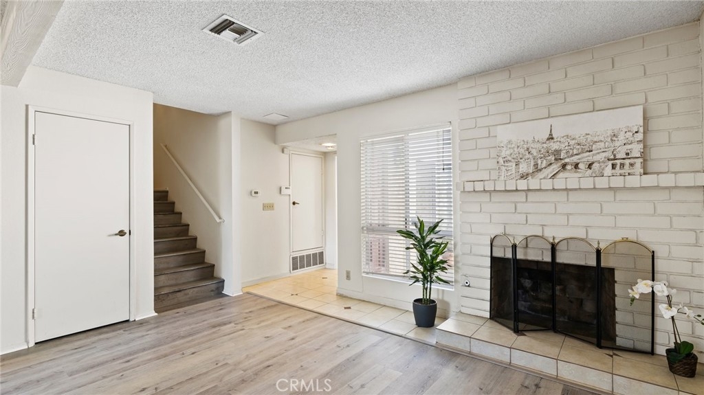 Beautiful Crestview Estate Townhouse that is walking distance to Canyon Crest Towne Center and 5 minute drive to UC Riverside. Downstairs; Features a bright, open and spacious living & dining area, anchored by a classic brick fireplace. Kitchen features white wood cabinetry, clean white countertops, expansive breakfast bar, gas stove, built-in microwave and dishwasher. Adjacent is an oversized master bedroom and en-suite bath, complete with private entry. Entrance to both the living space and bedroom are via a front courtyard with direct access to the carport and garage. Finally, an enclosed back patio has ample room for relaxing & additional storage. Brand new vinyl floors and paint through out the house. Upstairs; 2 bedrooms with ample walk-in closet space, an abundance of natural light and ceiling fans flank a shared master bath, complete with double sinks and bathtub / shower combination. Neighborhood: Intimate Private Community with exclusive access to a swimming pool, spa & clubhouse with plenty of guest parking