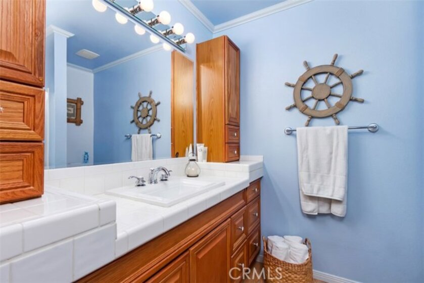 Looking for a great single story, golf course, remolded and move in ready home? Well, this is it! Situated in Indian Hills in a golf course community on a green belt, is a wonderfully maintained home with a newly remodeled kitchen to include rich colored cabinets with raised panel doors, texture pattern granite counter tops with matching backsplash, brick laid tumbled stone backsplash, upgraded and matching stainless steel appliances, a goose neck faucet and wide plank wood design tile flooring. The main living space boasts all tile flooring, a step down family room, crown molding throughout and dual sliding doors to your private patio on a green belt. Your guests will enjoy the newly remodeled secondary bathroom which includes raised panel white cabinets, tri-fold out mirrored vanity & the same beautiful crown molding and tile floors from the living space for proper flow throughout the home. The master bedroom does not disappoint with an oversized space, mirrored closet doors and matching crown molding. The private front garden is perfectly shaded and planted with artificial turf and a tranquil corner water fountain. The rear patio is just as tranquil with a raised planter bed and Alumawood patio cover. All of this PLUS newer dual pane windows, peek a boo golf course view, ceiling fans throughout and a 1 year new water line re-piping throughout the home. The community includes multiple golf courses, sit down dining, quick service dinning, movie theater & metro link station.