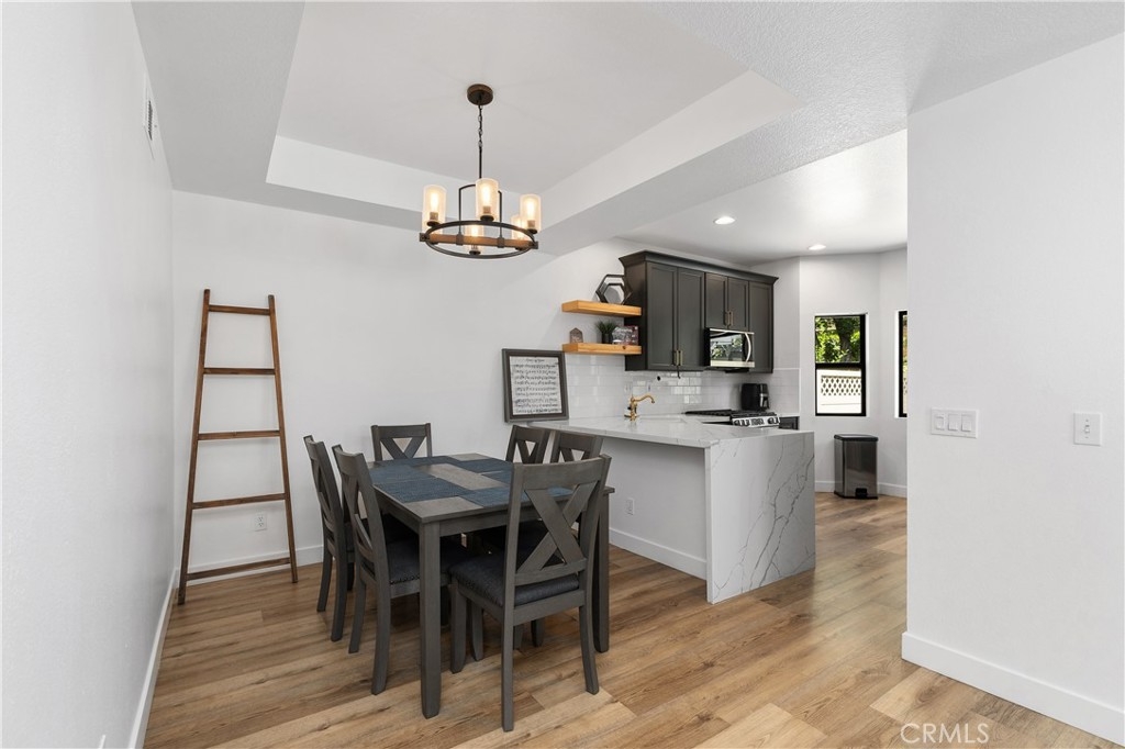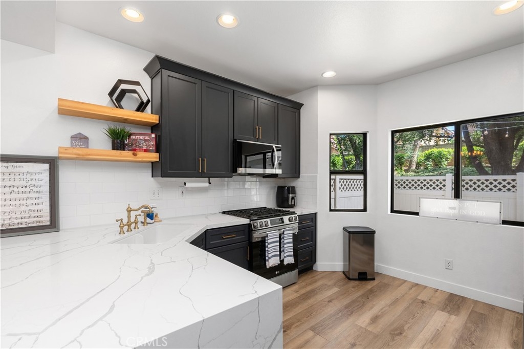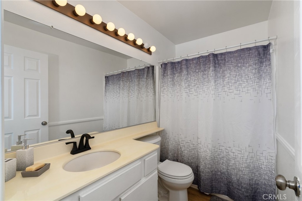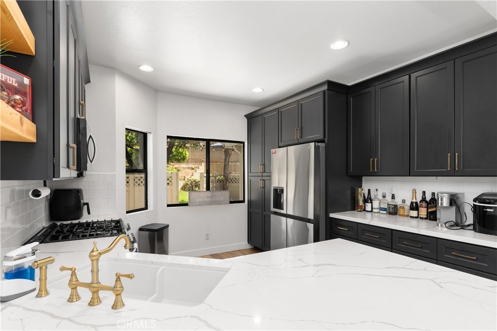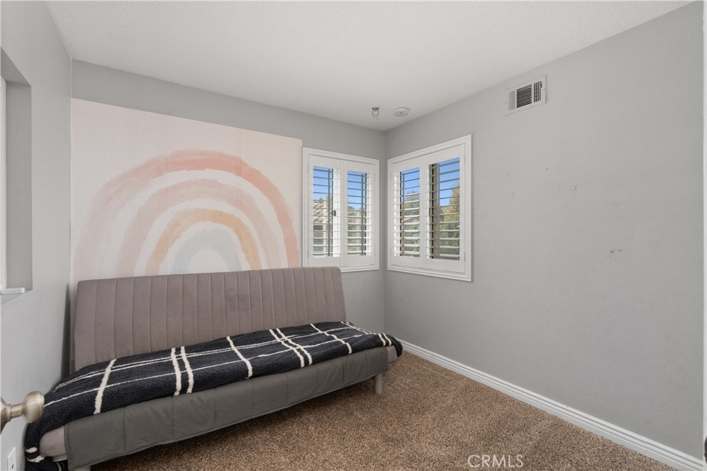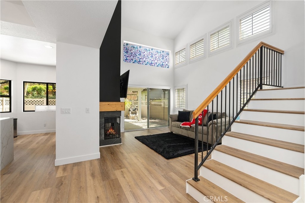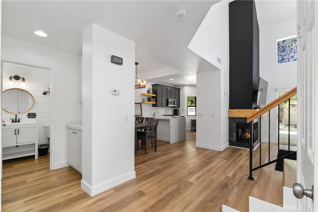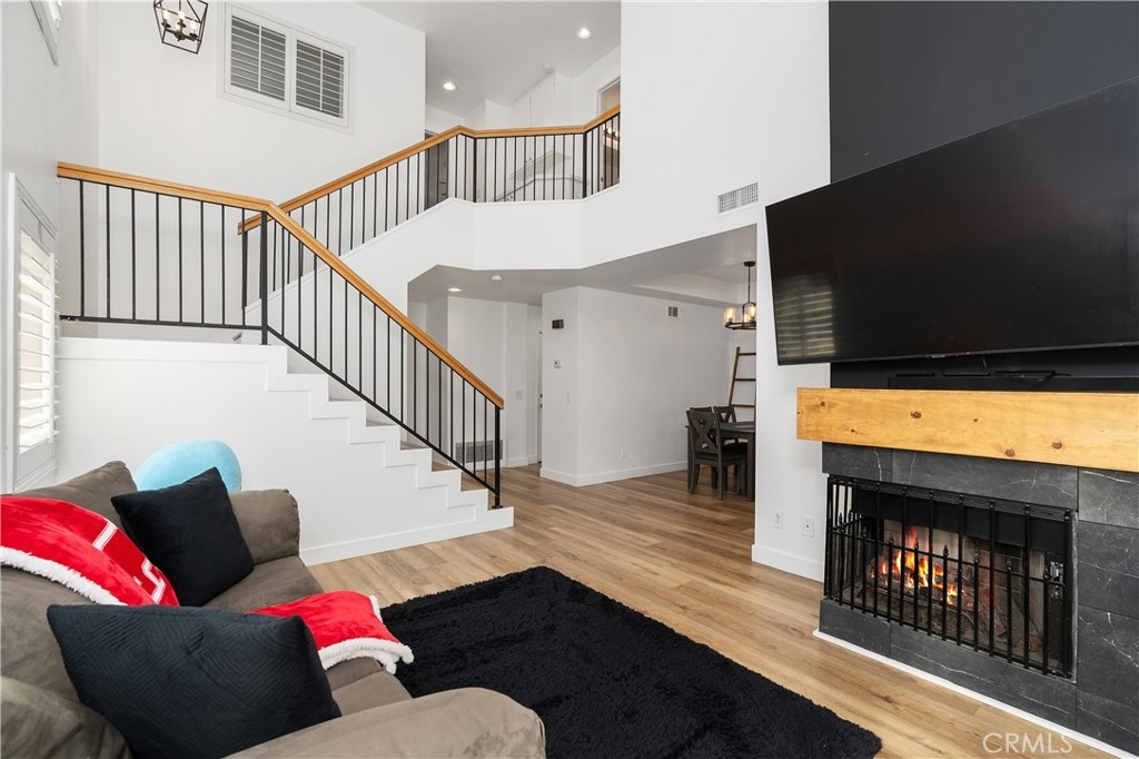Beautifully upgraded 2 bedroom 2.5 bathroom home in The Four Season Villas. As you walk in you will appreciate the nice vinyl plank flooring, recently painted walls and ceilings. This home has lots of windows to let in the natural light and with the high ceilings the space seems bigger than it is. There is a beautiful gas burning fireplace that is the focal point of the living room. The ample dining area is open to the kitchen which was recently remodeled and features beautifully upgraded dark cabinets, white quartz counter tops with waterfall edge and upgraded stainless steel appliances. There is also a powder room downstairs. Upstairs there is a bonus room that can be used as a third bedroom or home office, a common bathroom in the hallway a secondary bedroom and finally the large master bedroom which features a walk in closet and large master bathroom. The garage has epoxy floor covering, storage cabinets and overhead storage. There is also a nice and private rear patio with an alumna-wood patio cover and there is direct access to a large greenbelt that you can use as an extension of your patio or back yard. Plus the community has two swimming pools, spa and pet friendly green areas. Come see this beautiful property before it is too late.