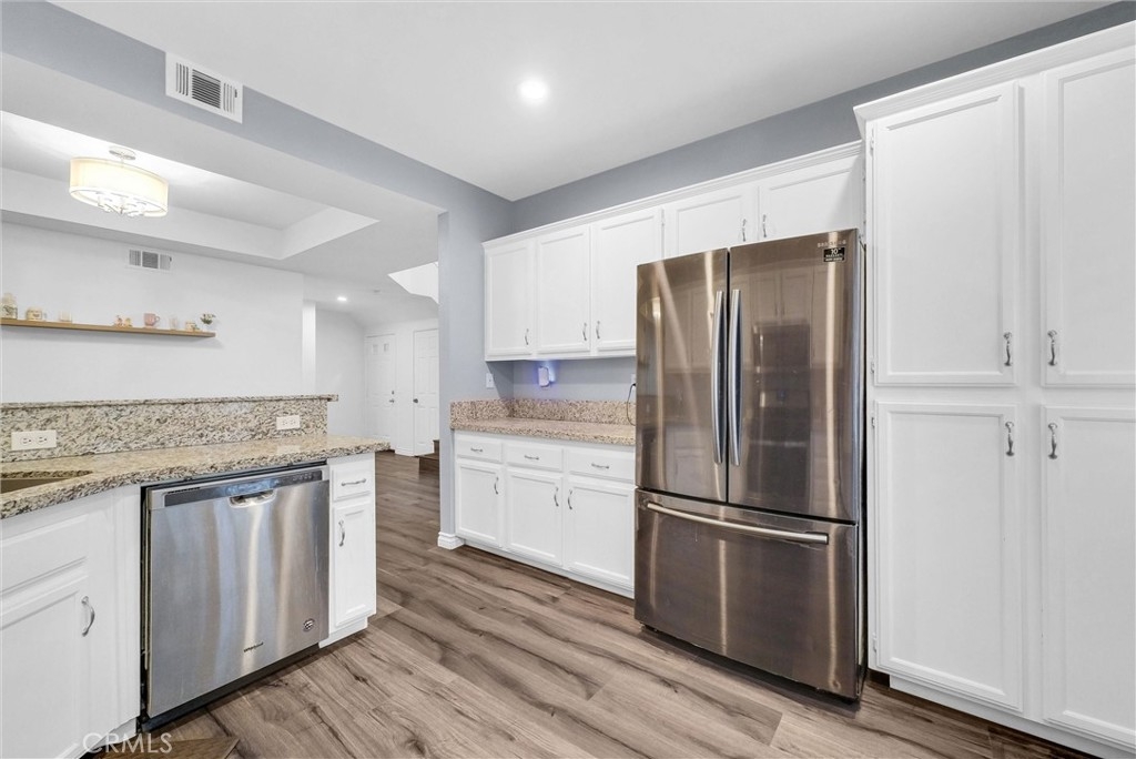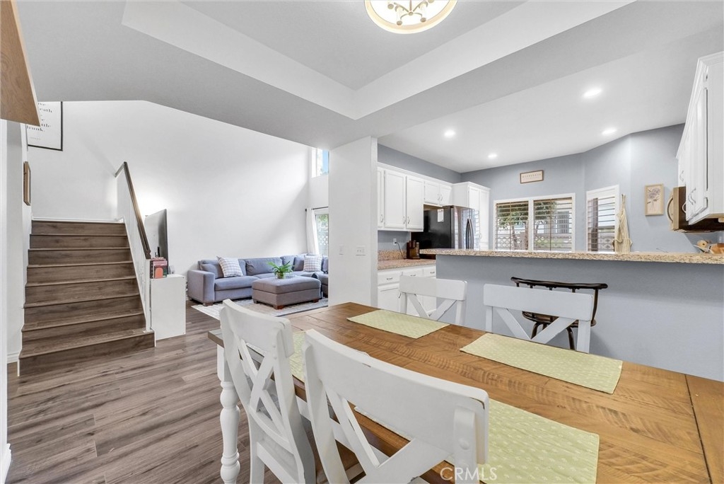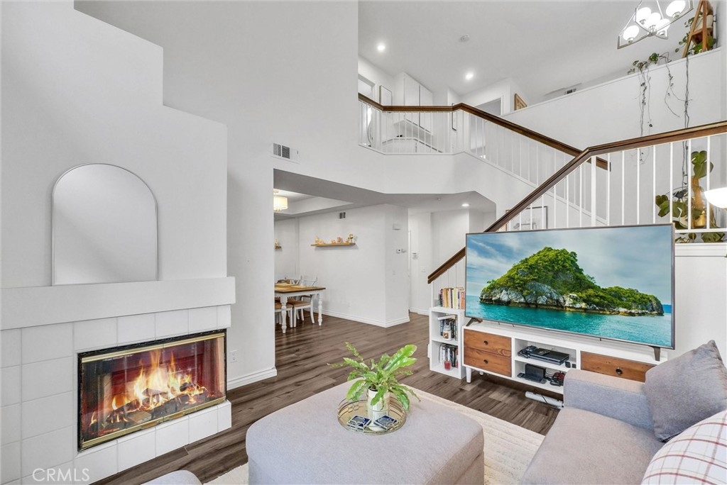 This 2-bedroom, 2.5-bath condo is located in the beautiful Four Seasons Villas community, where Riverside meets Corona! Featuring an open layout, high ceilings with abundant natural light, and a cozy two-sided fireplace. The kitchen is equipped with granite countertops and ample cabinet space, located just next to the dining area with a mirrored wall. The upper level includes two well-sized bedrooms, a versatile loft suitable for an office, and two full bathrooms. The primary bedroom offers a spacious walk-in closet and an en-suite bathroom, vaulted ceiling and attic access. Plus, enjoy the beautiful sunset view! Additional features include a downstairs half bath and an attached two-car garage with laundry hookups and built-in storage. The community offers well-maintained greenbelts, walking paths, and two pool and spa areas. Evening security patrols enhance peace of mind. Conveniently located near schools, shopping such as costco & walmart. With easy access to the 91 and 15 freeways, this home provides a practical and comfortable lifestyle. Welcome home!