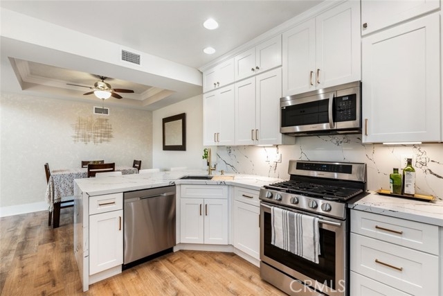 Welcome to 3719 Via Tortola! This townhouse is located in the beautiful Four Seasons Villas community where you will enjoy a pool, spa and clubhouse for your summer gatherings. Aside from enjoying the outdoors this home has so much to offer for a starter home. This townhome is situated on the corner lot so you only share one wall and you have more privacy. As you enter the front door you will notice the newly remodeled kitchen with Quartz counters along with all the stainless steel appliances. There’s a breakfast bar/area to sit and enjoy your meals along with a dining area. The kitchen is equipped with plenty of storage for all your pots and supplies. Then you will notice the high ceilings that open up the family room along with a gas fireplace and then leading you to the outside private patio. Enough space to enjoy a barbecue with friends and family. There's also a half bathroom conveniently located downstairs. As you walk upstairs you will notice the laminate flooring throughout the entire home so it is easier to maintain with kids and pets. Upstairs you will find an open loft area that could easily turn into a third bedroom or just use as office space. The primary bedroom has a walk in closet and it’s own private bathroom. The primary bathroom has double sinks with newer faucets, light fixture and toilet. The secondary bedroom is spacious and also has plenty of closet space. The hallway bathroom was also recently remodeled with new vanity, light fixture and new toilet. This home features new windows throughout the home, new HVAC duct system, newer roof, new garage motor, newer furnace, storage racks, electric car charger and much more! This community is located close to shopping centers, schools and easy access to freeways. So don't miss out on this great opportunity to make this your HOME!