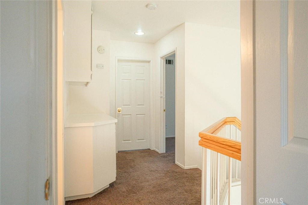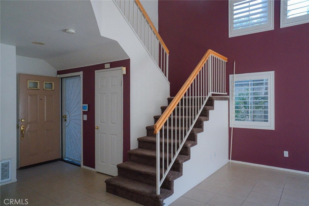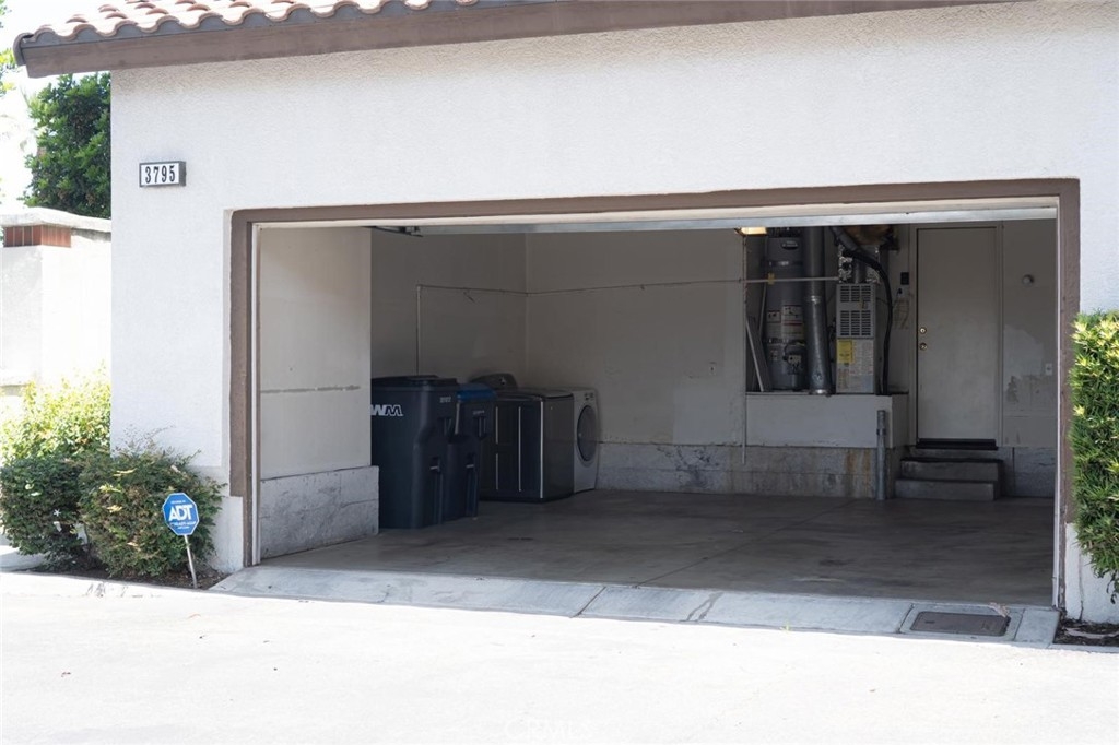 Charming Two-Story Condo Home with Modern Comforts and Timeless Style. Welcome to this beautifully maintained two-story home featuring an attached two-car garage, nestled in a desirable section of Riverside. A tastefully designed concrete entryway with trimmed edging leads you to the inviting front door. Downstairs Living Spaces:Step into a spacious living room with elegant tile flooring, soaring ceilings, and abundant natural light. Plantation shutters add privacy and charm to the windows and sliding glass door, which opens to a private backyard patio—perfect for relaxing or entertaining. Cozy up by the gas fireplace during cooler evenings. Central heat and air also contribute to the control of the indoor climate. A convenient coat closet is also located near the entry. Dining Area & Kitchen: A graceful chandelier adds warmth and style to the dining area, which flows seamlessly into the kitchen. The kitchen boasts classic subway tile countertops with a warm maple stain on the cabinetry, black appliances, and large 14x14 tile flooring. Shuttered windows above the sink complete the look with natural light and privacy. Guest Bathroom & Garage: A convenient half bath is located off the foyer, along with a built-in storage cupboard above and below. The finished two-car garage includes washer and dryer hookups, an automatic garage door opener (perfect for rainy days or late-night arrivals). Upstairs Retreat: Upstairs, you’ll find both bedrooms, an additional room. This room is ideal for a gym or an home office. Additional storage in the upper foyer area for bed linen and bath towels. Primary Bedroom Suite: Features plush carpeting, shuttered windows, a spacious walk-in closet, and an en-suite bathroom—your own private retreat. Bedroom 2: Bright and airy with ample closet space, carpeting, and plantation shutters. Additional Highlights: Central heating and air conditioning, Stylish shutters throughout. Move-in ready condition. Functional layout with plenty of storage. Don’t miss this opportunity to own a well-designed home that offers both comfort and style—perfect for families, professionals, or anyone seeking a peaceful place to call home.