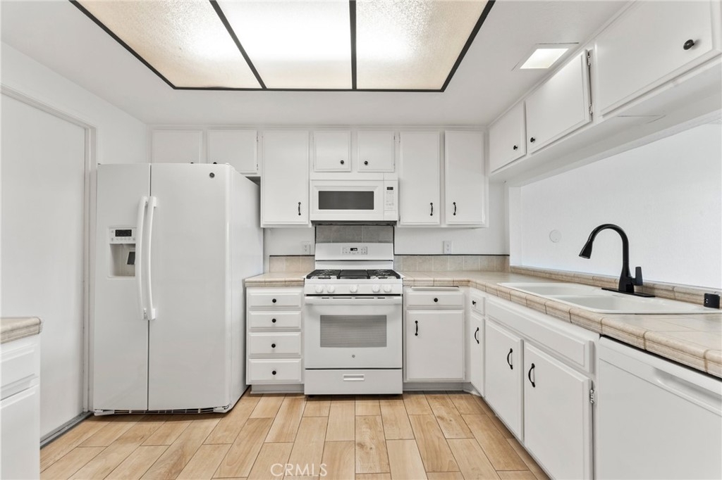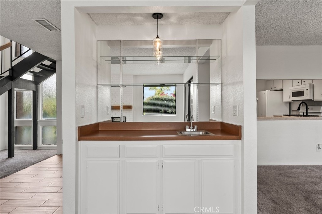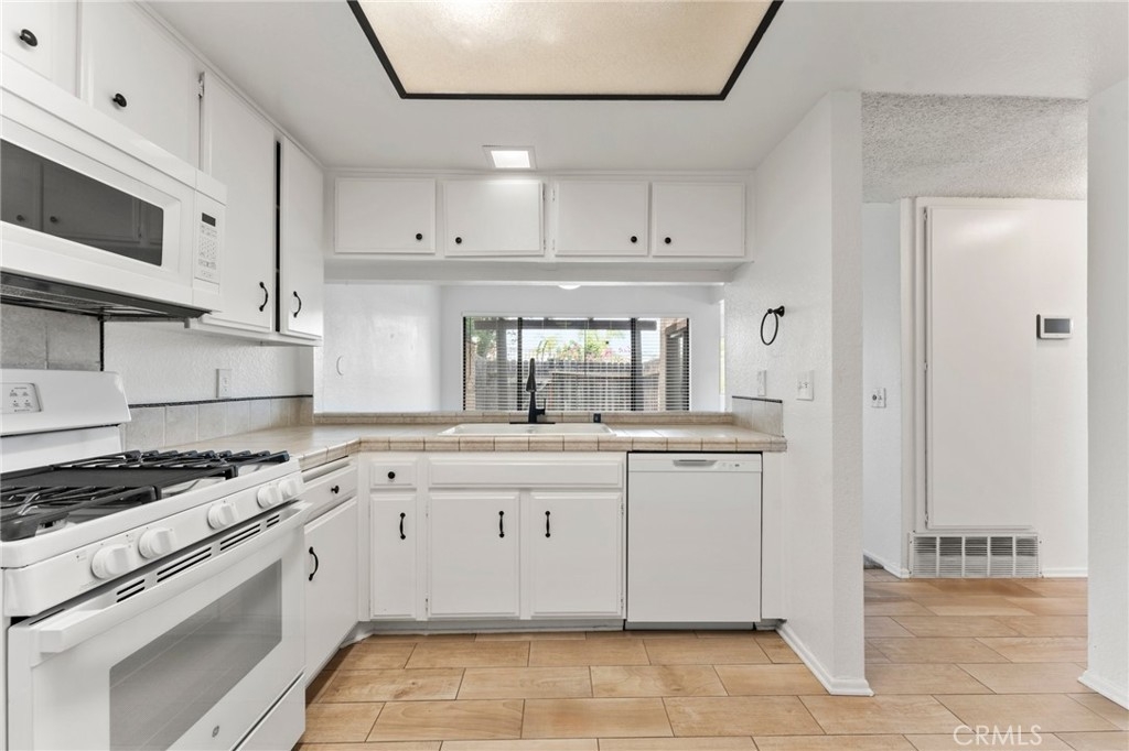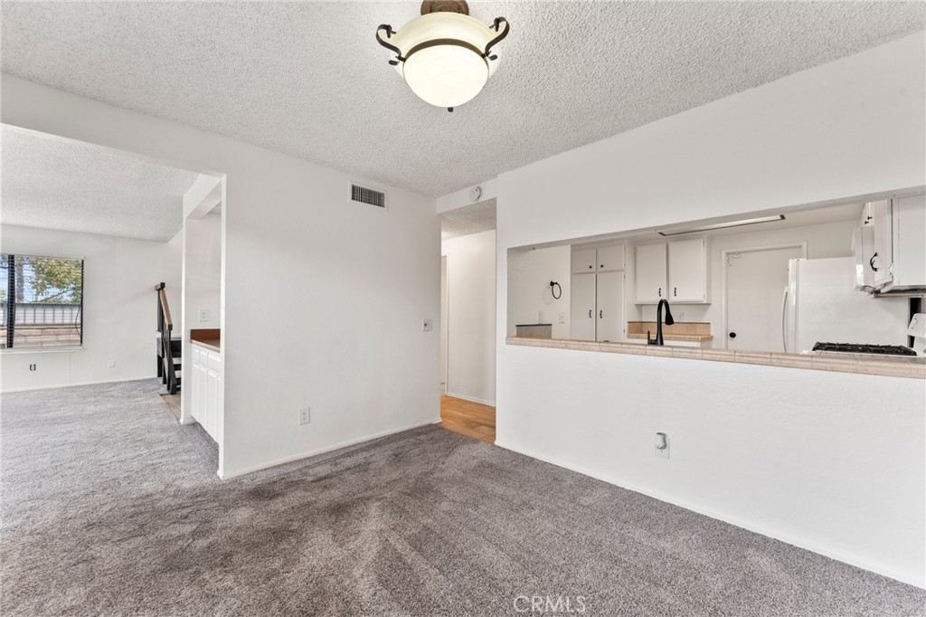 Beautiful three bedroom, two and a half bath two story condo with attached garage in Canyon Crest/Alessandro Heights area. Completely rehabbed interior in the past year. Lower level includes living room with gas fireplace, wet bar and slider to private patio area. Kitchen has new dishwasher and gas stove (installed within the last year), dining room and powder room bath. Upstairs you find 2 bedrooms with closet organizers, a hall bath with tub/shower combination, a huge primary suite with walk-in closet, vaulted ceilings with wood beams and view. Primary bathroom has tub/shower combination, double vanity and separate water closet. The attached two car garage has a new garage door opener. Property features new HVAC, new water heater, new toilets, newer wood look tile flooring and carpeting (in the last year) and new faux wood blinds throughout. Interior has been recently painted. Newer tile and faucets in kitchen and two baths along with new gas FP insert and mantle. End unit on cul-de-sac with green belt area in front, side and back.