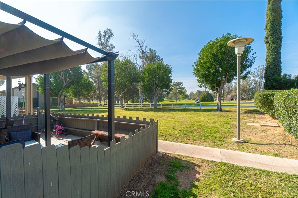 Luxury views at an affordable price! Welcome to Jurupa Hills Club Villas newest listing with rare views of the 10th hole green from your back patio. This 2 bedroom condo boasts numerous upgrades including new interior paint, new tile flooring throughout the first floor and brand new recessed lighting. Maintain the brightness indoors with the new plantation shutters recently installed in the living and dining room. The kitchen was recently updated with new paint, appliances, countertops, and new cabinet hardware. Enjoy your backyard views even more with the new pergola shade cover as well as new brick paving. A detached carport with two designated spots plus a plentiful storage area make parking super convenient. Close to the 215 and 15 freeways, shopping, and entertainment