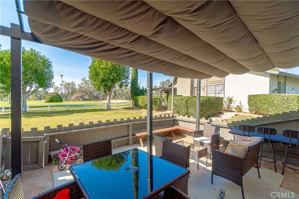 Luxury views at an affordable price! Welcome to Jurupa Hills Club Villas newest listing with rare views of the 10th hole green from your back patio. This 2 bedroom condo boasts numerous upgrades including new interior paint, new tile flooring throughout the first floor and brand new recessed lighting. Maintain the brightness indoors with the new plantation shutters recently installed in the living and dining room. The kitchen was recently updated with new paint, appliances, countertops, and new cabinet hardware. Enjoy your backyard views even more with the new pergola shade cover as well as new brick paving. A detached carport with two designated spots plus a plentiful storage area make parking super convenient. Close to the 215 and 15 freeways, shopping, and entertainment