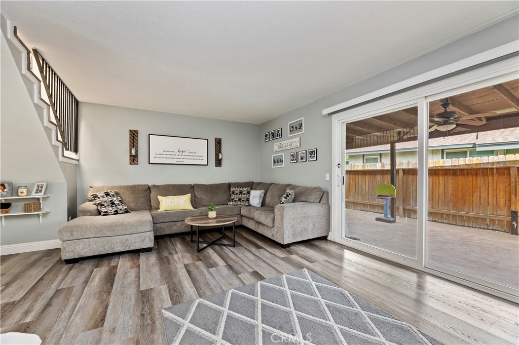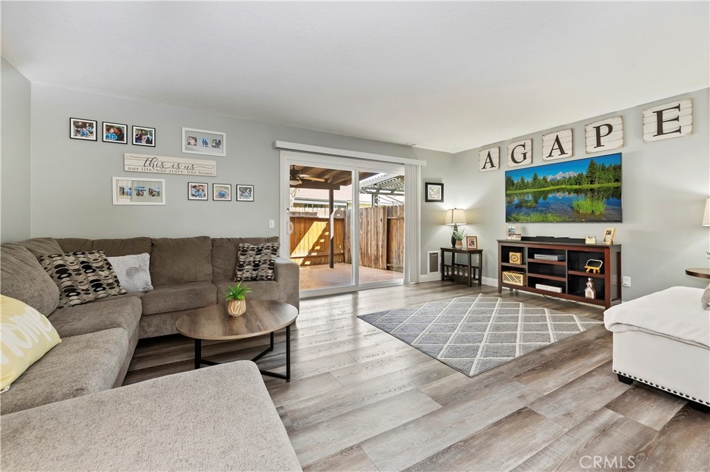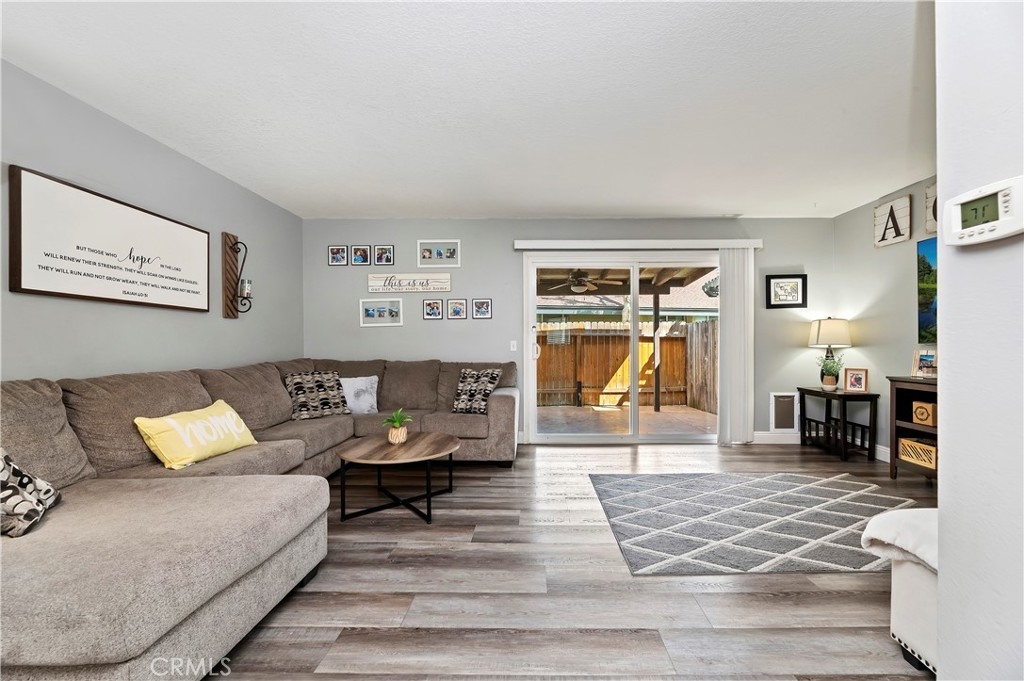 Welcome to this stunning condo located at the Jurupa Hill Country Club. As you enter you'll be greeted by a spacious living room with high ceilings, updated hardwood floors, recently painted walls, and large dual pane windows that allows for lots of natural light. The living room leads seamlessly into the dining area and kitchen, making it easy to entertain guests or spend quality time with family. The recently updated kitchen features new cabinets, quartz countertops, stainless steel appliances, and plenty of storage space. The bedrooms are spacious and feature plush carpets and large windows, offering a cozy and comfortable space. The exterior of the property has been recently painted and features a well-maintained lawn, and a paved walkway leading to the home. The backyard is also spacious, with a covered patio offering room for outdoor activities and entertaining. Parking includes 2 covered spaces as well as guest parking. Community amenities include swimming pool, tennis courts, golf course access, BBQ area, and a guard gate with security patrol. Located near downtown Riverside with shopping, restaurants, and entertainment venues. Easy access to the 60, 91, and 215 freeway. Schedule your showing today!