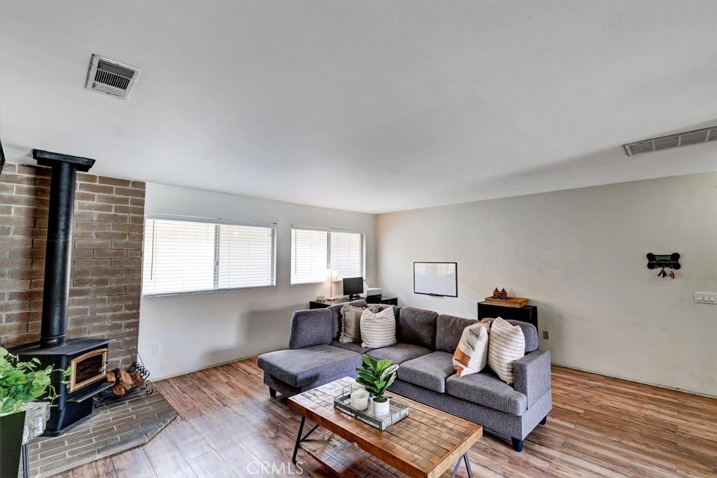 Charming, upper 1 bedroom/1 bath corner unit in the desirable Canyon Crest area of Riverside. This spacious condominium offers a bright, open living/dining area, wood burning fireplace, laminate flooring and a sliding door to a private balcony. The kitchen has newly painted wood cabinets with new hardware, new light fixture, range, dishwasher, microwave and refrigerator. It has central air conditioning/heating with smart WIFI thermostat, storage closet/cabinets, and 1 assigned carport parking space. The spacious master bedroom looks out to a large vanity area with double sinks plus makeup area, huge mirrored closets and the private bathroom. The condo is an upper corner unit with only one shared wall with no one below you. The HOA offers a private, heated pool, clubhouse, new plumbing throughout building and new exterior paint scheduled for October. Close to Canyon Crest Country Club, downtown, shopping, restaurants, UCR, parks and much more. Hurry on this one, you won’t want to miss it!