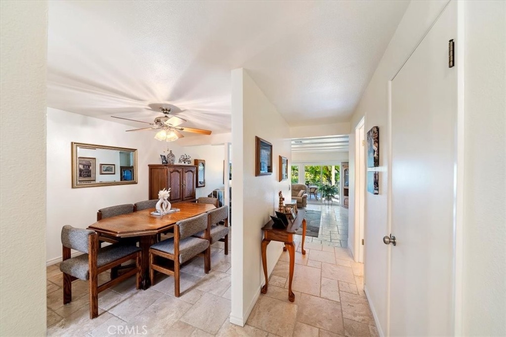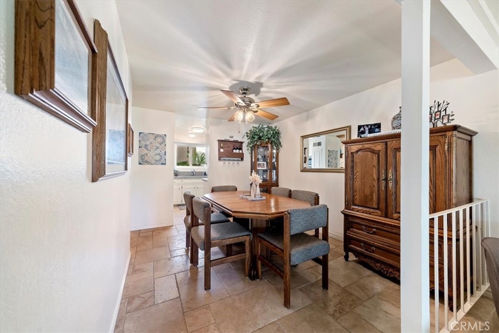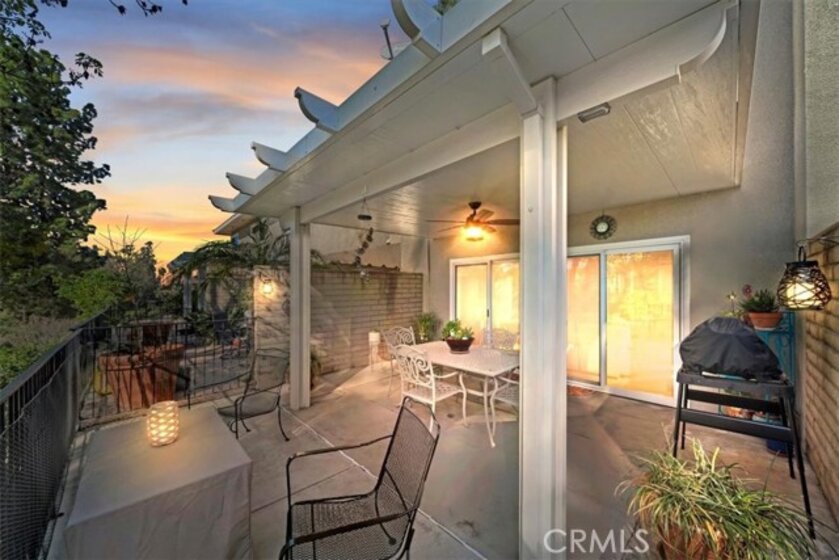 Nestled in the desirable Canyon Crest neighborhood, the Las Mesas Condominiums offers timeless charm with thoughtful modern updates, and this beautifully maintained unit truly stands out. From the moment you enter, pride of ownership is evident. The open and inviting floor plan draws your eye through to serene views of the 6th fairway of Canyon Crest Golf Course. The picturesque outlook creates a peaceful setting and enhances the spacious patio, perfect for relaxing or entertaining. Las Mesas has undergone extensive community-wide improvements, including updated plumbing, recently refreshed exterior paint, and meticulously maintained landscaping that creates a welcoming, resort-like atmosphere. HOA dues conveniently include water, trash, sewer, and landscaping. Inside, numerous upgrades add comfort, efficiency, and style. The kitchen features granite countertops, stainless steel appliances, upgraded cabinetry, and travertine flooring throughout the main living areas. Additional enhancements include dual-pane windows, attic insulation, insulated shared walls for sound reduction, a newer HVAC system, an updated patio cover, and a new front entry door with security screen. Both bathrooms have been tastefully remodeled with granite countertops. The upstairs bath offers a beautifully travertine-tiled walk-in shower and flooring, plus an additional shower head above the tub with matching travertine surround. The primary bedroom includes a remodeled closet for improved storage and functionality. The property also offers two covered parking spaces and a private storage area, adding valuable convenience. Combining classic community charm, extensive modern upgrades, and a premium golf course view, this home offers comfort, style, and an exceptional lifestyle. Come see it for yourself.