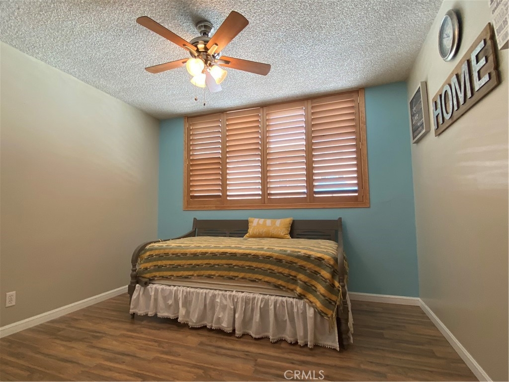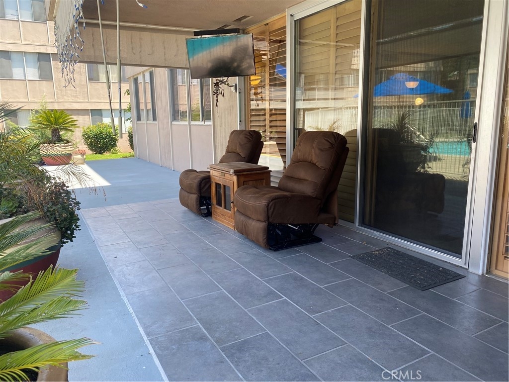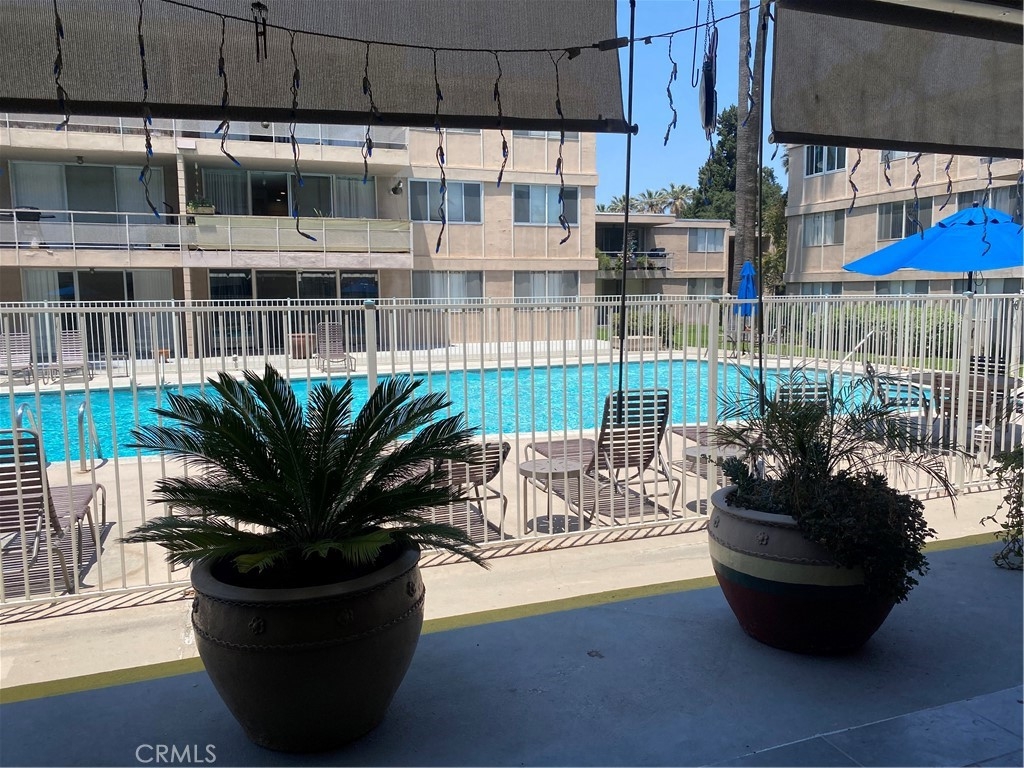 Cozy Upgraded Condo!! This 3 bedroom 2 bathroom home is perfect for a small family. With a pool right off your patio this home has lots of amenities including dual pane windows and slider with custom shutters throughout, crown moulding, remodeled kitchen with corian counters, all appliances including dishwasher, refrigerator, microwave, cooktop, oven, washer and dryer, tile and woodlike vinyl flooring throughout, his and her master closets with mirrored sliding doors, ceiling fans, garage parking, gated entry and conveniently located in magnolia center.