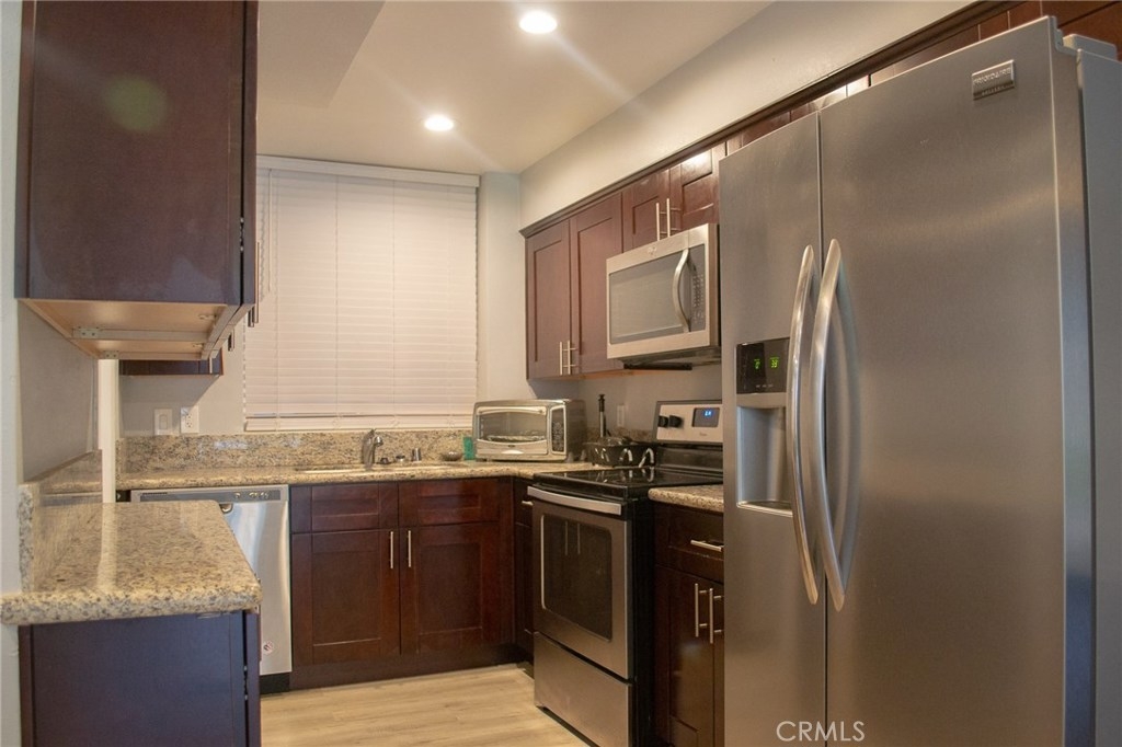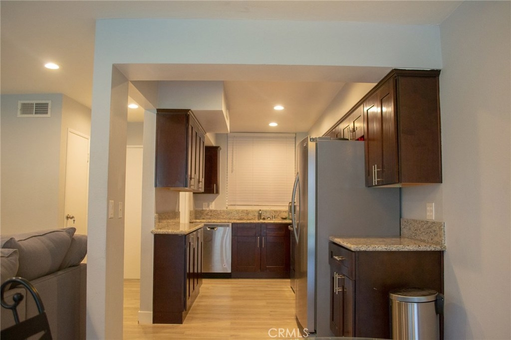 Welcome to Magnolia Palms in Riverside. This Property features lots of newer upgrades including, newer granite countertops in the kitchen and bathrooms, newer dual pane vinyl windows, newer wood-look laminate floors, newer cabinets, upgraded appliances, newer faucets and knobs, upgraded bathrooms, newer A/C and recessed lighting. The main living area is very bright and airy, with lots of light from the large windows. Very modern and turnkey. Perfect for a first time home buyer. Don't throw your money away renting. Community association includes Pool, Spa, water, trash and parking. Very close to shopping and also has good freeway access. Schedule an appointment today!