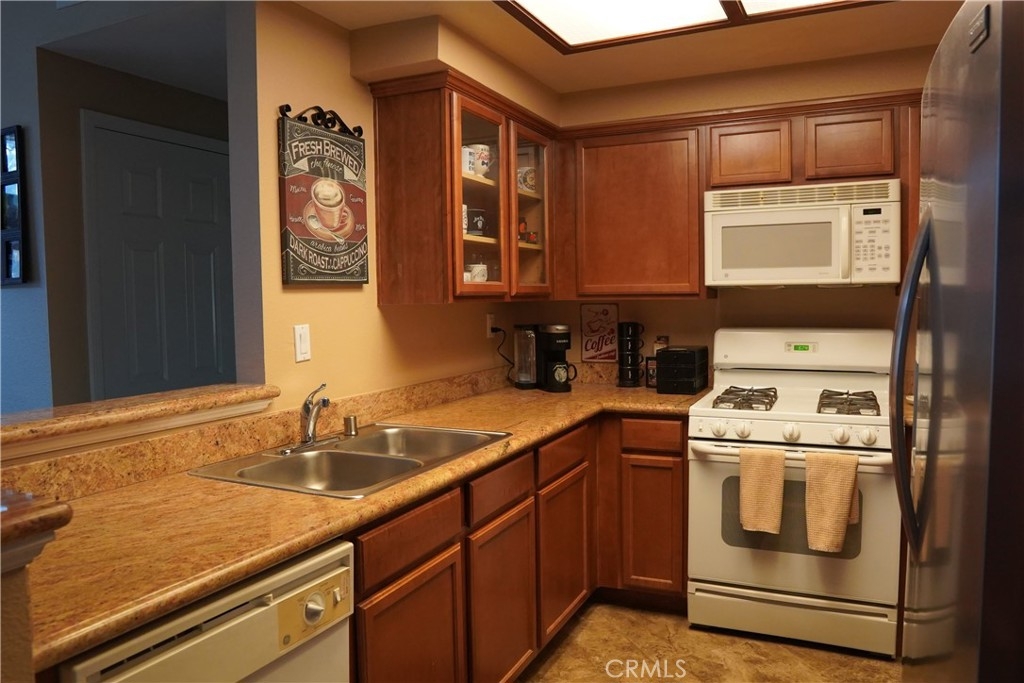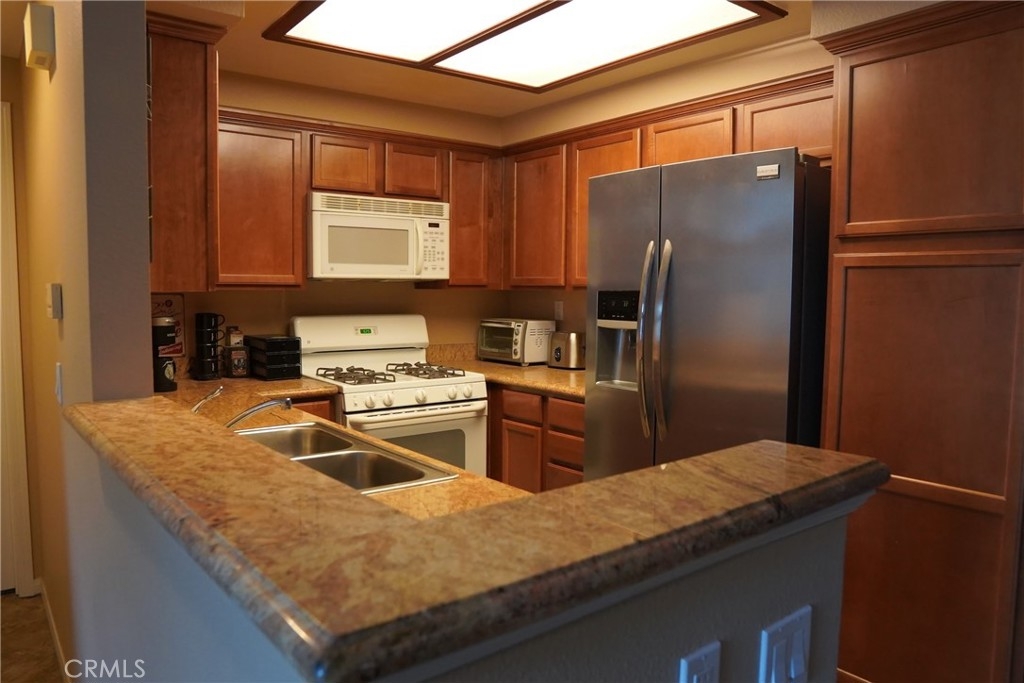Come see this beautiful condo in the well maintained gated community of Mission Villas. This unit is one of the most desirable in the community as it has no upstairs unit. This condo features two primary bedrooms with ensuite bathrooms, tile floors, granite counter tops, vaulted ceilings and three private patios. This complex is complete with a community pool, spa, an onsite laundry facility, fitness center and BBQ sites. Excellent location, just minutes away from shopping, restaurants, gyms and entertainment at the Mission Grove Shopping Center.
