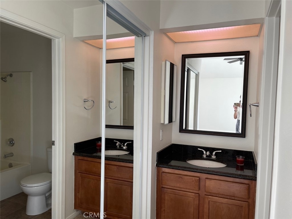 Enter the Mission Villas gated community! You will love this recently remodeled upper level unit complete with 1 Master bedroom with its own private bathroom and patio, 1 interior bedroom with window, common area with kitchen, bathroom and common patio! The unit has brand new carpet, kitchen and bathrooms are tiled. Recently freshly painted. The complex is complete with a community pool and spa, and on site laundry facility. With a perfect location across the street from the Mission Grove shopping center, this unit is perfectly suited for your needs. The Mission Grove shopping center include major grocery chains, a movie theater, restaurants, banking, urgent care, UPS store, animal care, gas, car wash, CVS, LA Fitness and more!