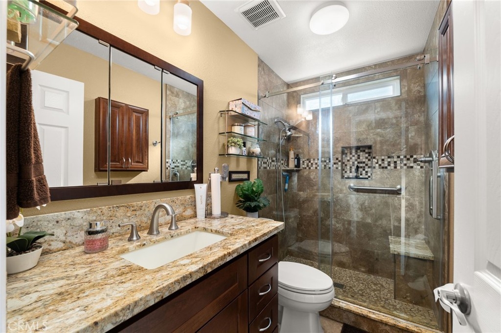 STUNNINGLY REMODELED 4BD/2BA + LOFT IN RIVERSIDE! Experience modern luxury in this meticulously upgraded home featuring high vaulted ceilings, exposed wood beams, fireplace and elegant plantation shutters throughout. The fully remodeled chef’s kitchen is a showstopper with premium granite countertops, designer cabinetry, and a high-end stainless steel appliance suite. The primary suite boasts a spa-like master bathroom highlighted by a massive walk-in shower with dramatic book-matched stone slabs and a rainfall showerhead. Relax by the living room fireplace or head upstairs to the 4th bedroom and expansive loft, the perfect "flex space" for a home office or media room. Beautiful new flooring flows to the private covered patio, ideal for year-round entertaining. This turnkey gem offers sophisticated design and an open-concept layout in a prime 92505 location. Move-in ready—schedule your tour today!
