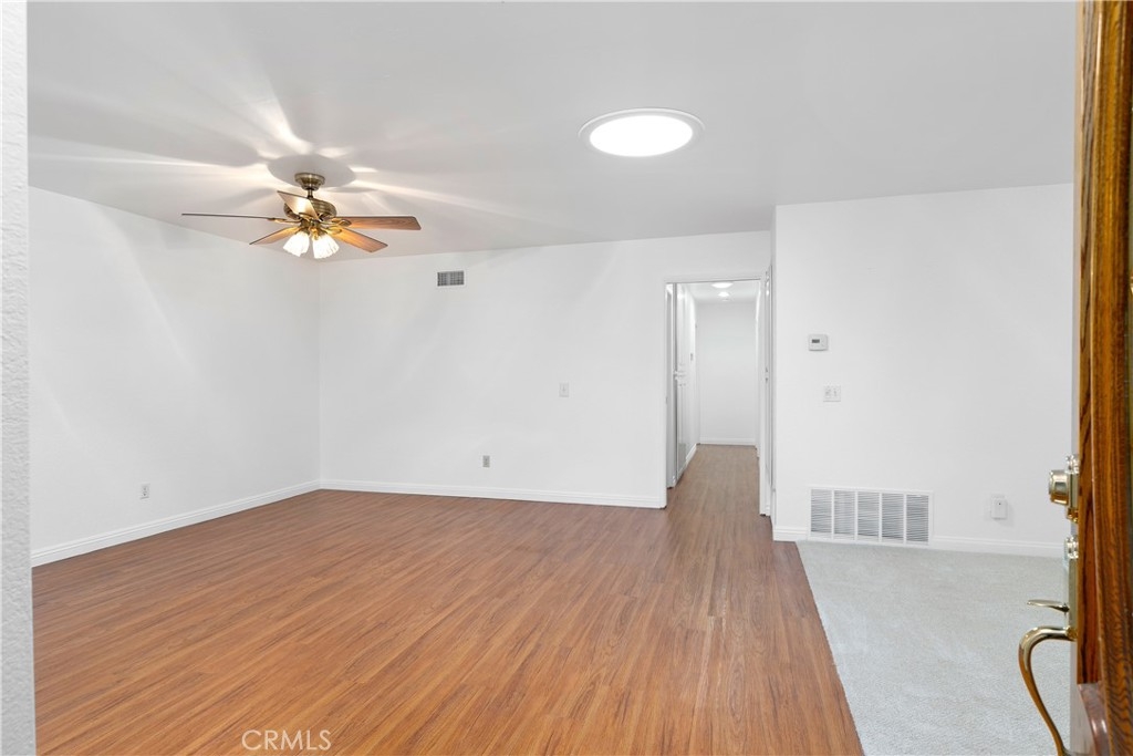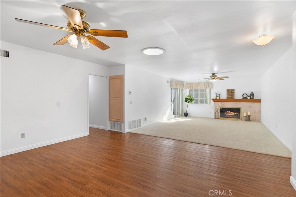 You will love this Single Story Condominium located in the Riverside Palm Terrace Community. Take advantage of the amazing California weather while you sit and relax in the privacy of the enclosed front courtyard with brick pavers and planters. As you enter the home through a stunning leaded glass door beautiful laminate plank floors guide you into an Open Floor Plan. The living room is bright and airy with a tiled fireplace as a focal point. The kitchen features wood cabinetry, Corian countertops and a breakfast bar which opens up to the large dining area. The home displays a comfortable living space with the well designed floor plan, ideal for entertaining. The spacious primary bedroom has an en-suite bath with a step in shower and ample closet space. Other features include two additional bedrooms, a secondary bathroom with a tub/shower combo, and ceiling fans. Highlights of this home are fresh interior paint, newer carpet and upgraded baseboards, sliding glass doors that lead to a side patio and a two-car attached garage with a Freedom Lift system and a community club house pool and spa. This home is conveniently located near shopping, hospitals, UCR, Downtown Riverside and the Historic Mission Inn.