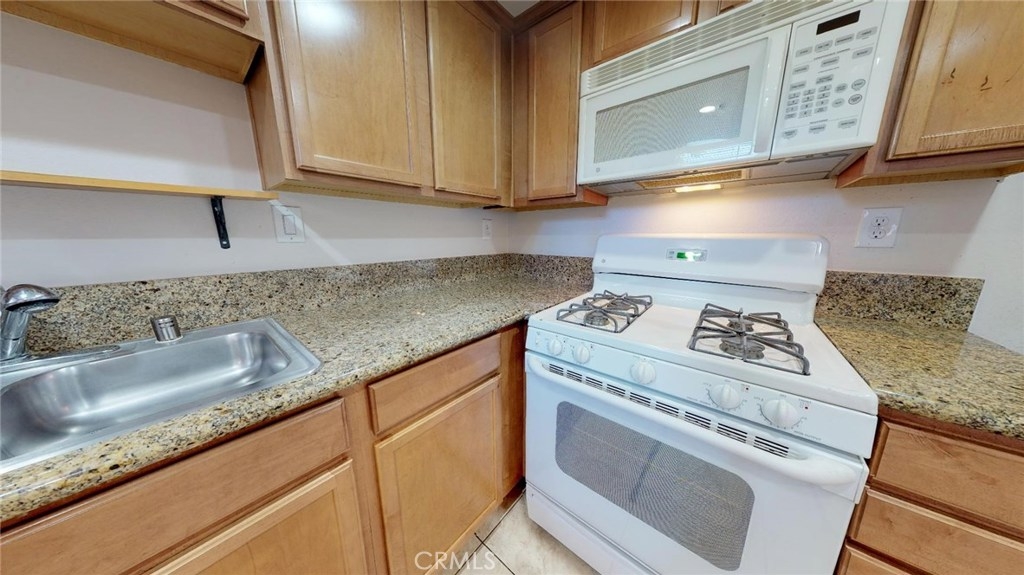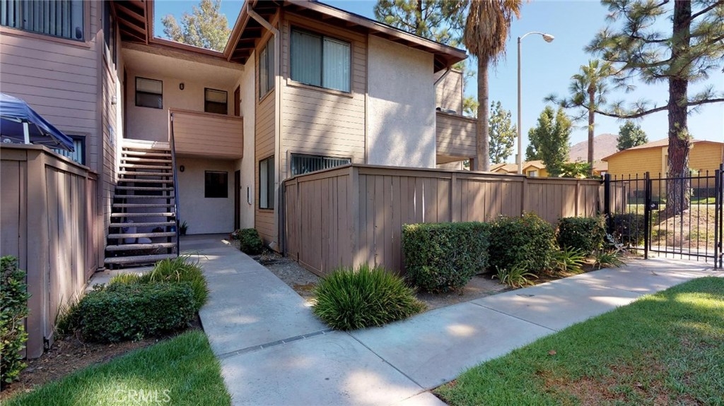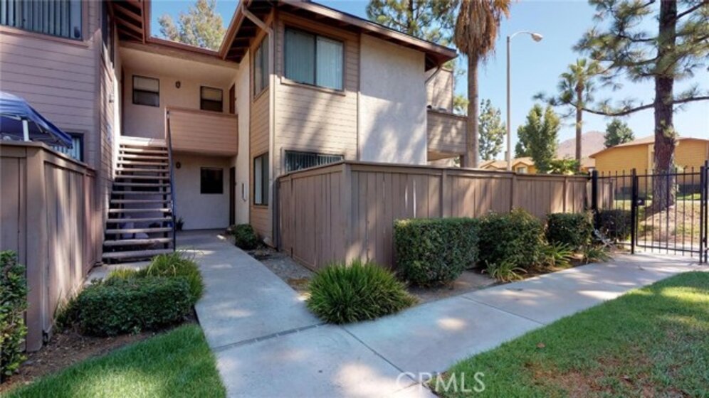 Perfectly located within walking/biking distance to UCR, this cozy but spacious 1bd condo is located in the gated Palmilla community, and it is perfect for a first-time buyer, student housing, or even a great rental property. This DOWNSTAIRS END UNIT includes a private garage and a private gated patio, large enough for pets or small gatherings. This unit features a granite kitchen with newer cabinetry and the refrigerator is included. The large living room is light and bright, with plenty of room for furnishings. The bedroom has a massive wall-length closet and a linen closet as well. And the full bathroom features granite counters and tile flooring. You can reach the spacious private patio from either the living room or the bedroom. Palmilla features a private clubhouse with swimming pool. Shopping, services, public transit, and easy freeway access are nearby.