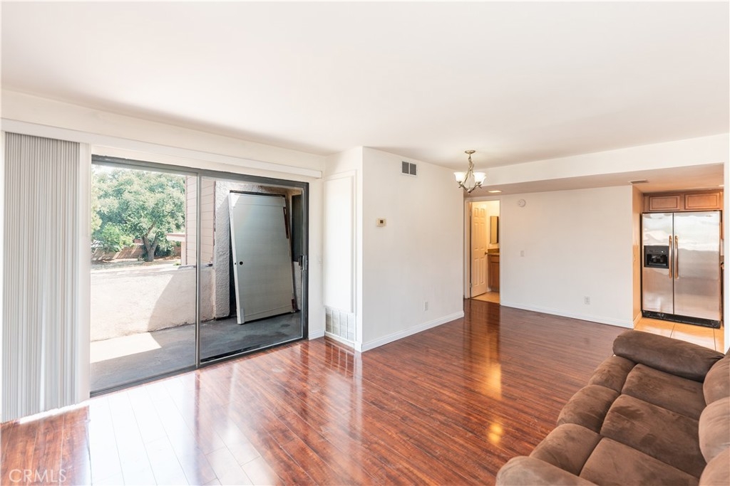 Welcome to this upstairs end-unit 1 bedroom, 1 bath condo in the desirable Palmilla community in Riverside! This gated community offers a pool, spa, BBQ areas, and on-site laundry facilities. It is conveniently located near the 215, 60, and 90 freeways, the Highlander Trolley stop, UC Riverside, as well as nearby grocery stores, restaurants, and more. Inside, a good-sized living room sits at the center of the home, featuring a sliding door that opens to a private balcony. The kitchen includes granite countertops and ample cabinet space. The full bathroom offers a tub, and the bedroom provides a comfortable layout with a closet. The simple yet well-designed floor plan makes great use of the space and provides everything you need.