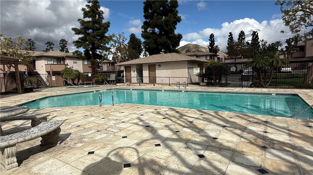 Bright & Spacious 2-Bedroom Condo in Gated Palmilla Community! This unit is an updated upper-end unit offering 2 bedrooms, 2 full baths, and abundant natural light. The property include new interior paint, closet doors, window blinds, and LED recessed lighting. The kitchen features granite countertops and comes equipped with a stove, refrigerator, microwave, and dishwasher. Enjoy the convenience of a private balcony, a detached one-car garage, and an additional permitted parking space. Community amenities include a pool, spa, and water and trash services. Located near UC Riverside, major freeways (215, 91, and 60), shopping, dining, and the Highlander Trolley stop, this home offers both comfort and convenience. Laundry facilities are easily accessible below the unit in the community.
