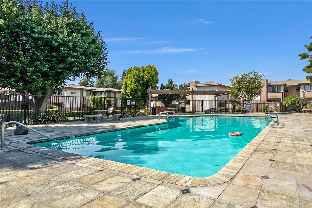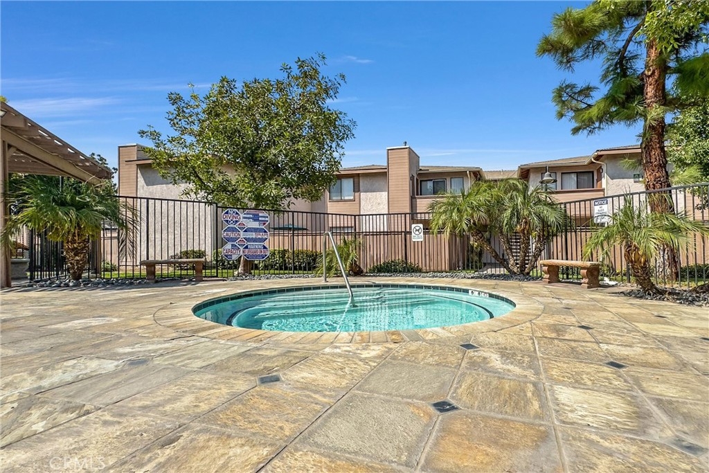 Upstairs unit!! Fresh paint for entire unit, all new laminate floor, all new bathroom and kitchen faucets, all new blinds, all new 4 inches baseboard!!! Super convenience location, walking distance to UCR, next to the grocery store, easy access to the freeway, Highlander Hauler Trolley operated by UCR Transportation & Parking service stops at Iowa Ave, this condo sits in a very highly convenient location. There are two parking spaces, a detached one-car garage, and a parking permit for open space parking. The refrigerator, microwave oven, stove included. The laundry room is located on the first floor, directly beneath the unit. The complex includes a pool, jacuzzi, and BBQ grills. You will love the unit for sure!!