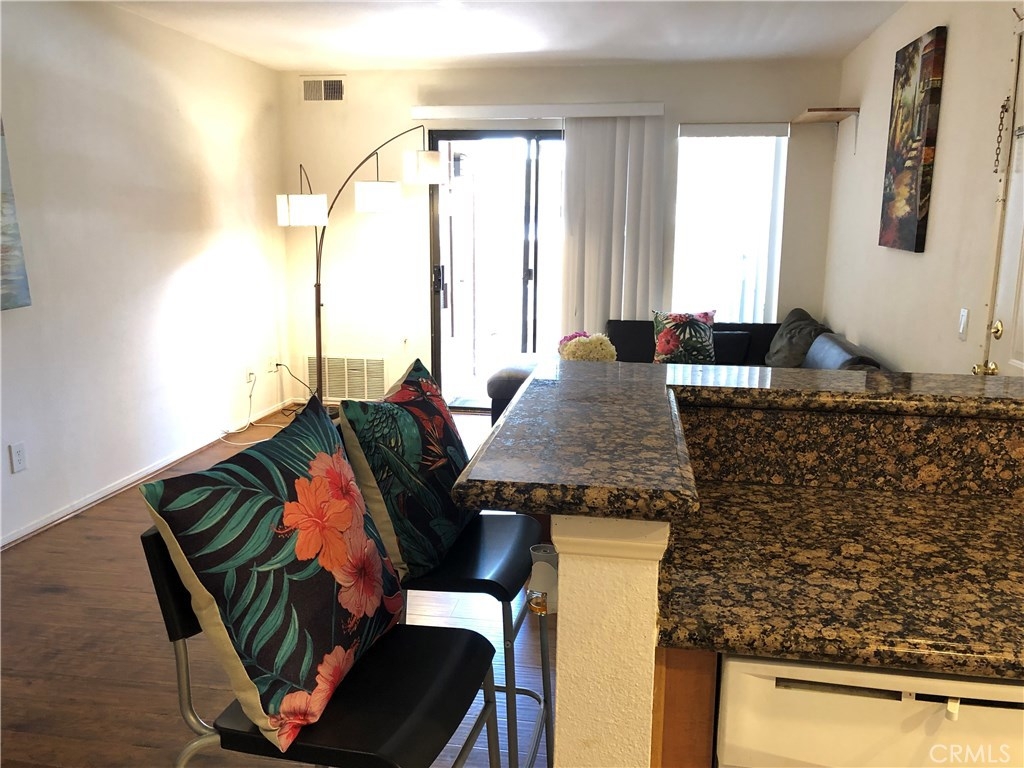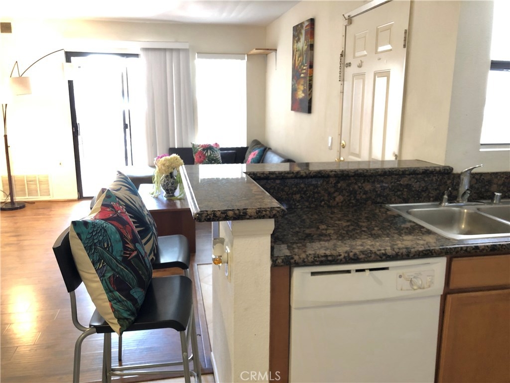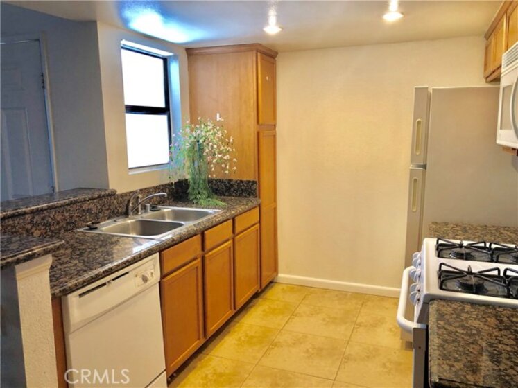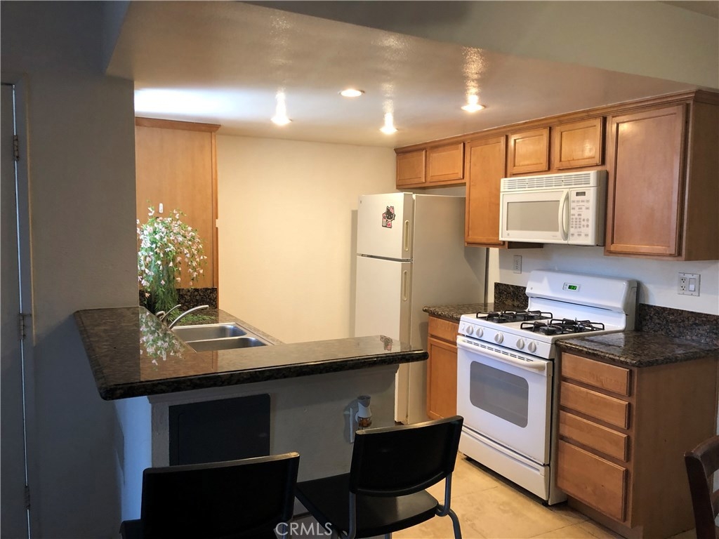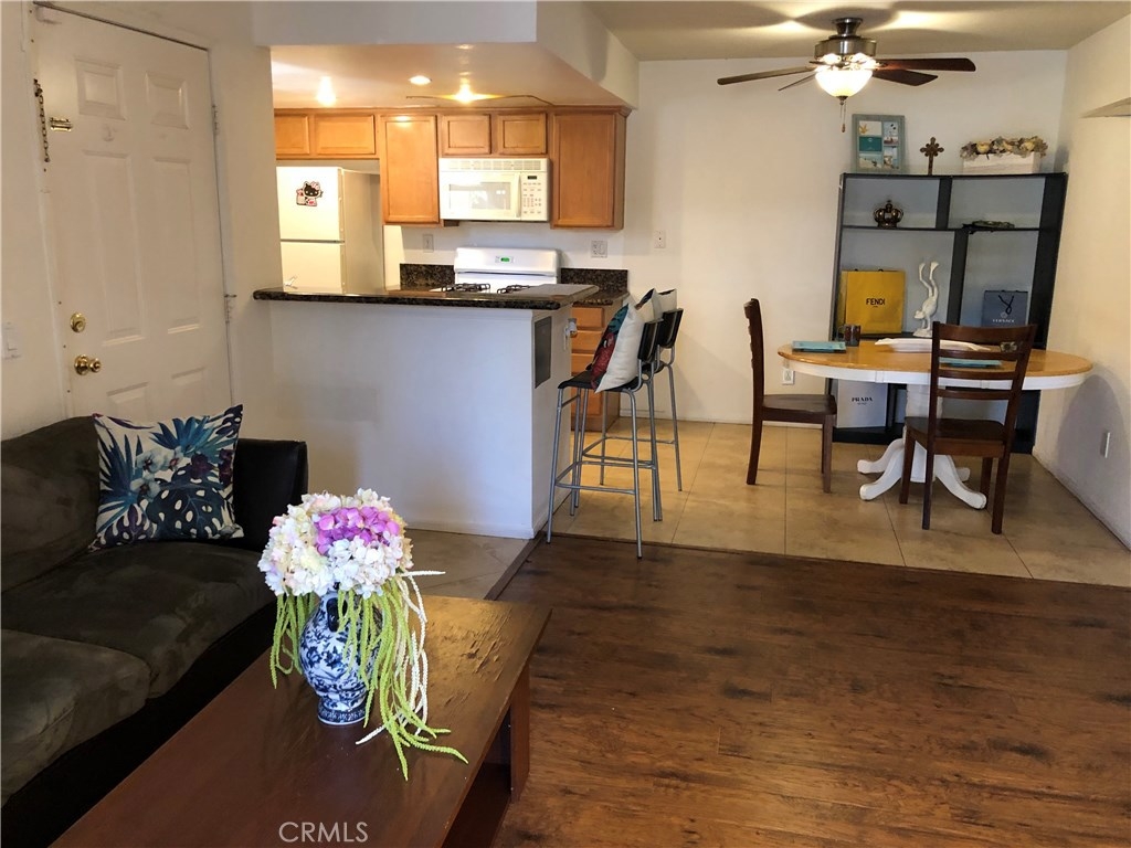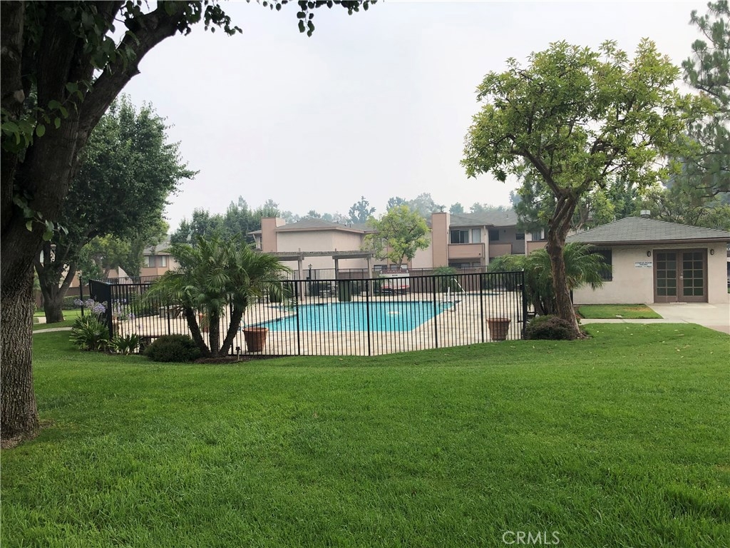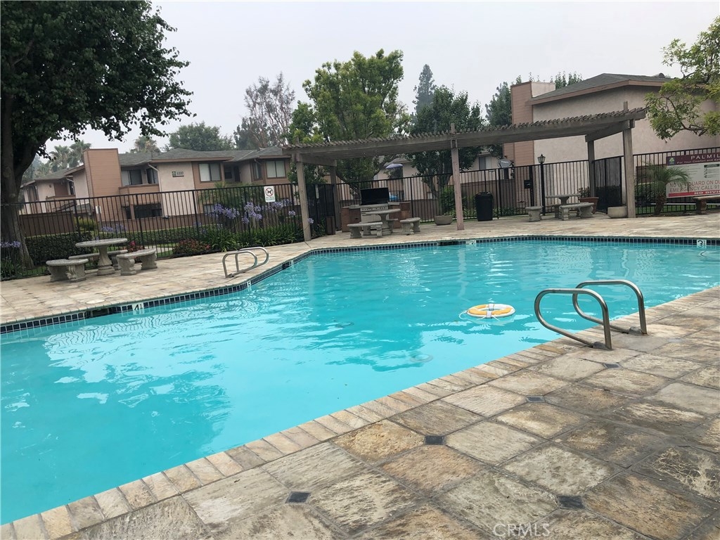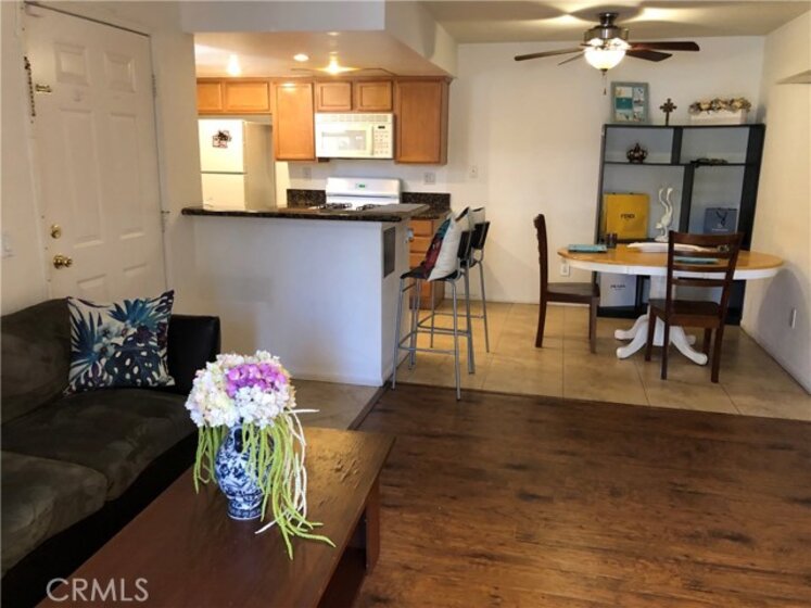 This beautiful first floor condo is in the " Palmilla" complex. Super close to UCR, Farmer boys, supermarket, shopping. Wonderful floor plan layout with large private patio and detached private garage. It features beautiful laminated flooring/tile floor. Large open living room with sliding glass doors take you through to your spacious private patio. Patio has paving blocks floor. Kitchen with beautiful cabinetry and granite counter top...Two spacious bedrooms connect to the bath and 1/4 bath at Master bedroom. This gated complex is very secure, nicely landscaped and features a community pool, spa, barbecues, picnic areas .... The HOA dues include water, trash and facility maintenance. Super convenient location, minutes to University of California at Riverside, close to 60/91/215 Freeways, Metro Link station, Restaurants, Shopping Center, school, parks.... The complex features a large swimming pool. The complex is located close to shopping, restaurants, the University of California at Riverside, downtown Riverside and features easy access to I-215.