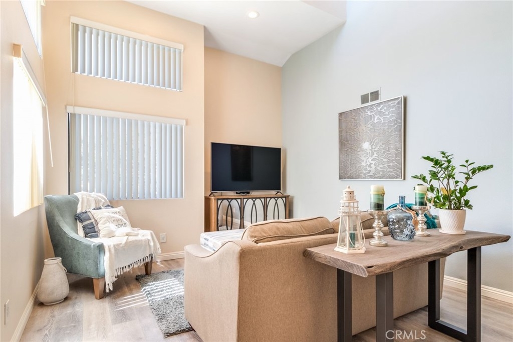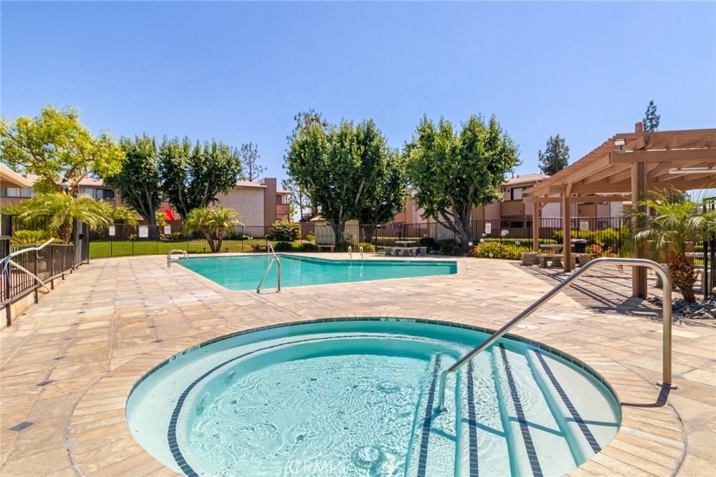 Best location of luxury condos by Palmilla! Welcome to this amazing condo that offers a spacious and private fit for academic scholars, or a family seeking a quiet and comfortable lifestyle. This condo is located 10 minutes from Downtown Riverside, rich with history, vibrant nightlife, and variety of shopping districts. This condo is perfect for academic scholars looking to attend University of California Riverside, offering a three-minute drive to campus or a 20-minute walk. This end unit offers a private staircase that leads to a large front patio, perfect for entertaining and relaxing. There is a spacious bedroom and full bathroom on the main floor. This condo features recessed lighting, laminate and tile flooring throughout, high ceiling in the living room, and upgraded kitchen with granite countertops. Upstairs, the master suite has laminate floors with ceiling fan. The community pool and spa, laundry facility are all nearby. Finally, the single detached garage is located below the condo for easy access.