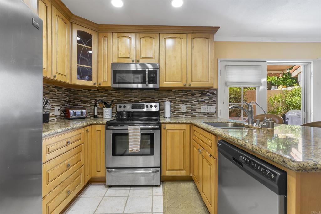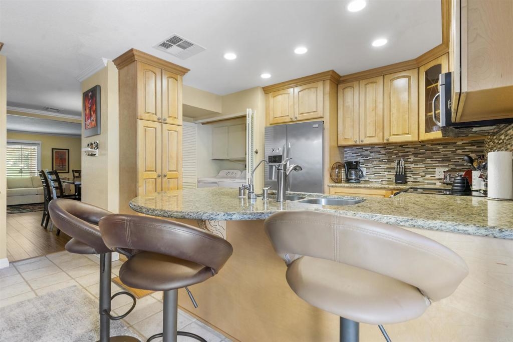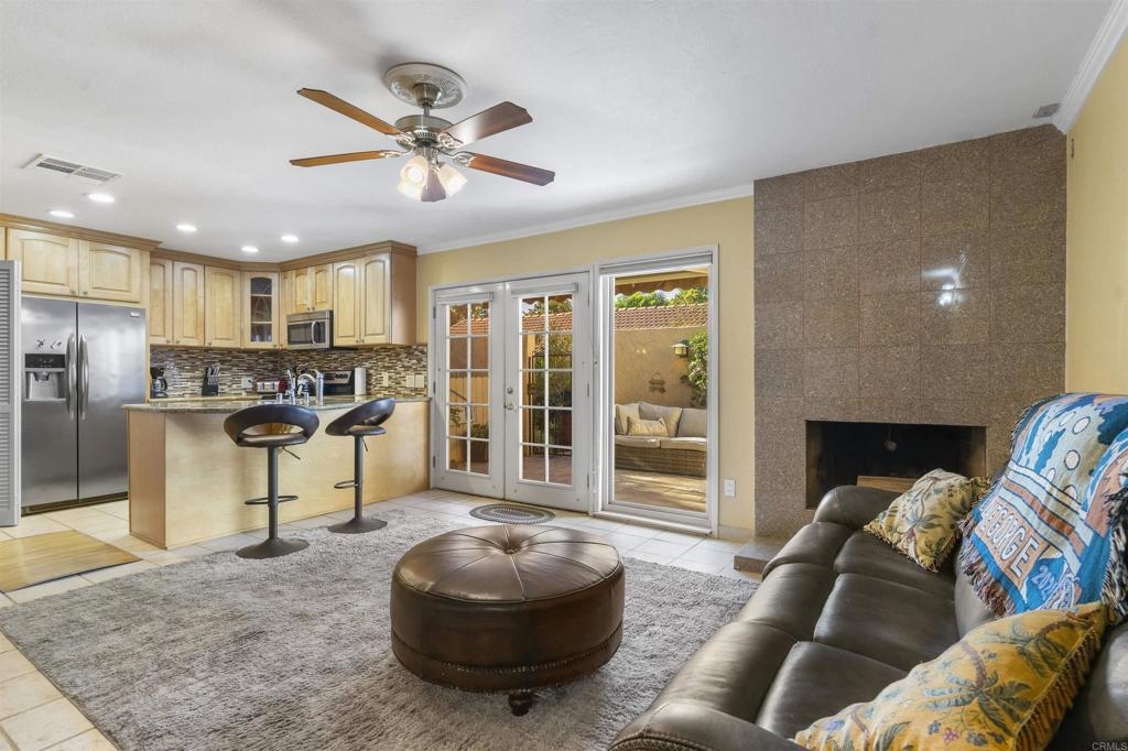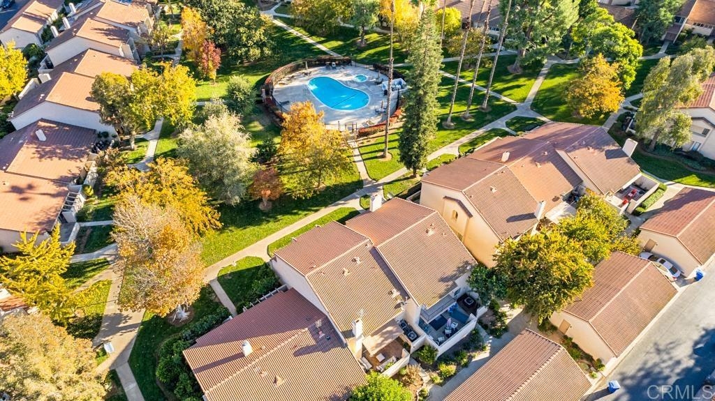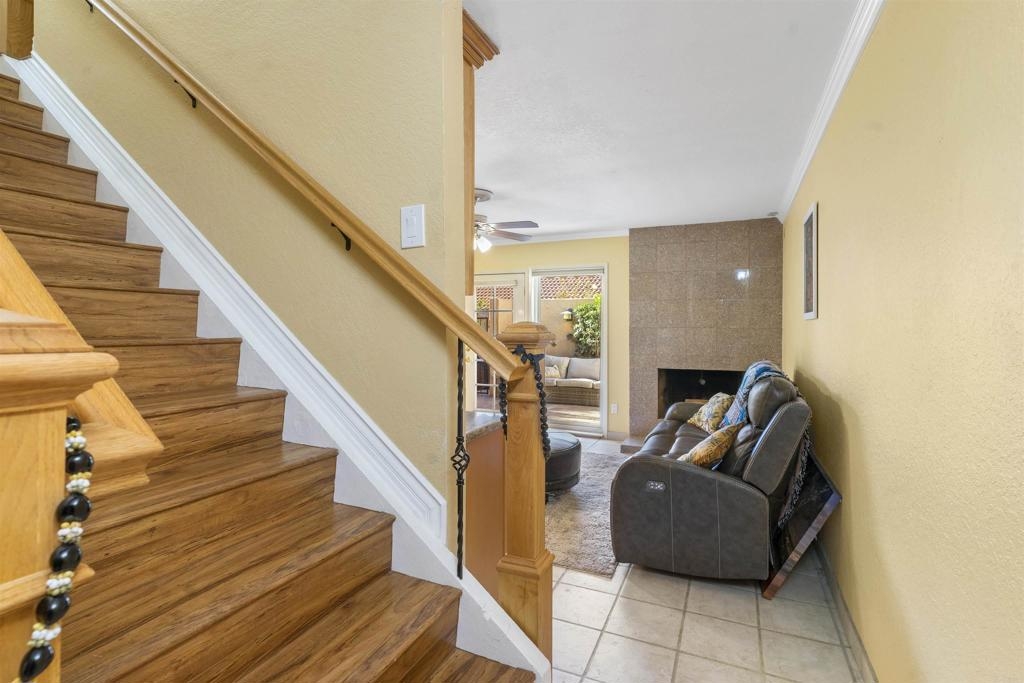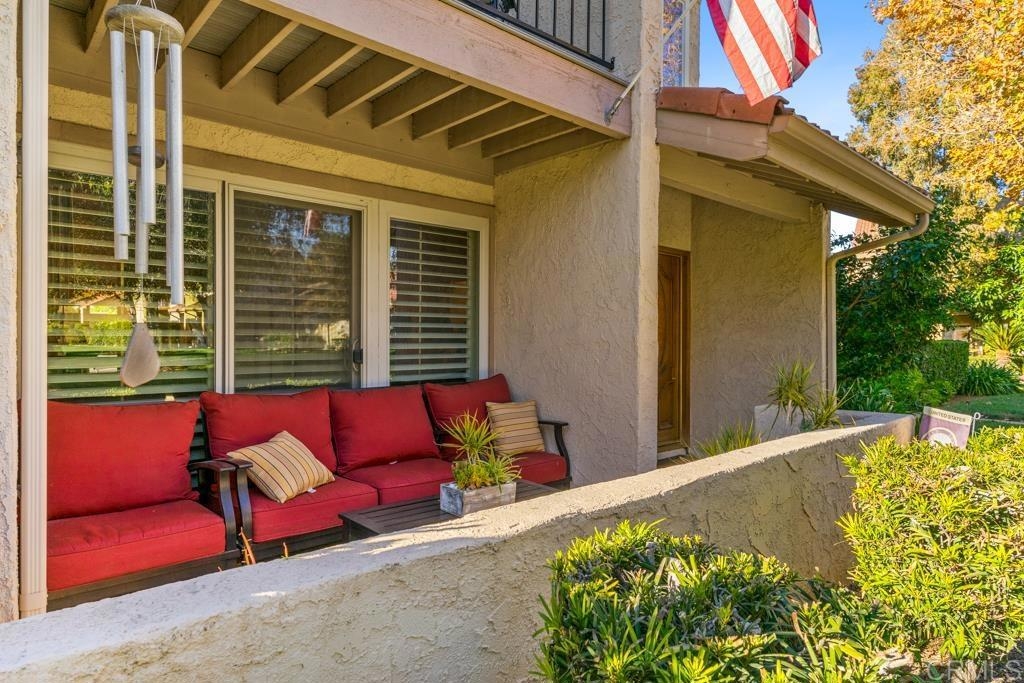 Beautifully upgraded townhome in the highly sought after Park Granada gated community. Set in an exquisitely maintained community park with 3 pools and 2 spa areas, this 2,000 square foot home has a remodeled kitchen with upgraded cabinets, granite counters and stainless steel appliances. Tiled floors throughout the kitchen and family room that features a granite covered buffet and fireplace. French doors that lead out to one of two patios with a retractable awning, and spanish pavers. The living room/dining room has a dry bar, 1/2 bath, plantation shutters, mirrored wall, custom entry door and, its own patio with a view of the greenbelt/park. Upstairs, you'll find the spacious master bedroom that features a vaulted ceiling, plantations shutters and its own balcony with view. The master bath features marble throughout with double sinks. Two more guest bedrooms with mirrored closet doors and plantation shutters, as well as a second full bath. A drop down ladder leads to huge attic space for storage. Manufactured wood flooring throughout. Detached 2 car garage. Secure gated community.