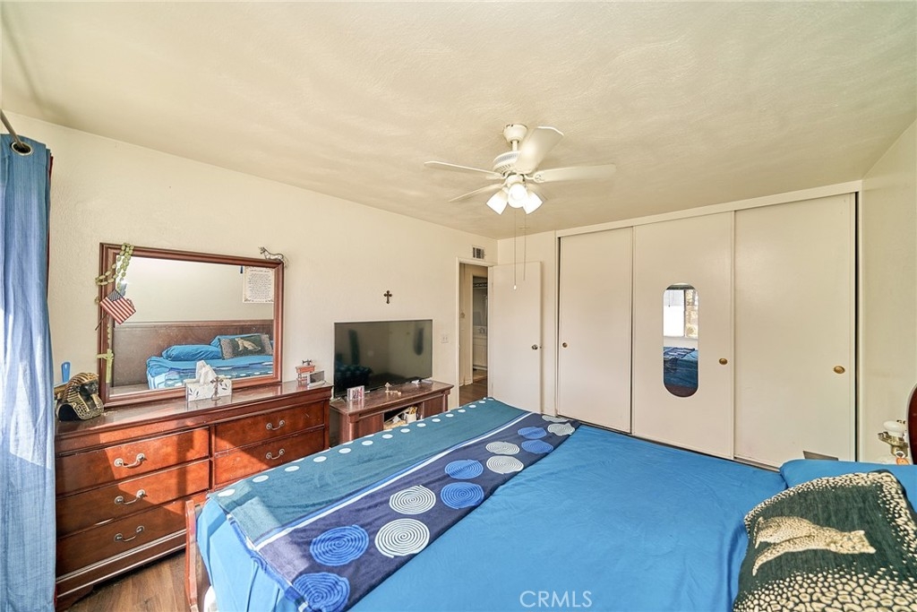Welcome to this charming and move-in-ready condo in the gated Queen Anne community. This two-story home combines character with modern convenience. Approx. 1,223 sq ft of living space features 3 bedrooms and 1.75 bathrooms. The original garage has been converted into an additional bedroom on the main level. An open living and dining area flows into the kitchen, which is equipped with white tile counters, a stainless steel sink, and a breakfast bar for casual dining. There is under-stair storage on the staircase. Upstairs features the master bedroom with a closet and ceiling fan, as well as a second full bathroom and a secondary bedroom. Central heating & cooling, and in-unit laundry (in a closet). Private gated entry, community pool, 1-carport parking, and multiple parking spaces for additional cars or Guest parking. The Backyard is fenced and private, with no neighbors directly behind the unit. located with easy access to the 60 and 91 freeways for commuting. Shopping, dining, services, and amenities are nearby. Schools in the area include Jackson Elementary, Chemawa Middle, and Ramona High School.
