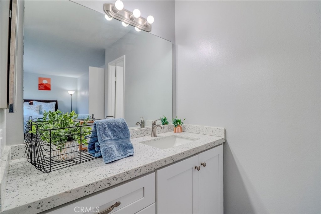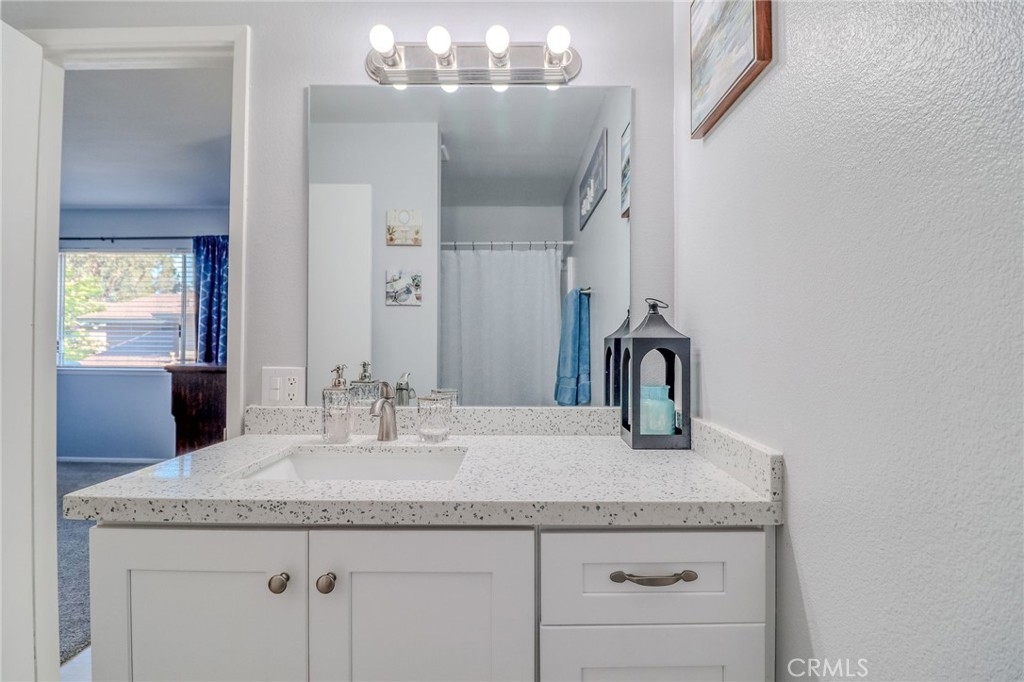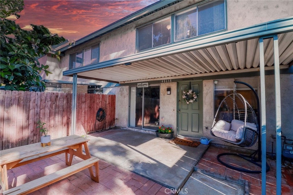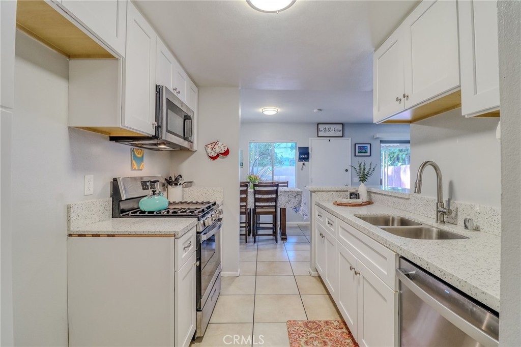 Welcome to this updated and spacious 1,226 sq. ft. home, featuring the largest floor plan in the community. The open-concept main level offers a bright living room with sliding door access, a well-designed kitchen with a cozy breakfast nook, a convenient half bath, and a private 2-car attached garage with laundry hookups. Upstairs, you’ll find three generously sized bedrooms and a full bathroom. The primary suite boasts its own vanity and sink, a walk-in closet, and an abundance of natural light. Recent upgrades include new carpet, fresh interior paint, modern kitchen cabinets and quartz countertops, updated bathroom vanities, new lighting and hardware, and a new garage door, making this home move-in ready. The spacious, covered front patio provides a perfect spot to relax or host casual gatherings. Nestled in a gated community with mature landscaping, a pool, low HOA dues, and low taxes, this home also offers convenient access to nearby shopping, schools, parks, and major freeways.