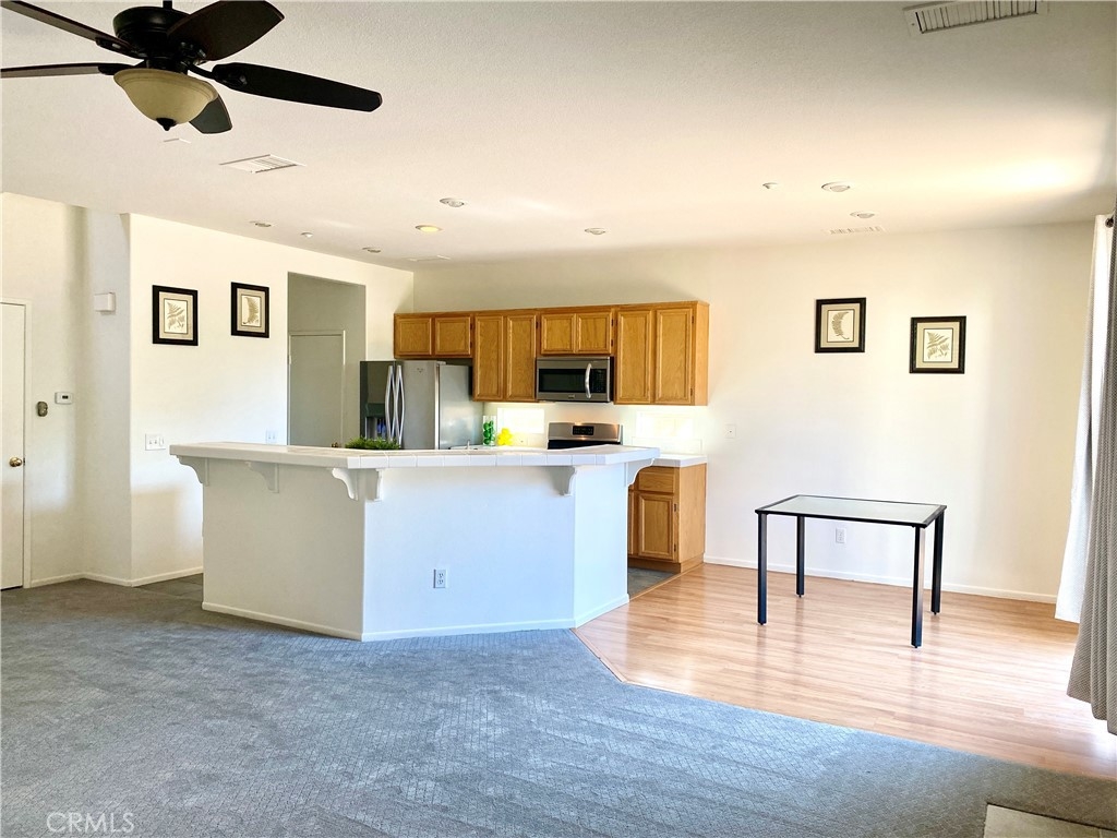 Absolutely charming remodeled home in the Riverwalk area * Sparkling clean and truly move in ready! * The living room area opens to the kitchen and eating area and is accented by a TV niche and tile faced fireplace * The open kitchen has center island that opens to the living area, with white countertops and stainless appliances, pantry and spacious counters making this a functional and attractive space for busy living * Sliders open to the rear patio area with its block wall fencing for privacy and tiled courtyard for easy maintenance * The two car garage offers direct access into the home and has finished floors, automatic opener and storage cabinetry * A spacious master bedroom offers walk in closet, modern bath with dual vanities, separate tub and shower with glass doors * three additional bedrooms also offer new carpet * Located near schools and shopping and convenient freeway access * Additional amenities include tile roof, window coverings, cul de sac location, ceiling fans, new carpet, linen closet, finished storage under the stairwell, finished garage floor, and inside laundry room * Association amenities include greenbelt areas and two pool locations