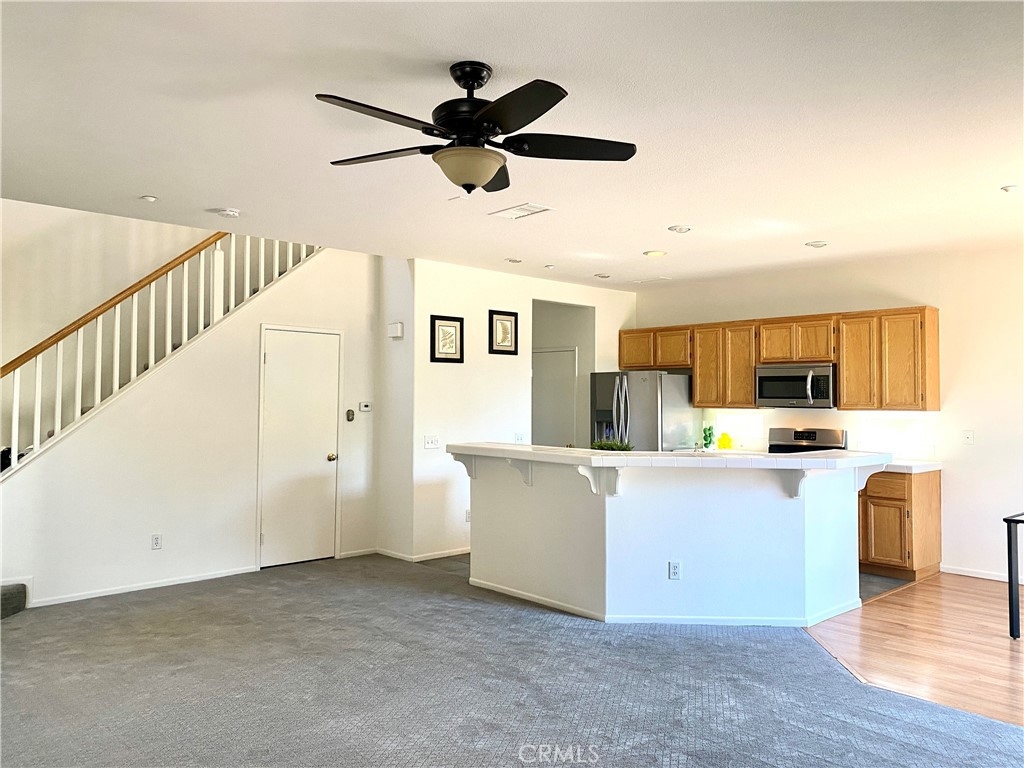 Absolutely charming remodeled home in the Riverwalk area * Sparkling clean and truly move in ready! * The living room area opens to the kitchen and eating area and is accented by a TV niche and tile faced fireplace * The open kitchen has center island that opens to the living area, with white countertops and stainless appliances, pantry and spacious counters making this a functional and attractive space for busy living * Sliders open to the rear patio area with its block wall fencing for privacy and tiled courtyard for easy maintenance * The two car garage offers direct access into the home and has finished floors, automatic opener and storage cabinetry * A spacious master bedroom offers walk in closet, modern bath with dual vanities, separate tub and shower with glass doors * three additional bedrooms also offer new carpet * Located near schools and shopping and convenient freeway access * Additional amenities include tile roof, window coverings, cul de sac location, ceiling fans, new carpet, linen closet, finished storage under the stairwell, finished garage floor, and inside laundry room * Association amenities include greenbelt areas and two pool locations